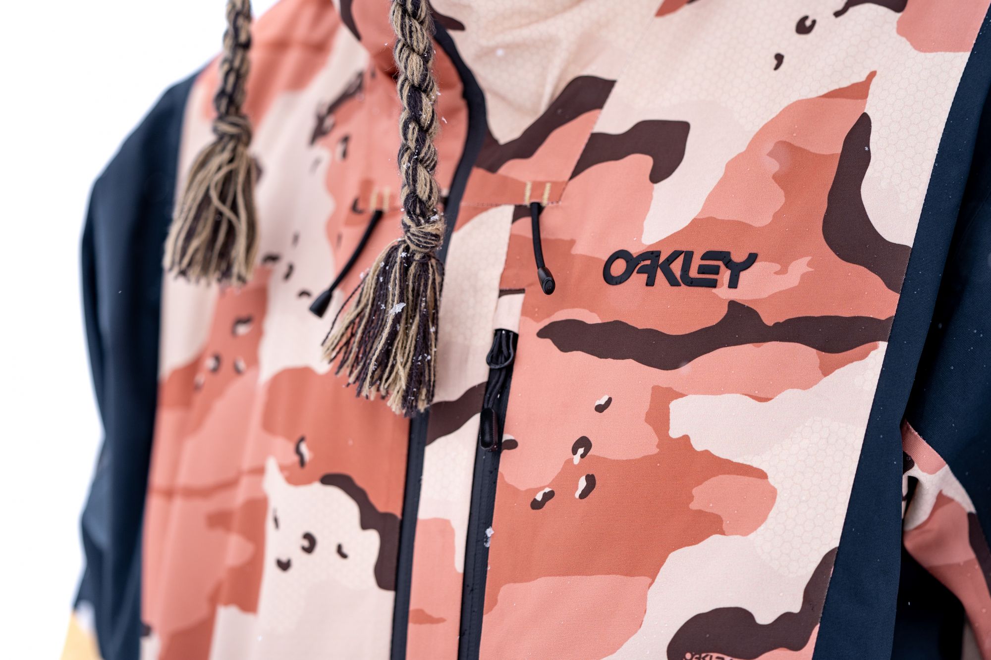Stale Sandbech è uno snowboarder con un argento ai giochi di Sochi del 2014, e la sua collezione è proprio uno degli esempi di dialogo della versatilità dei capi Snow di Oakley, così come anche quelli della medaglia d'oro (sempre a Sochi) Sage Kotsenburg, in cui c'è un occhio allo stile nonostante il grande lavoro tecnico dietro alle giacche e ai guanti. Nella linea di Øystein Braten è un'altra medaglia d'oro, stavolta a Pyeongchang (nel 2018), e i colori accesi che ha sempre indossato sono riflessi nei capi dal taglio largo, quali giacche e pantaloni, colorati camouflage o con grafiche ispirate alla montagna. Ai massimi livelli c'è anche Jamie Anderson, la snowboarder più vincitrice della storia, e sono sue le giacche con la stampa leopardata, le tute integrali e in generale il timbro glamour di tutta la sua linea.