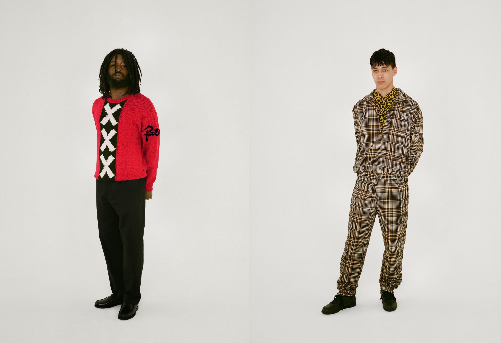 La linea di Patta segue lo spirito di indipendenza e di originalità del brand di Amsterdam. Appunto, la maglia di Zidane è un momento di sfida alle ostilità, alle avversità sociali che definivano la cultura di quel periodo, e in generale, sulla collezione tutte le stampe sono particolari e con dei riferimenti a momenti iconici. La maglia di Zidane, in questo caso, è molto simile alle dimensioni di quel modello mostrato dal campione francese ai tempi della Juventus, con lo stesso font. Gli altri capi hanno dei contrasti cromatici forti e, come detto, alcuni elementi iconici caratteristici delle realtà a cui Patta ha voluto far riferimento - come le tre XXX, simbolo di Amsterdam.