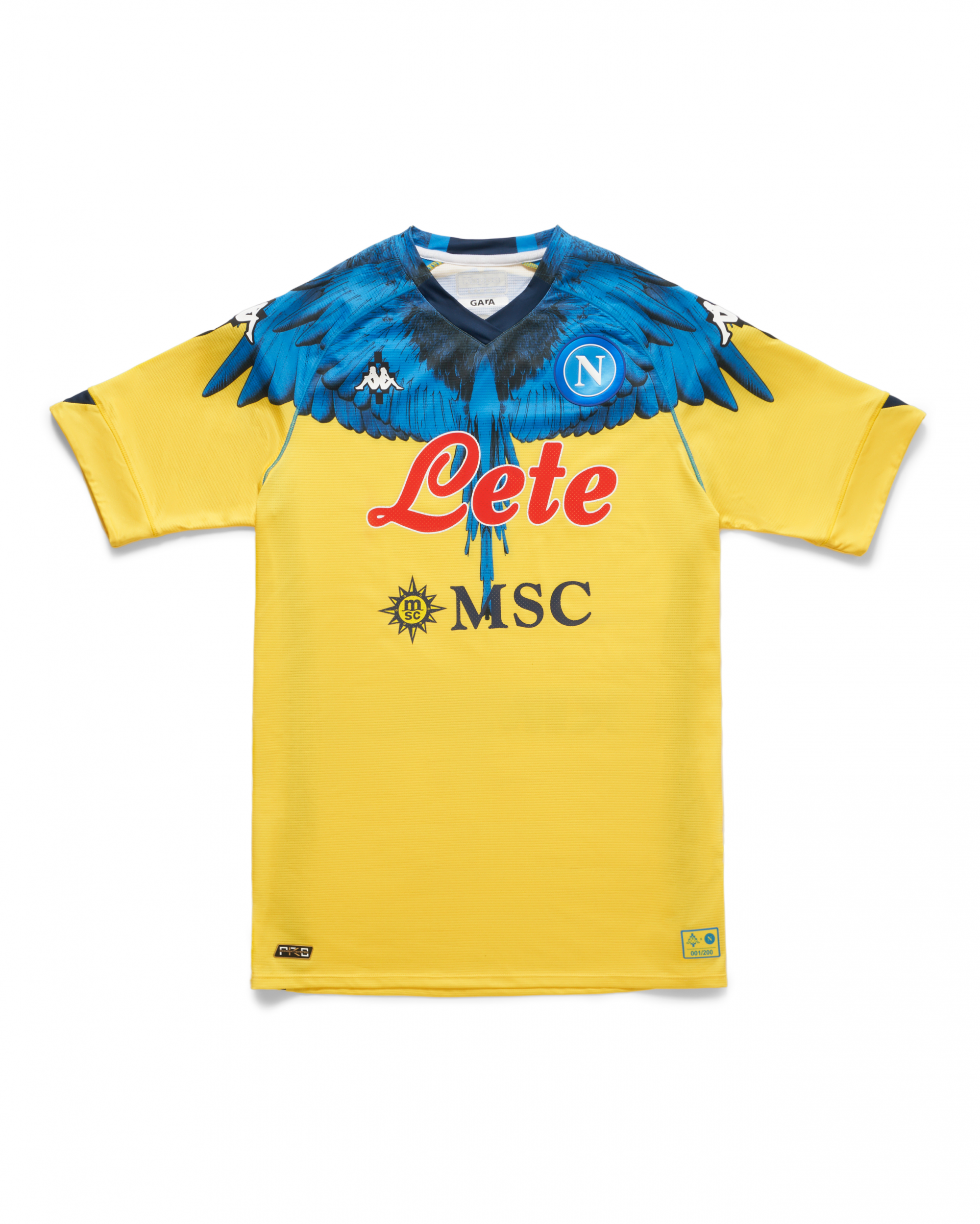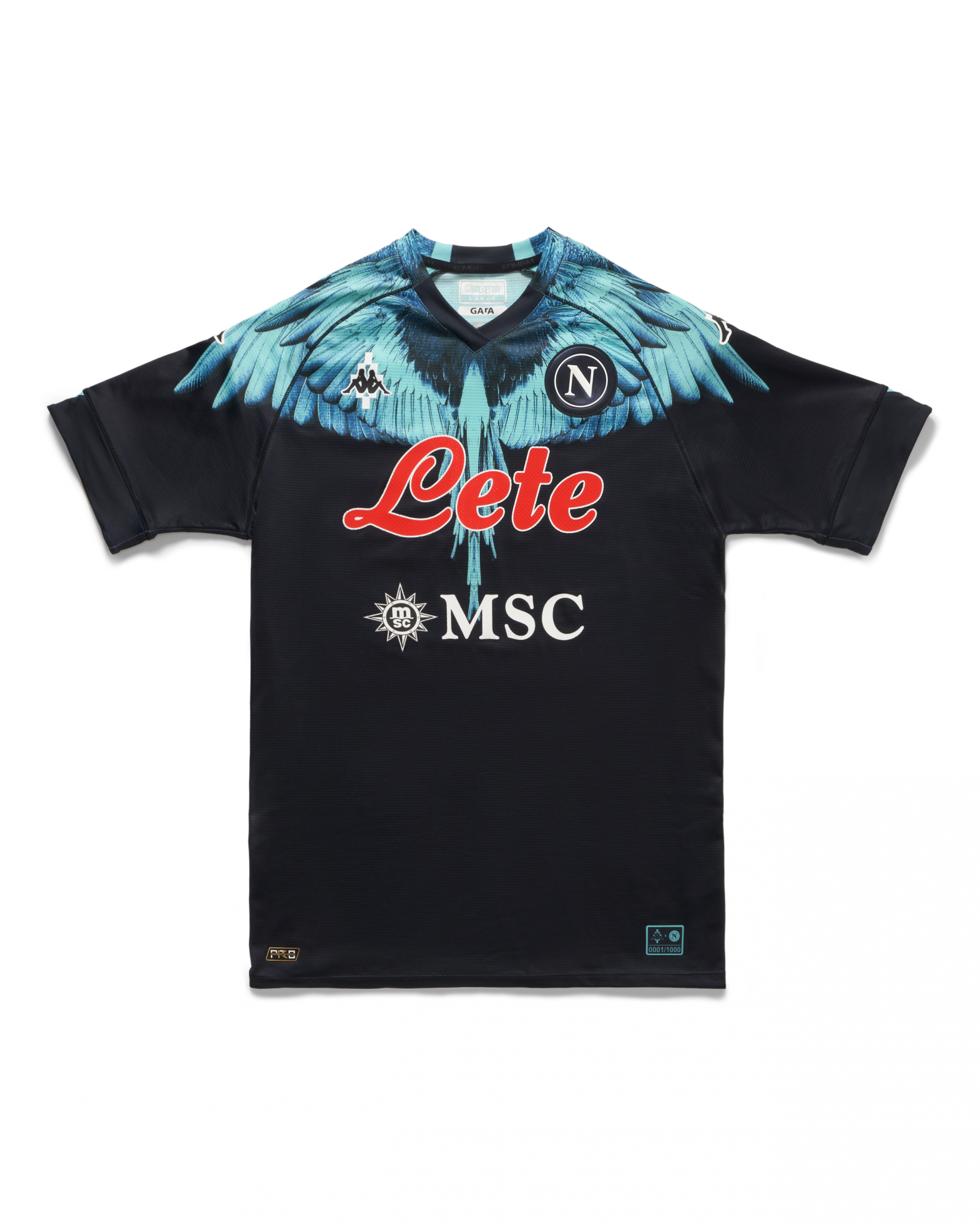 Il punto di connessione con il Napoli è proprio il simbolo di un uccello con le ali spiegate, da sempre uno dei punti di forza delle collezioni di Burlon. Diventato un po' l'icona della sua idea di design, passerà dalle felpe e dalle t-shirt in vendita in più di 500 boutique nel mondo alla maglia del Napoli, in quella che è stata ribattezzata come Kombat Pro Marcelo Burlon Napoli.