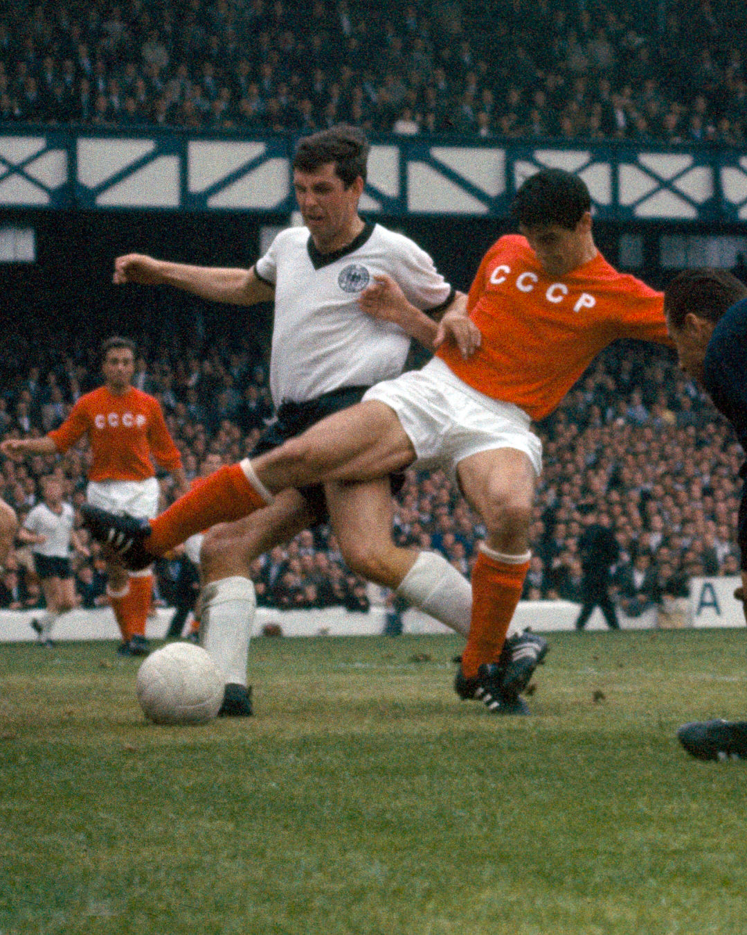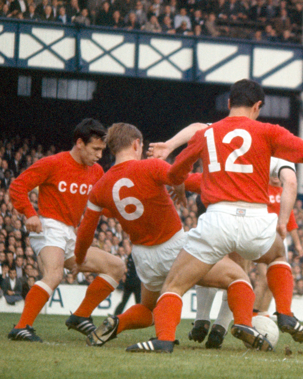 A volte tutto ciò che serve a rendere una divisa monocroma un gioiello estetico è il materiale, a volte è invece uno stemma o un dettaglio grafico. La maglia indossata dall'Unione Sovietica durante la coppa del mondo inglese del 1966 è un esempio di entrambi questi elementi. Prodotta da Umbro - che provvedette a tutte i kit delle nazionali partecipanti al mondiale - la maglia era in cotone pesante, un tessuto che sapeva sposarsi alla perfezione con i tagli solidi e i colli arrotondati proposti dal brand inglese; come d'altronde dimostrato anche dall'intramontabile fascino delle divise dei Tre Leoni. A fare la differenza era, senza dubbio, la scritta oversized CCCP (acronimo di Unione delle Repubbliche Socialiste Sovietiche) cucita sul petto, anziché relegata a uno stemma. La divisa - come nella sua successiva incarnazione adidas del 1977 con girocollo bianco e tre strisce sulle maniche ed in quelle del 1988 e del 1990 - ha saputo essere sunto esemplare della sobrietà futuristica del costruttivismo sovietico. Il kit, per altro, sembra capace di anticipare di decenni i capi in knitwear con loghi sul petto disegnati da Bella Freud.