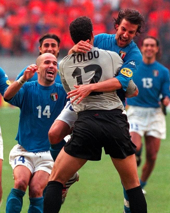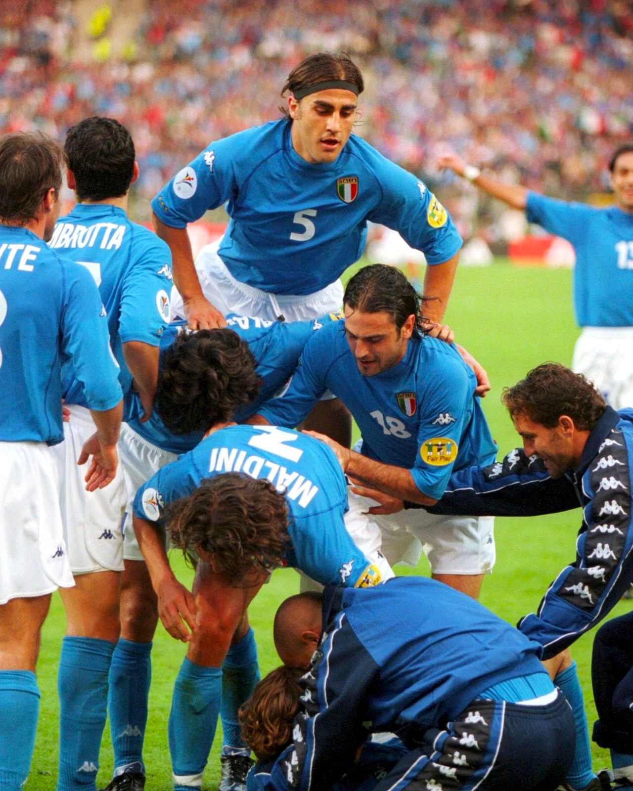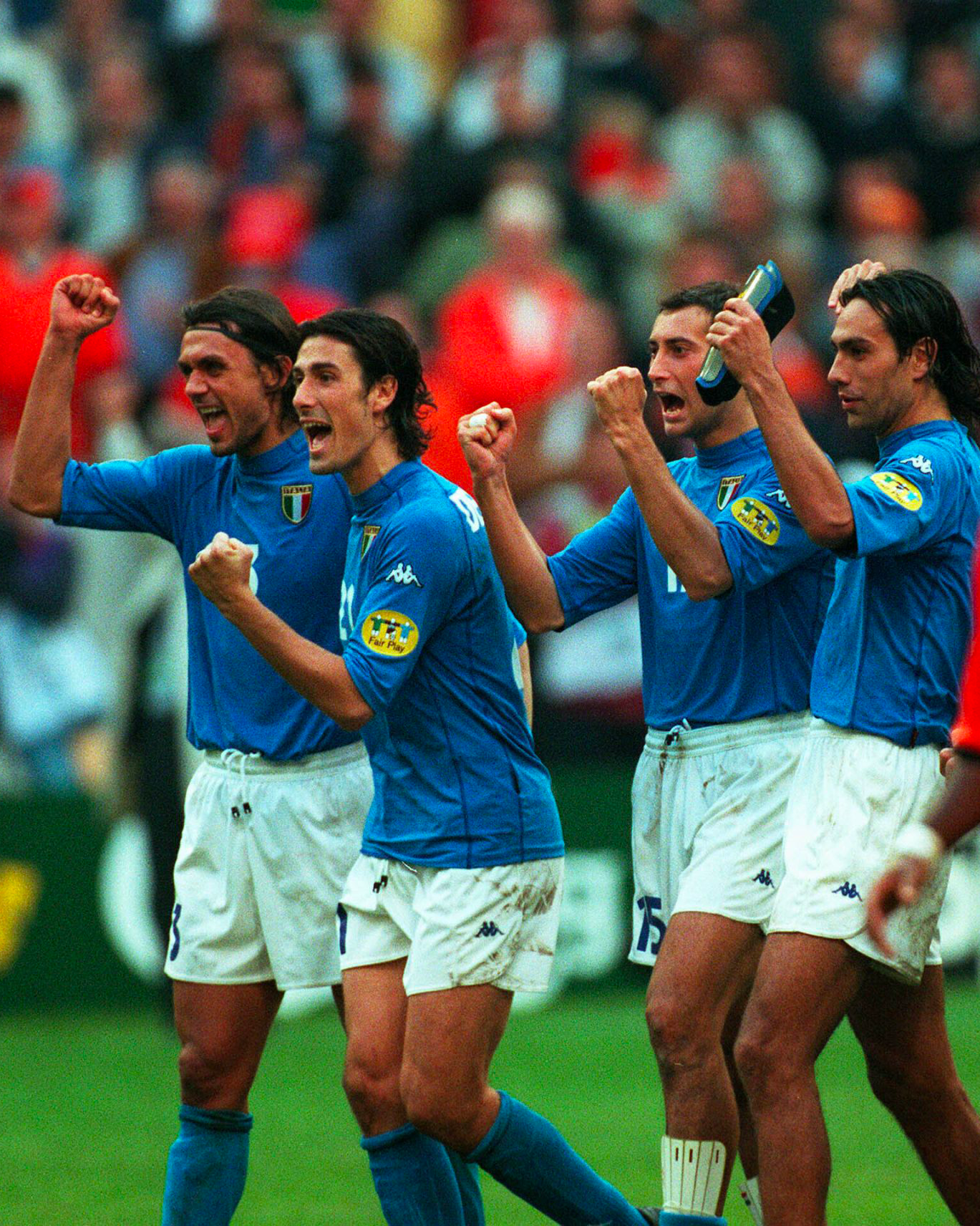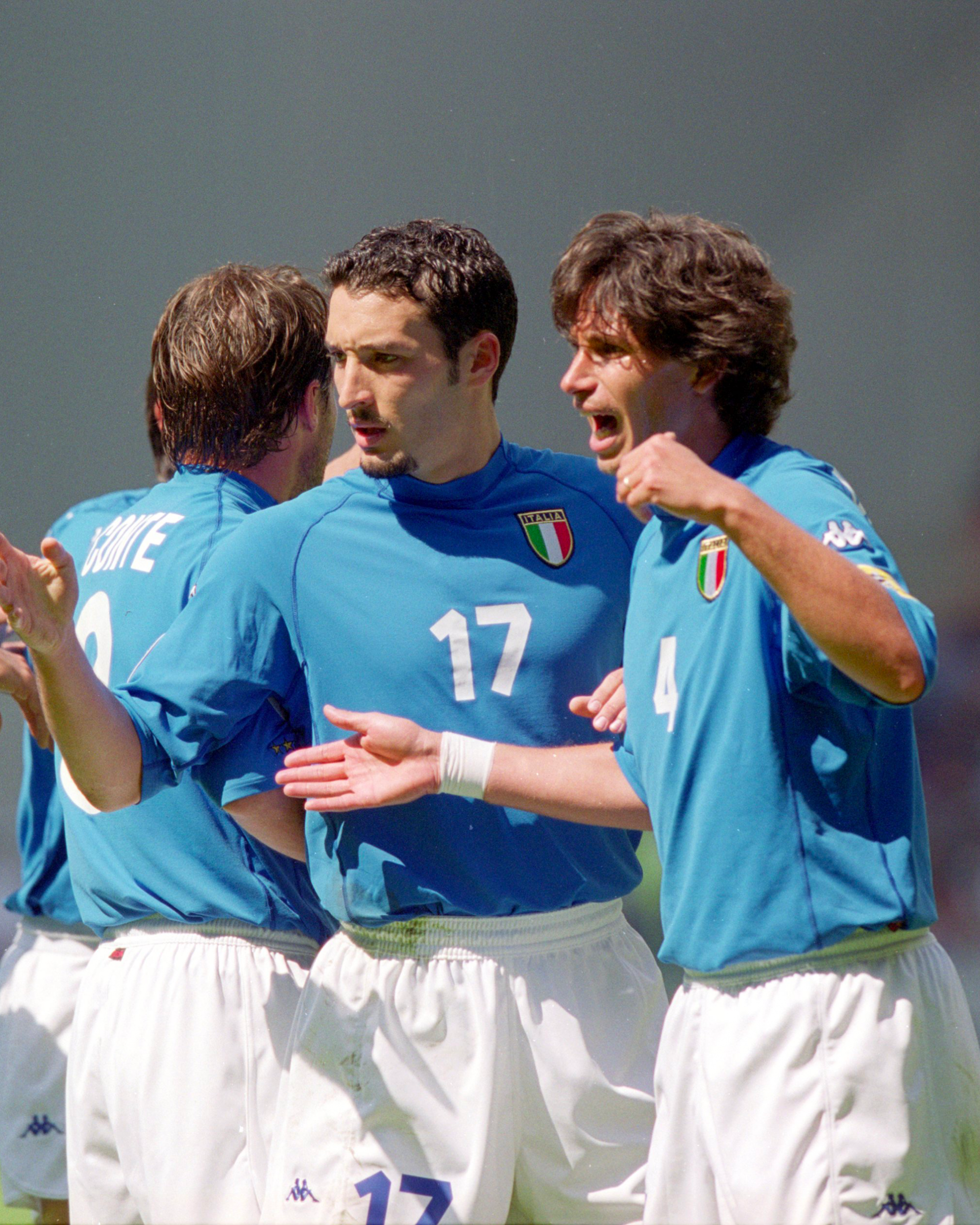 Nonostante i pattern monocromi siano spesso associati al calcio retro, Kappa è stato il brand che maggiormente ha saputo attualizzare design dal gusto classico adattandoli alla necessità di evoluzione tecnologica. Il rivoluzionario modello Kombat lanciato all'alba del nuovo millennio fondeva la proiezione della cultura pop e della moda del periodo per il "Y2K" e l'estetica Cyber ad un design completamente innovativo preso in prestito dall'abbigliamento da surf. A rendere il kit ancora più speciale ai tempi fu indubbiamente la rottura con almeno due decenni di divise caratterizzate da un'esplosione di pattern geometrici e palette multicolori. In un percorso di ricerca sui materiali nonché sulle silhouette aderenti intrapreso dal brand torinese già nel 1984 con la sponsorizzazione del team di atletica statunitense ai giochi olimpici di Los Angeles, Kappa stupisce tutti - incluso Ian Todd, il direttore marketing del colosso americano Nike - ai mondiali del 2000 vestendo l'Italia con la bellissima divisa Kombat. I giocatori in Kappa diventano quasi dei cyborg del mondo nuovo, fondendosi con le loro divise in cui la scelta del monocromo non fa altro che aumentare la fluidità del kit a contatto con i muscoli. Vittoria sfiorata e un kit che dopo anni torna a essere fedele sia nei colori che nel taglio a quello con cui l'Italia sollevò il trofeo di Euro '68. A vent'anni di distanza dal debutto della Kombat, non stupisce se brand come MISBHV e Marine Serre ripropongano fit simili nelle loro collezioni.
