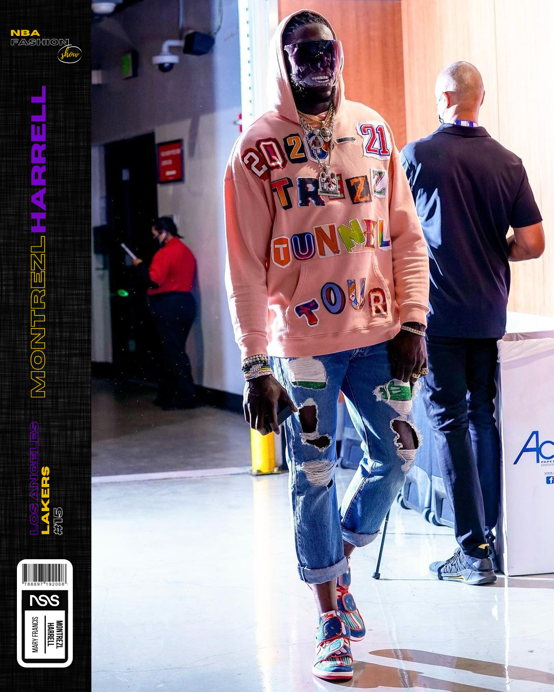 Harrell è il più estroso del team di Mary Francis e le sue scelte stilistiche sono spesso out-of-the-box, come molte delle sue giocate in campo. Quello che colpisce di Trezz è l'energia che riesce a diffondere, soprattutto quando può mostrare al mondo la sua creatività estetica e i messaggi che veicola attraverso i suoi outfit: