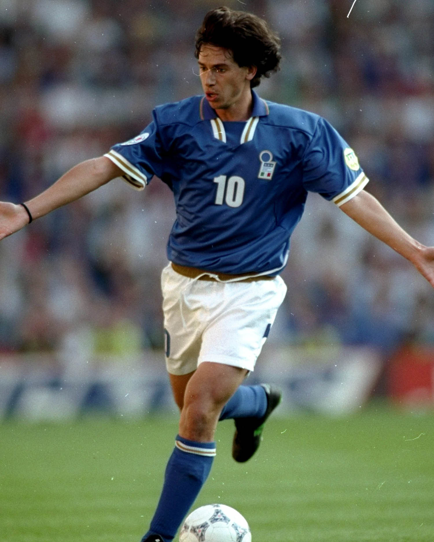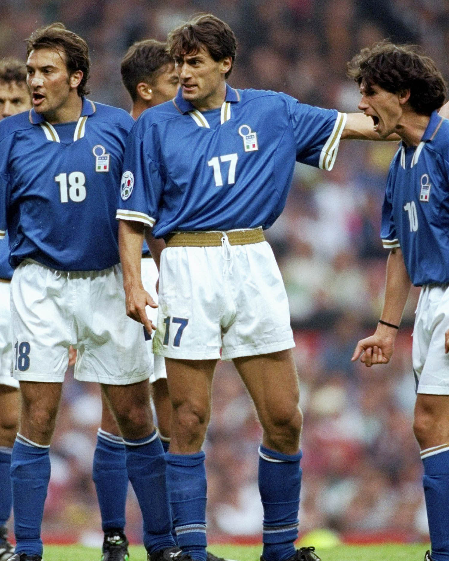 La maglia azzurra ha sempre avuto un fascino incredibile e una delle migliori versioni appartiene proprio ad un campionato europeo. La versione 1996 indossata da Maldini, Del Piero, Casiraghi e Albertini tra i tanti è stata realizzata da Nike, sponsor della nazionale italiana dal 1995 al 1998. Sarà la prima maglia realizzata dal brand americano, anche se sul kit non apparirà lo Swoosh. I dettagli in oro e forse il logo più bella della FIGC rendono unica e inimitabile una maglia d'altri tempi.
