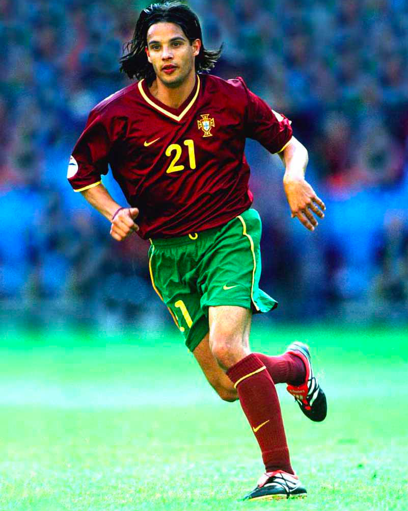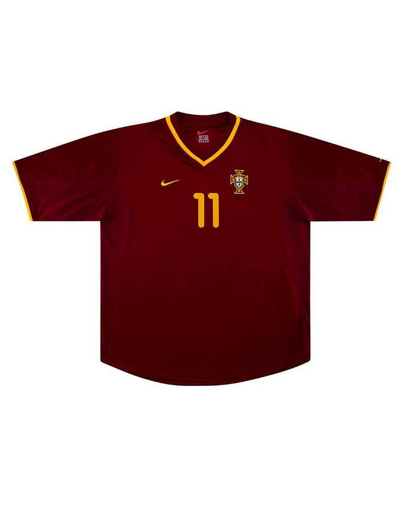 In Portogallo c'è un'era pre-CR7 e post-CR7, anche esteticamente. Prima di finire sulle spalle del centravanti della Juventus, il #7 apparteneva per stile, eleganza e qualità a Luis Figo, l'uomo che nel 2000 ha indossato quella che per tanti è la maglia migliore della storia della nazionale portoghese. L'amaranto perfettamente ripreso dal logo, i dettagli in giallo e i pantaloncini verdi creano un kit dalla bellezza stordente che accompagnerà quella squadra fino alle semifinali, persa 2-1 contro la Francia.