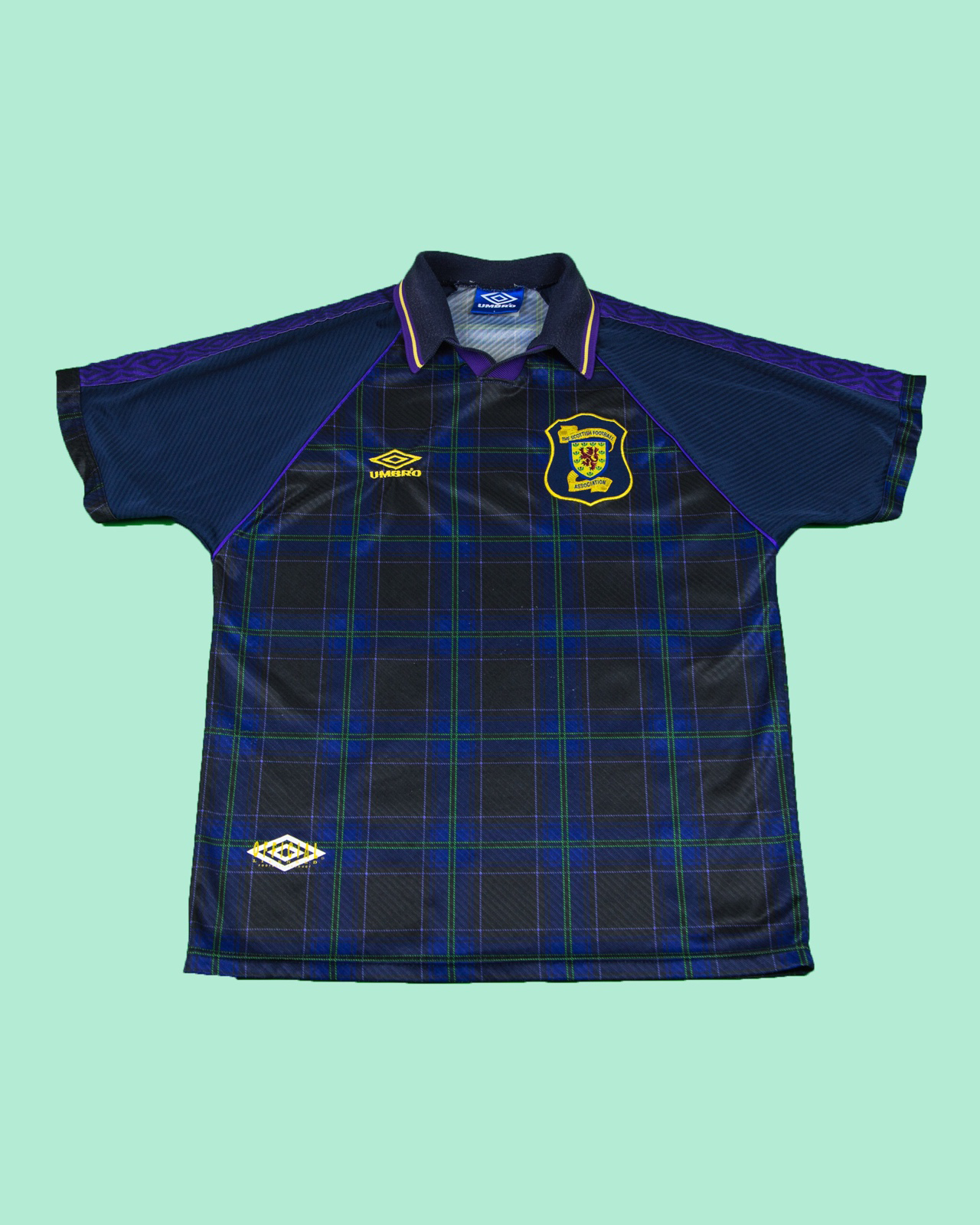 Dulcis in fundo, la Scozia e la sua tradizione. Targata Umbro ad EURO96, la nazionale scozzese porta in campo uno degli elementi stilistici simbolo della nazione: il tartan. Tra kit e kilt balla una sola lettera di differenza, ma per la maglia della Scozia sembra non esserci nulla di diverso. I pantaloncini sono diventati un must e ogni scozzese che è riuscito a mettere le mani su questo kit lo difende come se fosse il Sacro Graal. Una perfetta interpretazione di come si porta la cultura di un popolo su un campo da calcio.