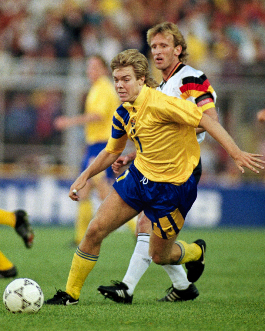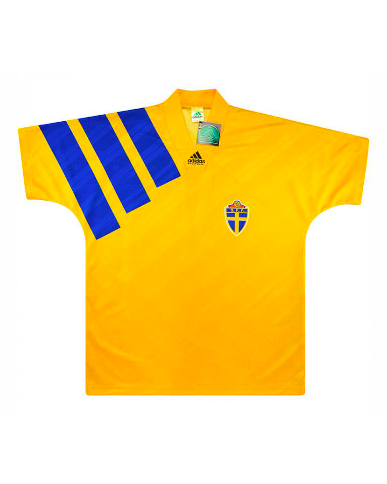 Tra le big viste finora c'è spazio anche per una nazionale come la Svezia. adidas sarà sponsor della squadra elvetica dal 1974 al 2003 per poi riprendere dieci anni più tardi dopo la parentesi Umbro. Ad EURO92 il marchio tedesco sceglierà di prestare alla nazionale di Tommy Svensson un template che esordirà sulla maglia del Bayern Monaco e che sarà ripreso su maglie iconiche della Premier League (come il Liverpool 1991-93). Il giallo e il blu della Svezia creeranno un effetto che diventerà memorabile per la nazionale che ospiterà l'edizione 1992 e che arriverà fino alle semifinali.