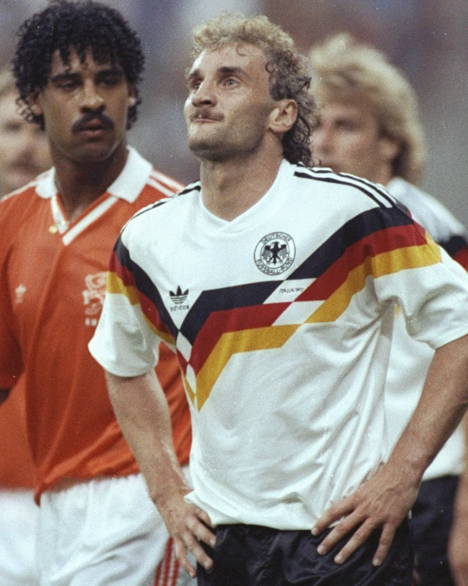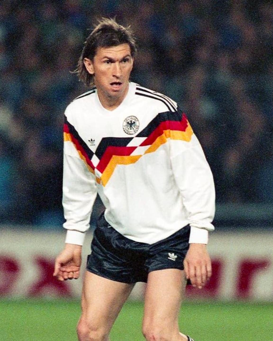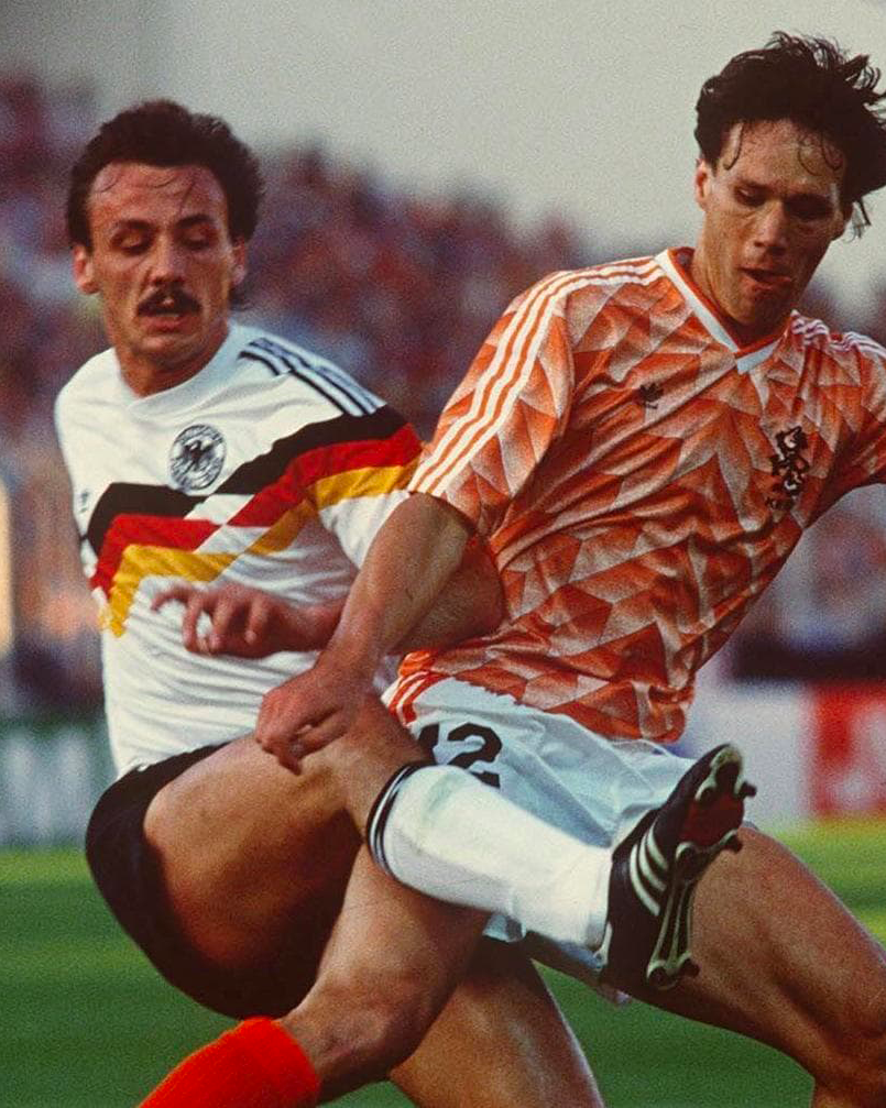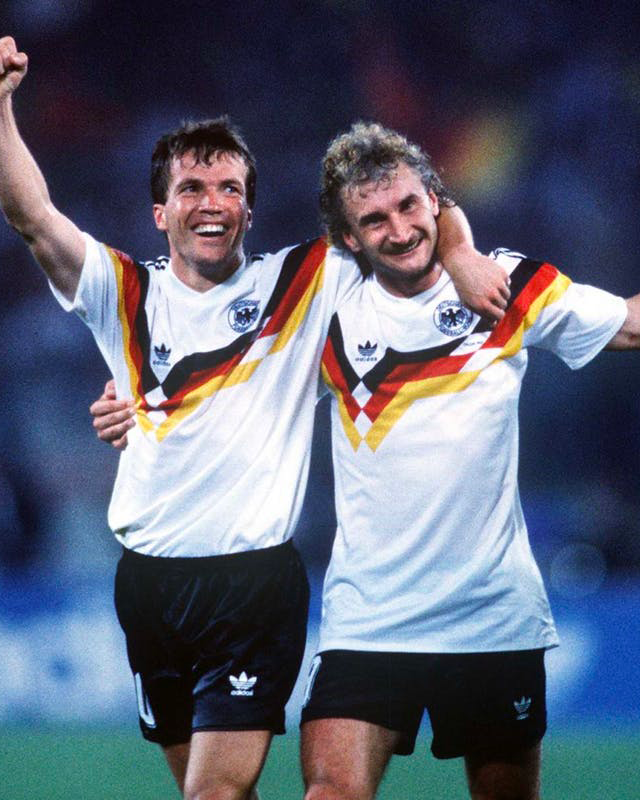 Due edizioni prima di quella che ha cambiato la storia estetica dell'europeo, la Germania dell'Ovest scende in campo con il design più iconico sia per adidas che per la nazionale all'epoca di Beckenbauer in versione CT. Sarà l'esordio assoluto della bandiera tedesca declinata con le forme geometriche tipiche dei loghi della competizione dal 1960 fino al 1992. Sarà un europeo vincente per la Germania di Brehme, Matthaus, Voeller e Klinsmann che manterrà lo stesso pattern fino al 1991.