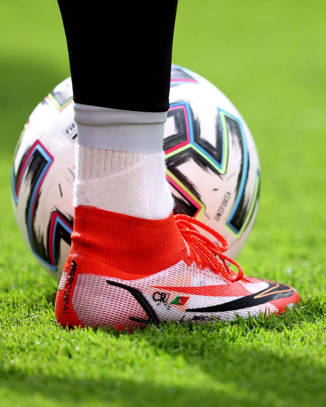 Da Nike a PUMA, passando per adidas fino a Pantofola d’Oro, Under Armour e New Balance, ecco tutti i brand e i loro pack presenti a EURO2020 che con i loro modelli stanno infiammando il primo europeo itinerante. Anche se come sempre non mancano le eccezioni, uno su tutti Wijnaldum che indossa delle adidas completamente nere, un prototipo probabilmente non ancora presente sul mercato. O giocatori come Toni Kroos e Robert Lewandoski che non rinunciano ai loro storici modelli non indossando nulla di nuovo. Poi c’è chi come Cristiano Ronaldo indossa le Nike Mercurial Spark Positivity un modello creato e pensato ad hoc per lui, dal design complesso e accattivante, la cui colorazione ufficiale è "Chile Red/Black/White/Total Orange. Il nuovo modello segue la 'Spark Brilliance' Mercurial che l’atleta portoghese ha indossato per EURO2016.