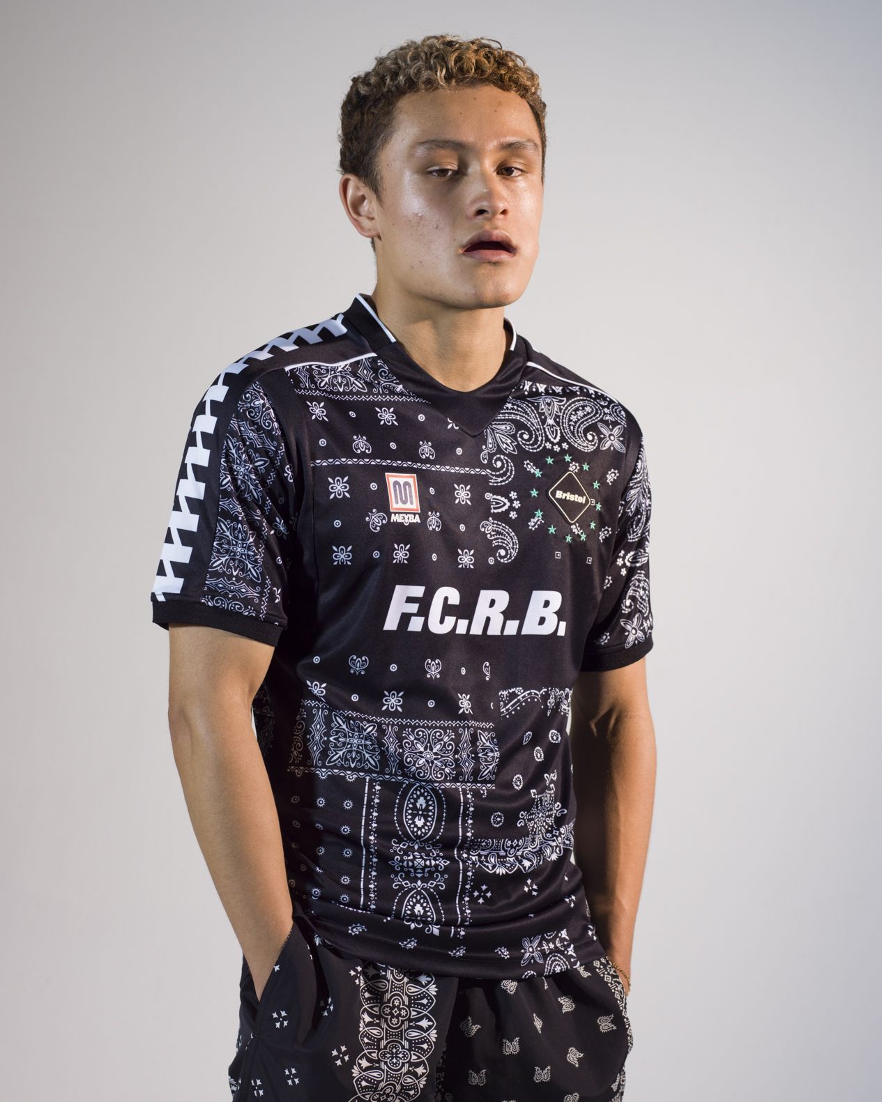 Meyba e Real Bristol FC, l'ideale squadra di calcio fondata dal collettivo giapponese SOPH, hanno unito le forze per creare una nuova collezione. La linea prevede maglie, pantaloncini e una maglia da gioco sulle tonalità del nero e del verde tiffany. L'ispirazione principale è il pattern Paisley delle bandane, nonché fonte di ispirazione per la suprema terza maglia della scorsa stagione del Manchester City disegnata da PUMA. La creatività di Neal Heard mixata allo stile di SOPH genera una ventata di aria fresca, con gli item che saranno disponibili da venerdì 9 luglio.
