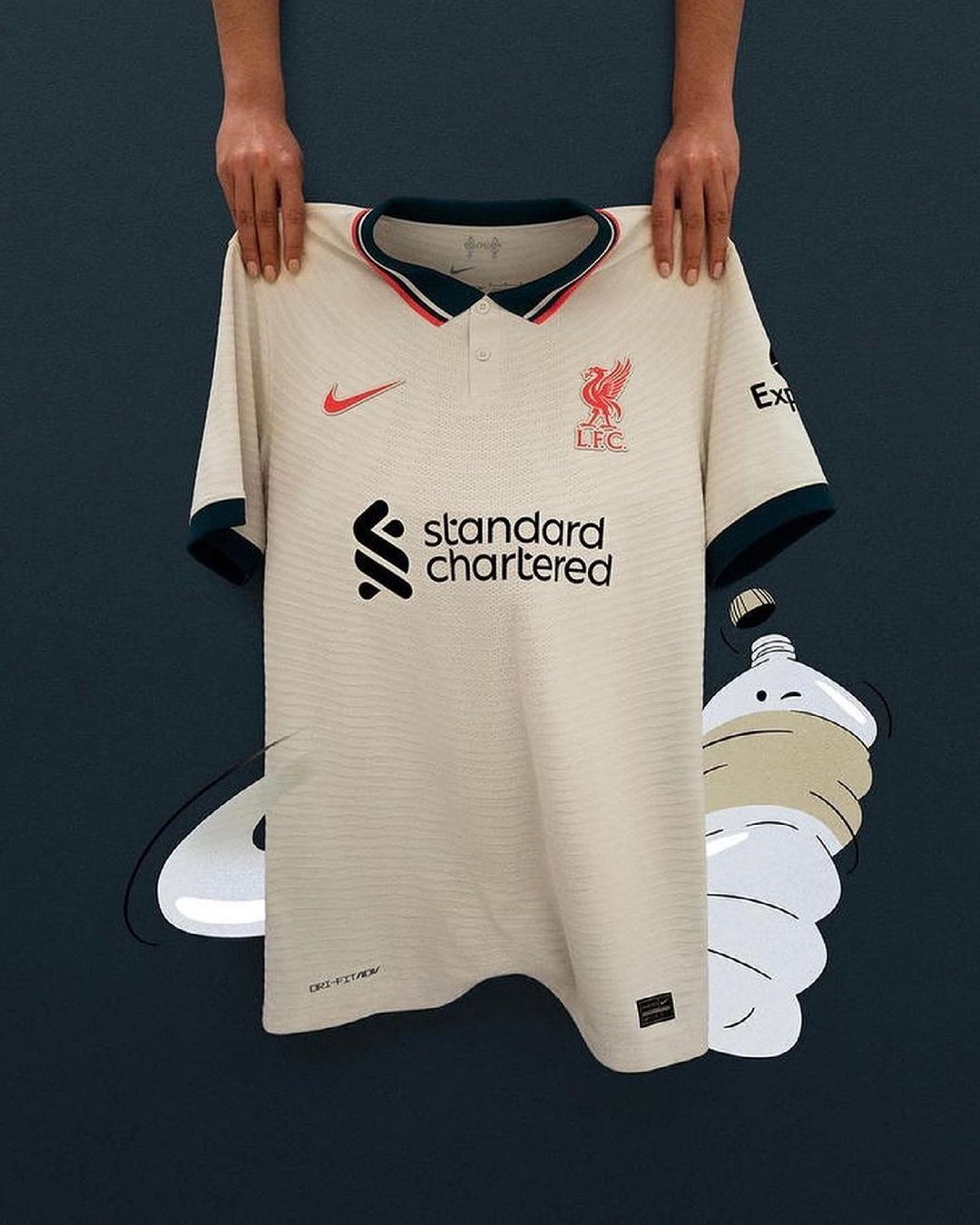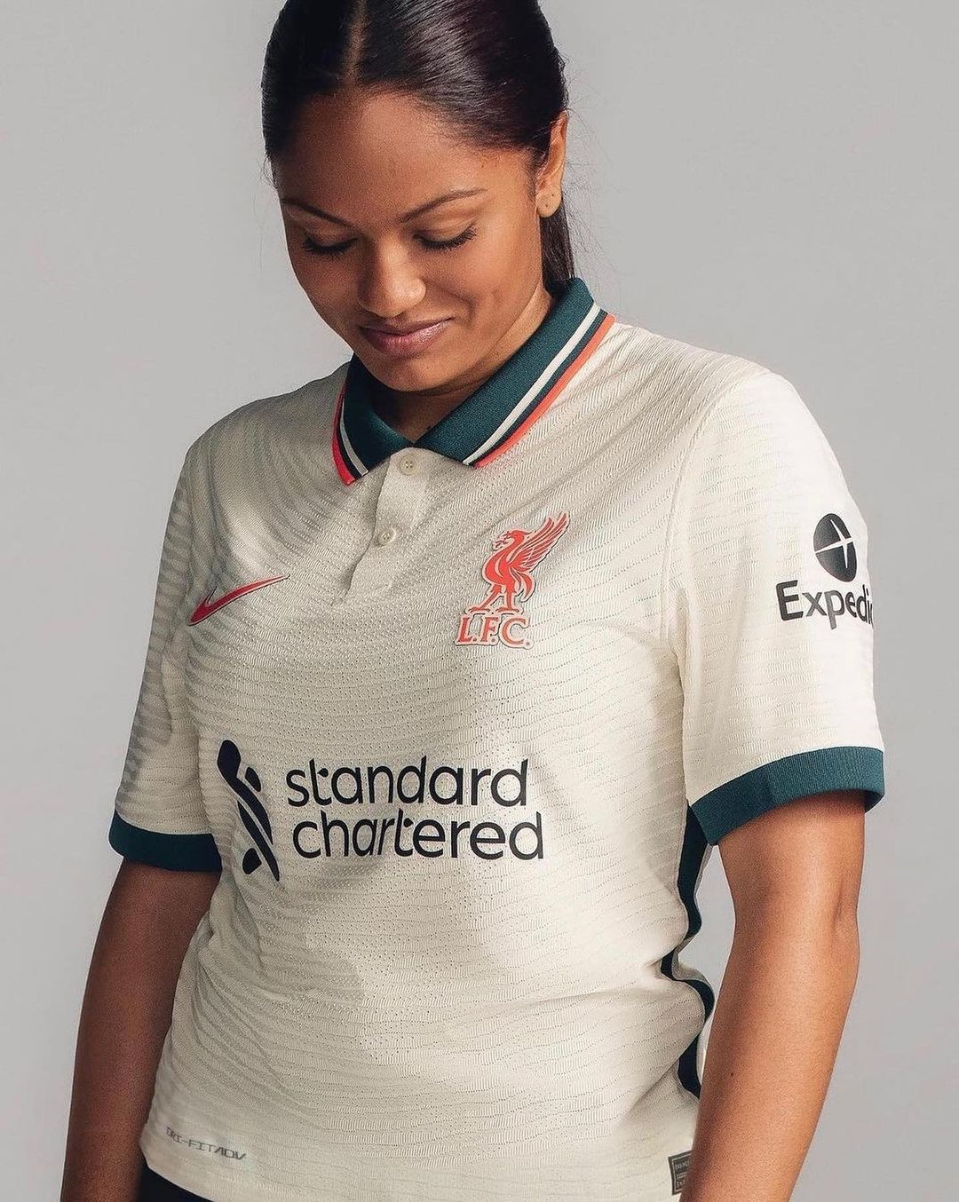 Liverpool e Nike hanno ufficialmente presentato il nuovo kit away per la prossima stagione. Un vero e proprio ritorno al passato, le palette di colori e il design scelti sono ispirati alla stagione 1996-97. Il bianco pietra si fonde con un verde acqua intenso, presente sul colletto, donando alla maglia un look elegante e pulito. Una maglia realizzata in 100% poliestere riciclato che incarna la ricca storia di Liverpool e infatti ad essa è dedicata. Il colore bianco pietra infatti è anche simbolo delle Tre Grazie, un complesso di edifici che compongono l'iconico skyline della città.