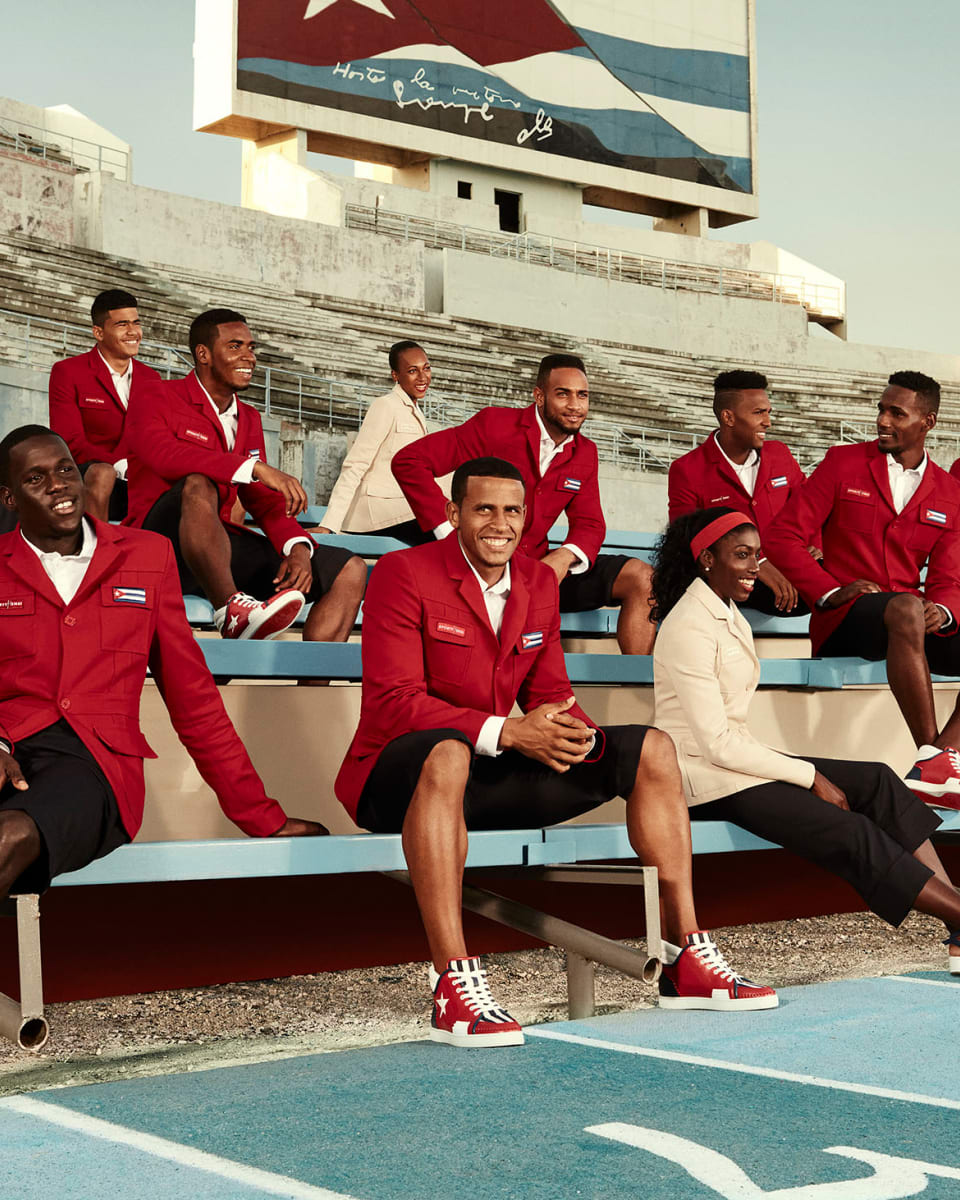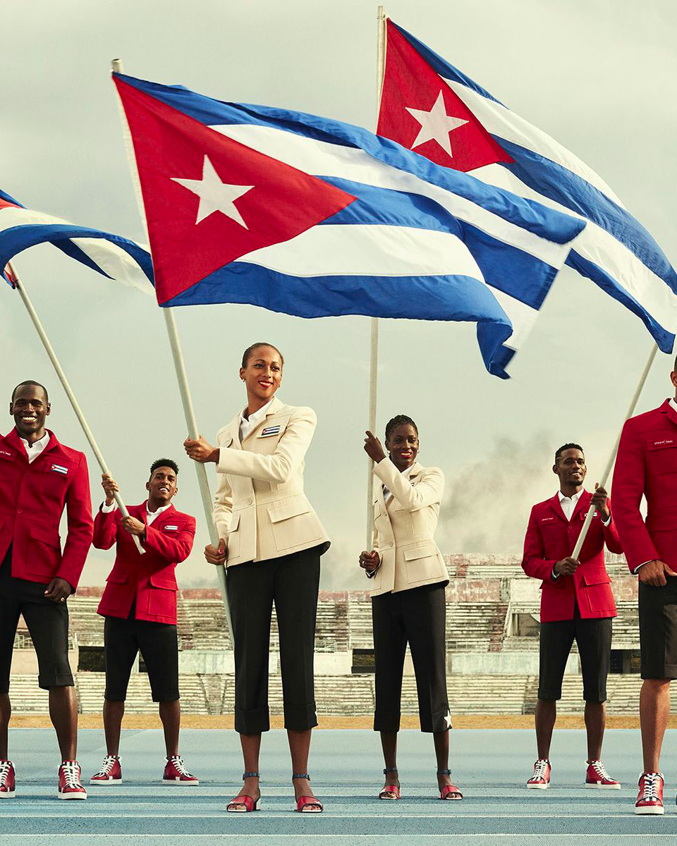 Tra i brand che hanno partecipato alla cerimonia inaugurale, un po' a sorpresa, c'è Christian Louboutin che nel 2016 ha collaborato con Henri Tai di Sporty Henri per disegnare le divise del Team Cuba. Una collaborazione che ha ridefinito l'estetica cubana, sempre molto legata alle contaminazioni pop ma che nel 2016 ha scelto di sfilare con giacche in crema e rosso con la bandiera su una delle quattro tasche. Un cambiamento stilistico che ha spiazzato tutti per eleganza e fascino, raramente due elementi che sono stati associati all'estetica cubana.