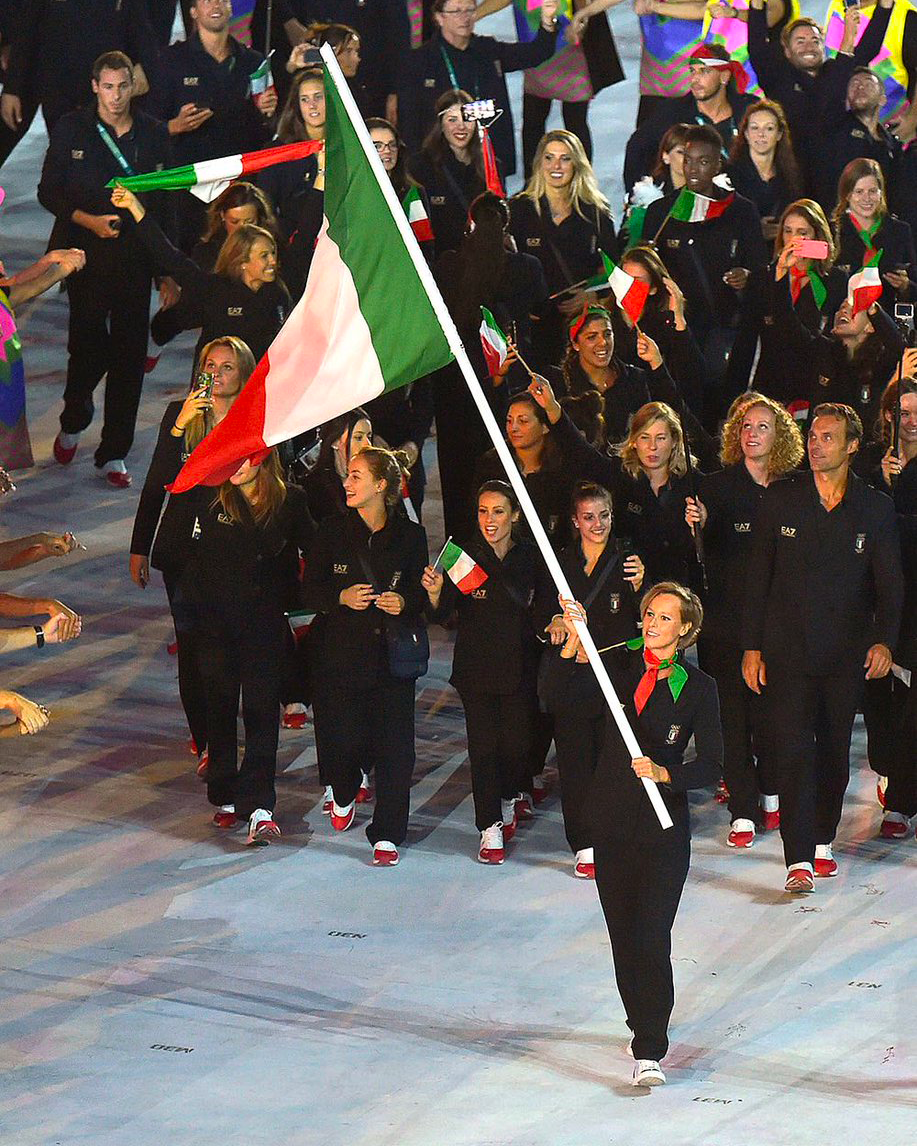 Da più di quindici anni, lo stile italiano alle Olimpiadi porta la firma di EA7 - la divisione sportiva del brand di Giorgio Armani. Il tema di designer che si focalizzano sui Giochi hanno sempre puntato sull'eleganza e sul simbolismo, sul blu scuro e sui toni che richiamano il tricolore. Da Federica Pellegrini a Valentina Vezzali, fino ad arrivare ad Antonio Rossi: tutti con la solita eleganza Made in Italy, con qualche nota eccentrica - basti pensare alle scarpe bianche e rosse che indossavano gli olimpionici azzurri.