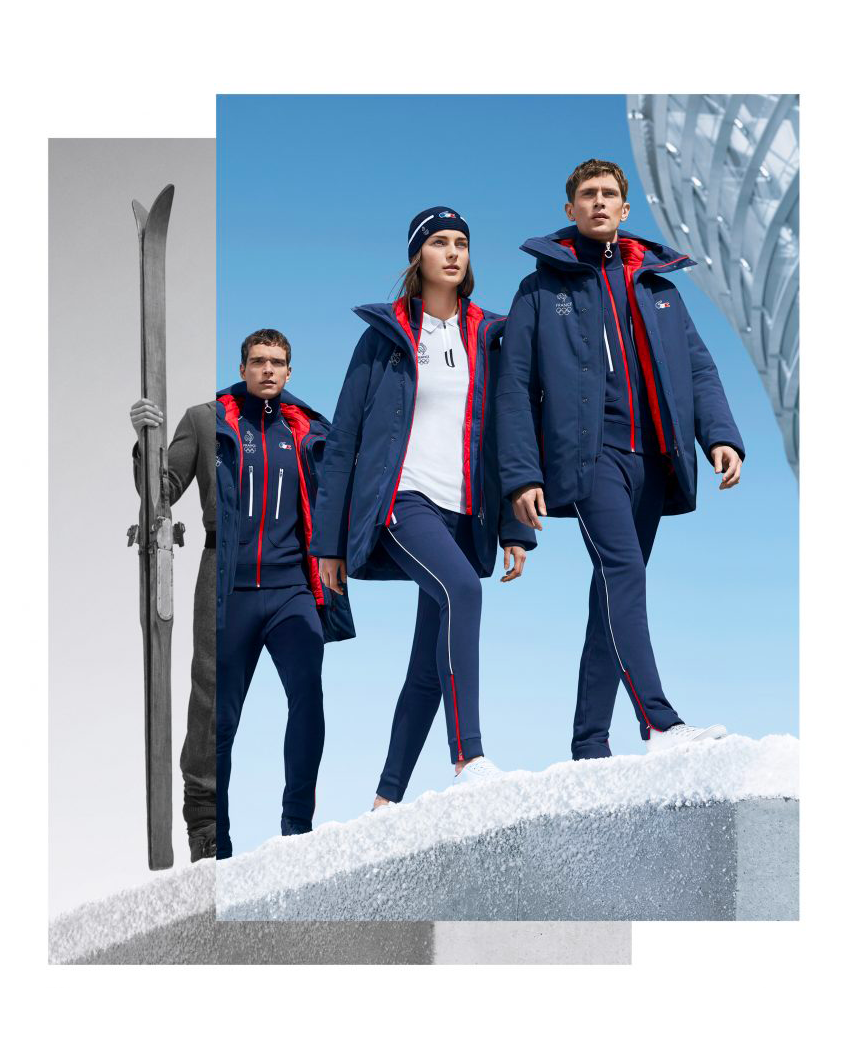 La Francia è stata un altro magnifico esempio di alternanza tra minimalismo e stravaganza estetica. Nelle ultime quattro edizioni - considerando anche le versioni invernali dei Giochi Olimpici - Team France è riuscita a sfilare sia con una linea essenziale, pulita ed elegante e sia con un'eclettica declinazione tricolore del coccodrillo Lacoste. Alle giacche e al tessuto realizzato per gli olimpionici francesi di Rio de Janeiro si contrappongono piumini con zip laterale e beanie che richiamano i colori della bandiera transalpina.