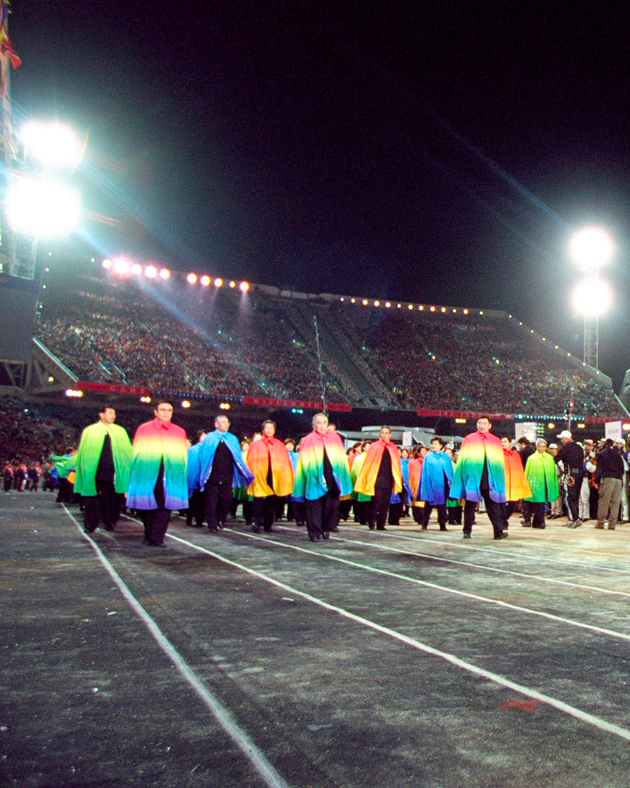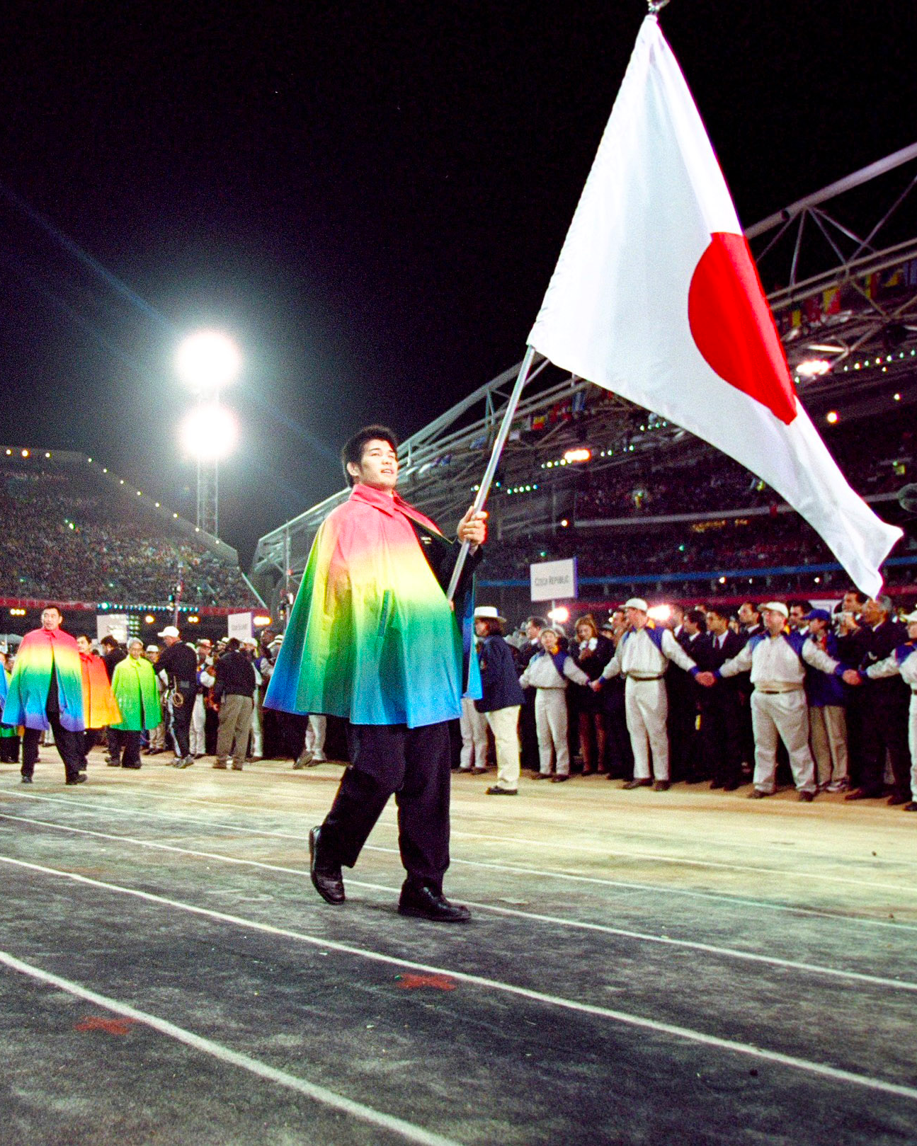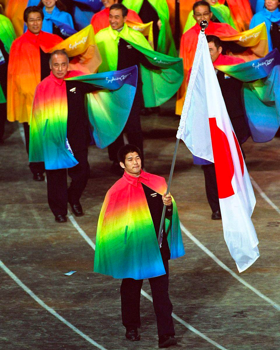 Anche se non parliamo di un brand specifico, la spedizione giapponese a Sydney 2000 è stata una delle più incredibili - non tanto per le medaglie (saranno solo 18 alla fine dei Giochi) quanto per lo stile. Con venti anni di anticipo, il trend dell'arcobaleno che oggi ha assunto una connotazione di lotta per i diritti delle comunità LGBTQI+ è sui mantelli degli atleti del Giappone, capeggiati dal portabandiera e leggenda del sumo Kōsei Inoue. Al di là del brand che ha prodotto questi incredibili e coloratissimi item, sembrano aver anticipato di qualche decennio la battaglia che gran parte degli atleti presenti a Tokyo 2020 hanno intrapreso.