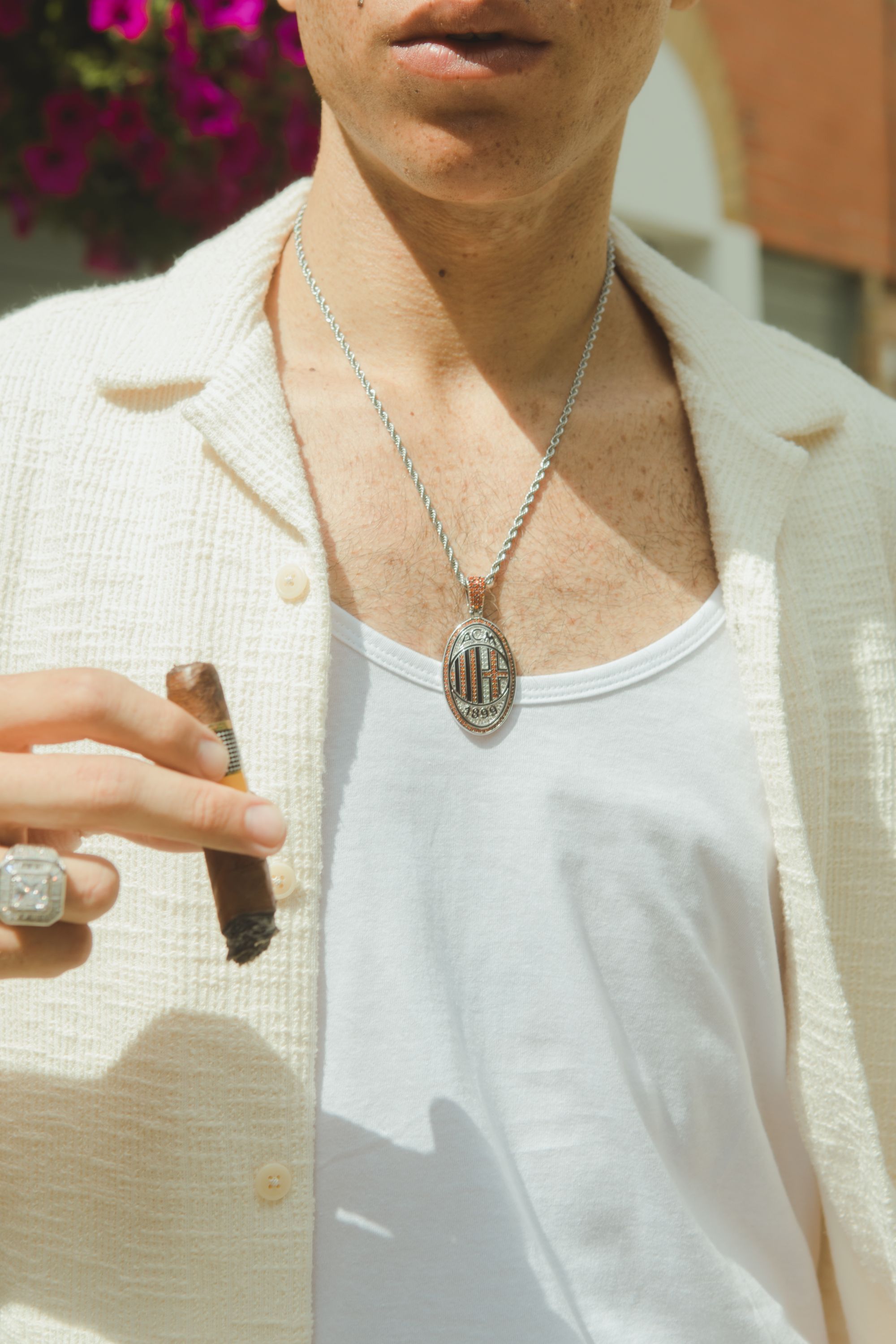 Si tratta dei primi pendenti dedicati a delle squadre italiane da quando il brand è stato fondato nel 2017 da Fred Buckley. I due pendenti sono stati realizzati meticolosamente con una miscela di pietre chiare incastonate a mano per rappresentare al meglio due loghi importanti e iconici come quelli dei bianconeri e dei rossoneri. Una collaborazione fortemente voluta da Buckley, proprietario del brand, che ha una grande passione per il calcio, una delle sue principali fonti d'ispirazione insieme alla musica.