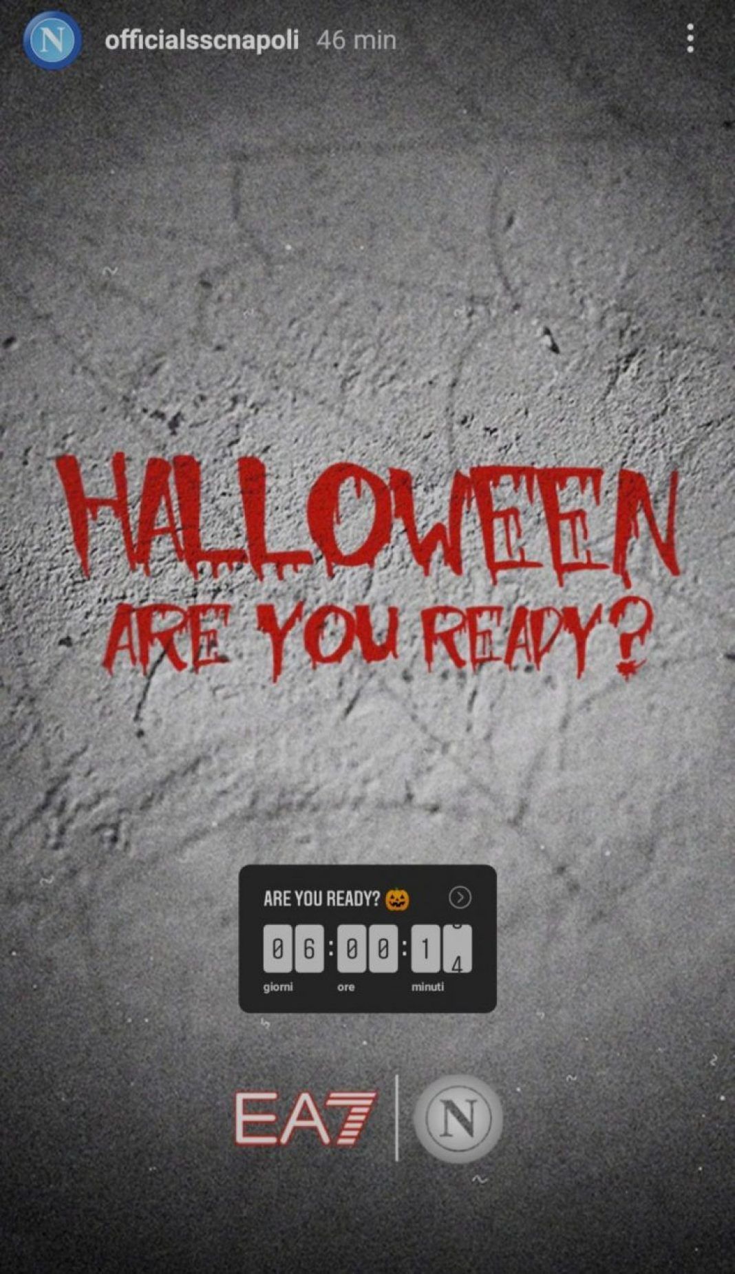 Ieri sul suo profilo Instagram il Napoli ha pubblicato un indizio tramite le storie riguardo l’uscita di una possibile nuova maglia per Halloween. La grafica riporta il logo del club insieme a quello di EA7 con un countdown che scadrà tra cinque giorni con la dicitura “Are you ready?”. La maglia dovrebbe fare il suo esordio in occasione del derby contro la Salernitana mentre verrà annunciata questa domenica, secondo il countdown condiviso.