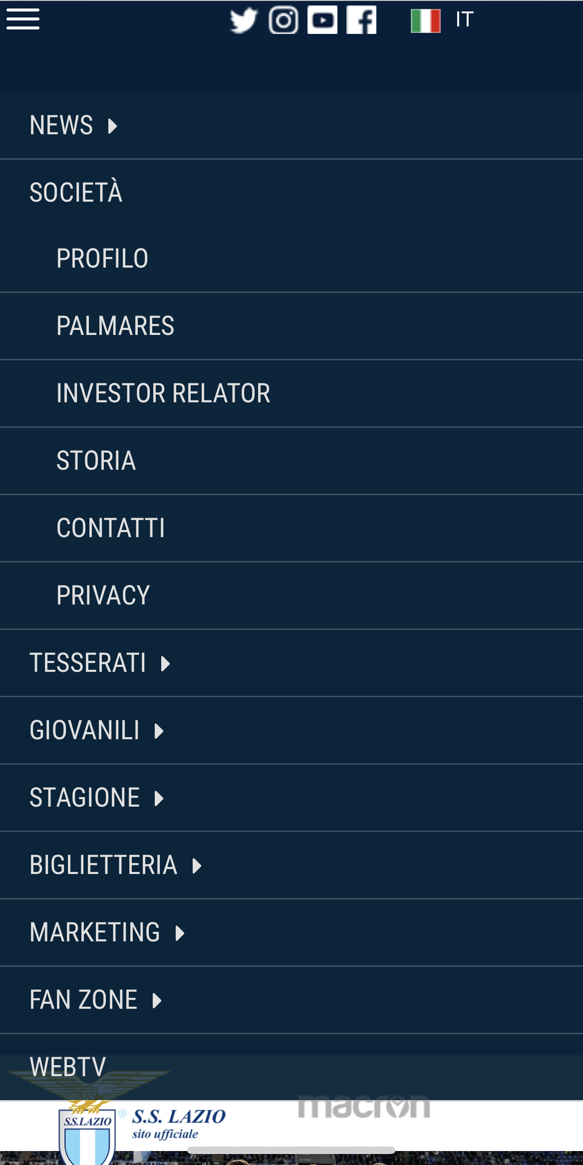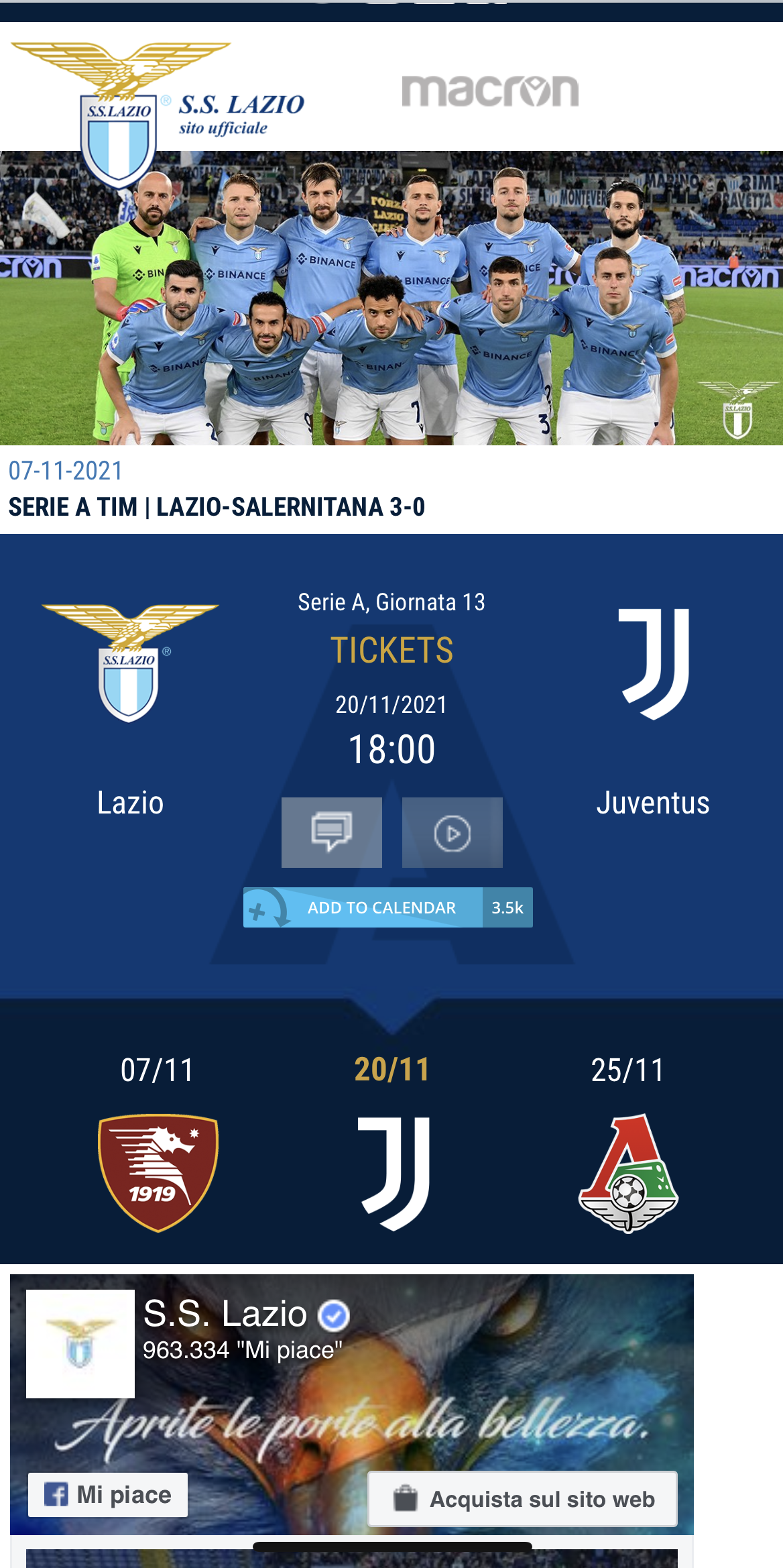 Sotto la presidenza di Claudio Lotito la Lazio ha raggiunto traguardi sportivi importanti, attraverso una accorta gestione della rosa ed un’abile valorizzazione dei talenti. Non sempre però è riuscita a creare un’immagine prestigiosa quanto i risultati sul campo, e anche il sito ufficiale soffre di un certo provincialismo sia nell’impostazione che nelle scelte editoriali. Il sito si affida quasi esclusivamente al menù in testa, che racchiude tutte le operazioni di base, e non permette di scrollare oltre un carrousel di notizie, il calendario della Serie A, un triste box social e il banner del canale Tv biancoceleste. Ma le foto scelte e i font applicati sono sciatti e comunicano poca cura verso la propria immagine, un crimine che una squadra con aspirazioni internazionali non può compiere.