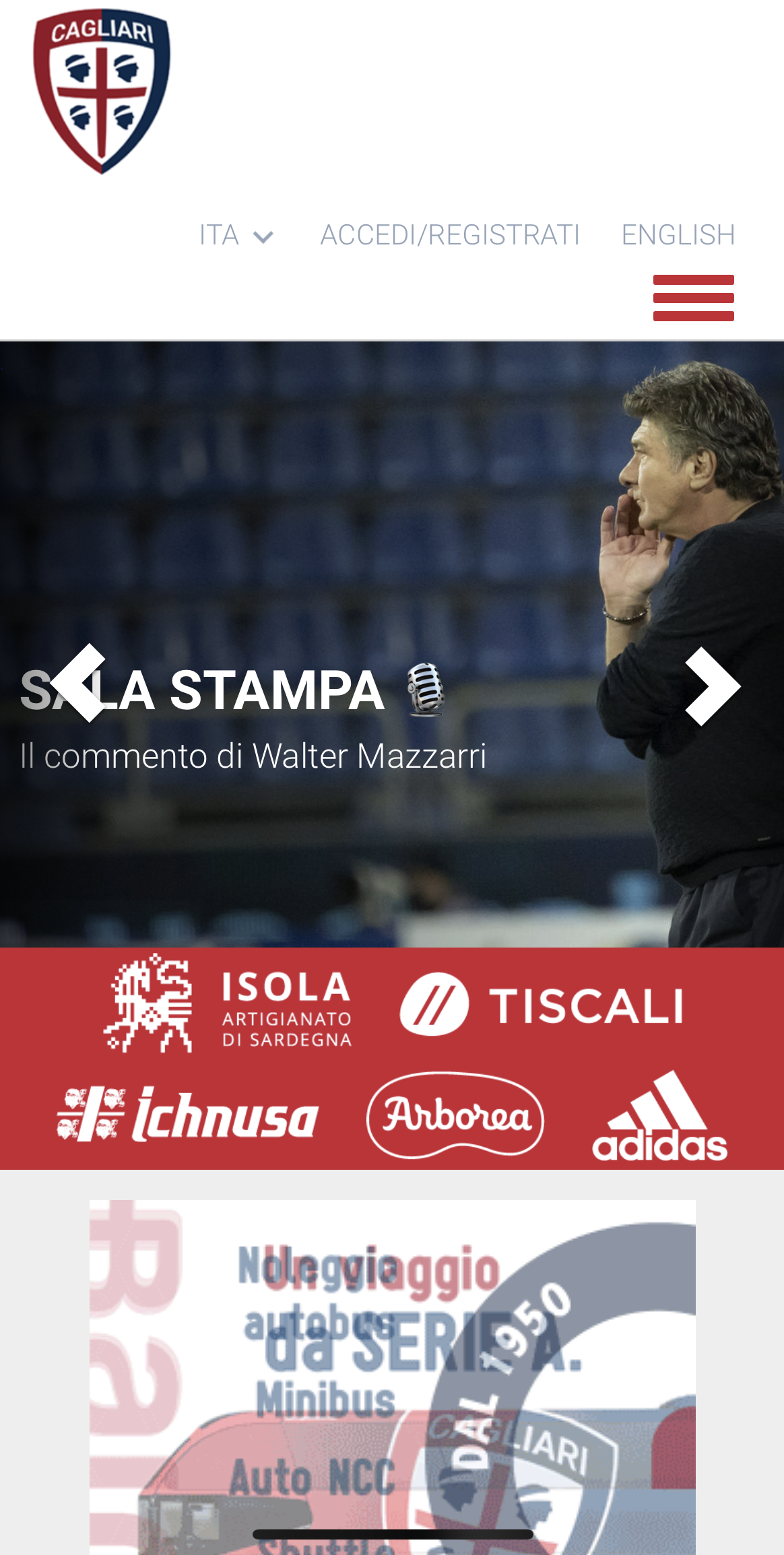Il sito del Cagliari purtroppo soffre della cronica mancanza di innovazione e investimenti che colpiscono il calcio italiano. E’ un sito accettabile, dove trovare le informazioni base necessarie per un tifoso medio, con il calendario dei prossimi impegni di campionato, le dichiarazioni pre e post partita ed uno shop dove potete acquistare un monopattino elettrico con lo stemma dei quattro mori. Ma esibisce un chiaro rifiuto a pensare al sito come parte di uno storytelling e di un branding sulla squadra isolana mentre il calcio sta andando nella direzione opposta, dove il fuori campo conta quanto il dentro, e il costruire un’immagine credibile è fondamentale nella sostenibilità della società.