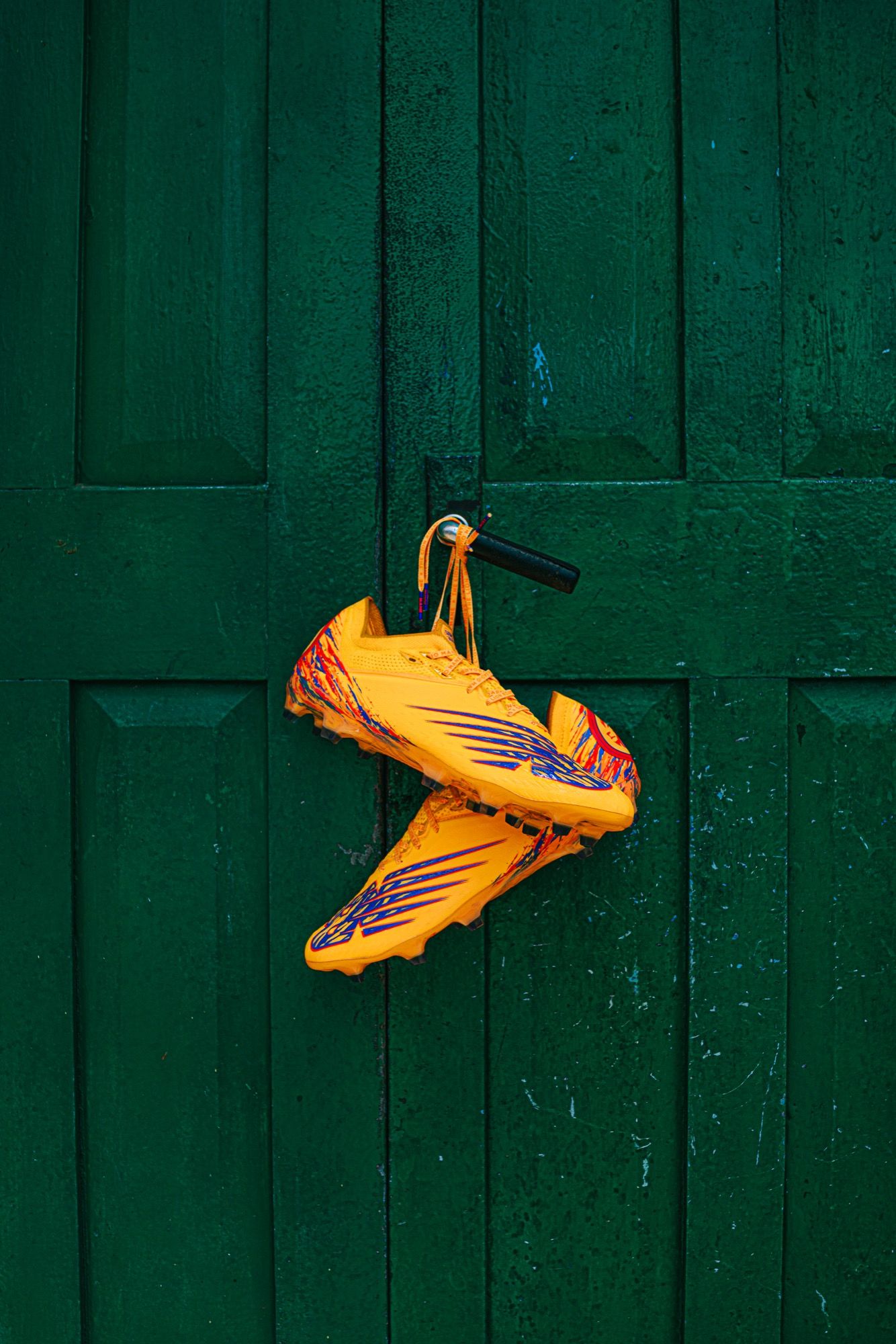 New Balance ha realizzato per Sadio Mané degli scarpini per la Coppa d'Africa Un paio di FURON 6+ arancioni e blu che esprimono tutta l'energia e l'attaccamento del giocatore del Liverpool per il suo Senegal