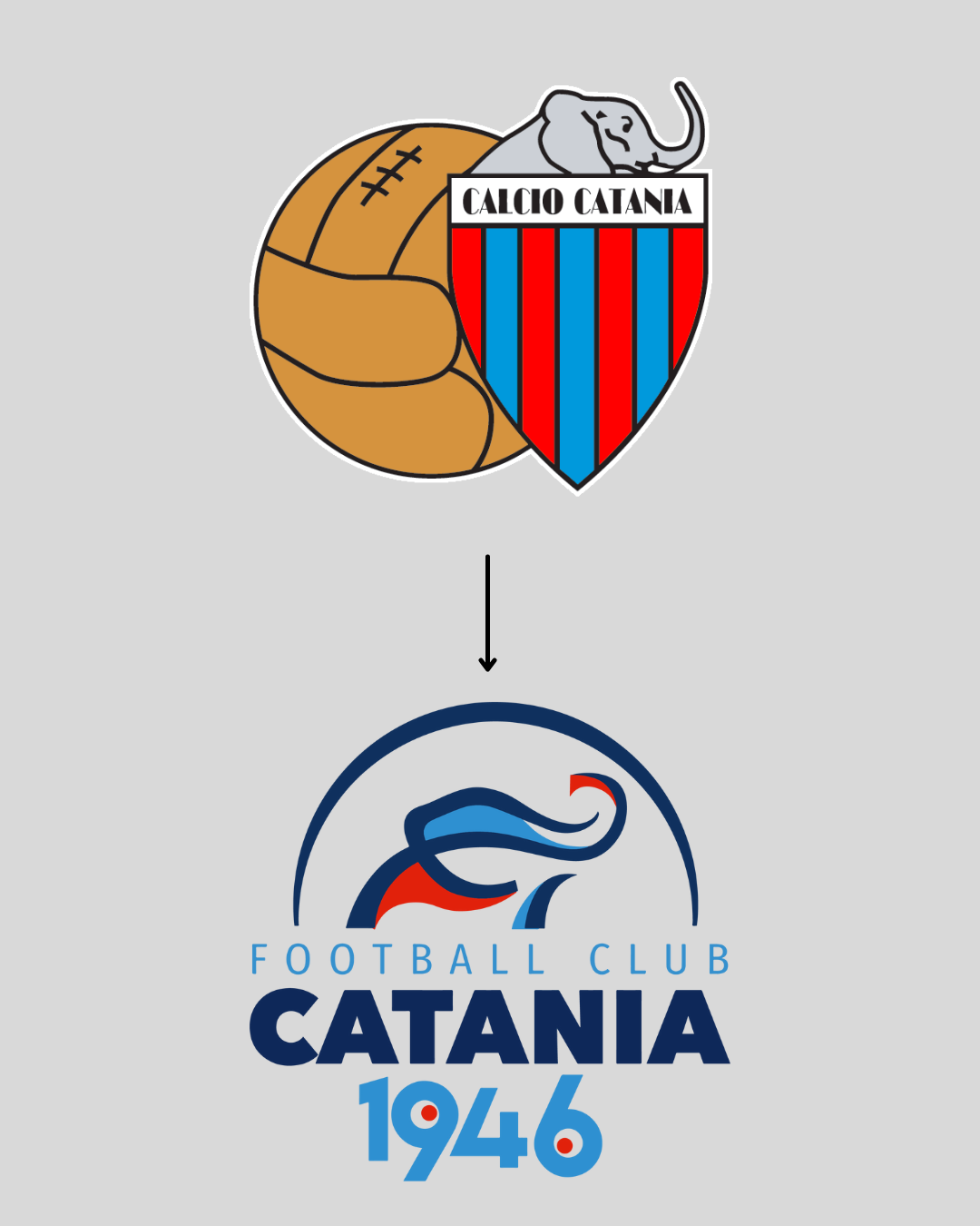 Dopo due aste andate deserte con la squadra in mano a dei curatori, martedì 15 il Calcio Catania è stato ufficialmente acquistato da Benedetto Mancini. L'imprenditore romano ha salvato la società da un fallimento già annunciato e tramite una società creata ad hoc, chiamata Football Club Catania 1946, ha acquisito dal tribunale siciliano l'intero il ramo sportivo della società etnea. Oltre ai grandi annunci già arrivati durante la prima conferenza stampa, dove il neo presidente si è detto pronto ad investire fin da subito per riportare il club rossoazzurro dove merita, c'è anche l'intenzione di rivoluzione ogni cosa, dal logo all'organigramma societario, dove già ha anticipato il nome di Perinetti. Prima dell'ufficialità dell'acquisizione, Mancini ha fieramente svelato un nuovo logo - disegnato a Catania per il Catania - nonostante dagli annunci non sia chiaro se dalla prossima stagione il presidente deciderà di cambiarlo, usando un nuovo crest con l'elefante pennellato in una versione minimalista. Rispetto a quello attuale oltre al nome, modificato per ragioni burocratiche, nel nuovo logo non sarà presente il pallone storico in cuoio e scompariranno anche le strisce rossoazzurre vicino all'elefante. Nella rinnovata versione è accompagnato dal nome del club e da un semicerchio nella parte superiore che ne delinea la forma.