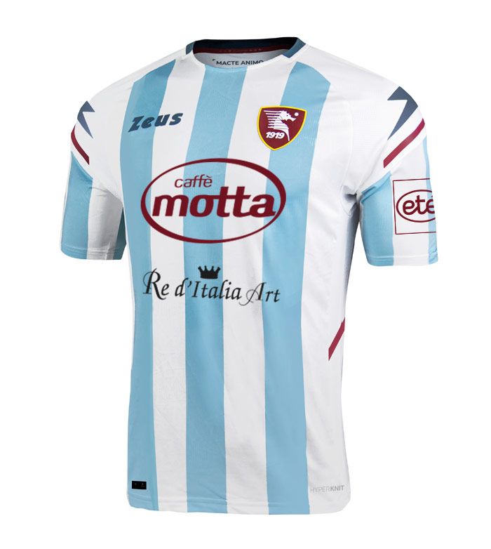 La maglia “Icon” rilasciata quest’anno è il fiore all’occhiello della nostra collezione. Il template strisciato biancoazzurro è uno dei grandi classici della storia della Salernitana. Come tutti sappiamo, la Salernitana viene fondata nel 1919 ma la prima maglia di quella squadra in realtà non era granata, e neanche simile a questo colore. La divisa ufficiale infatti fino al 1922 era di colore bianco e azzurro a strisce, in pieno stile Argentina o Pescara. C’è chi ipotizza come alla base di questa scelta ci fosse il voler seguire moda del tempo. In quegli anni infatti era tendenza, per le squadre di città sul mare, di utilizzare questi colori con il bianco rappresentava il cielo, mentre il celeste il mare.