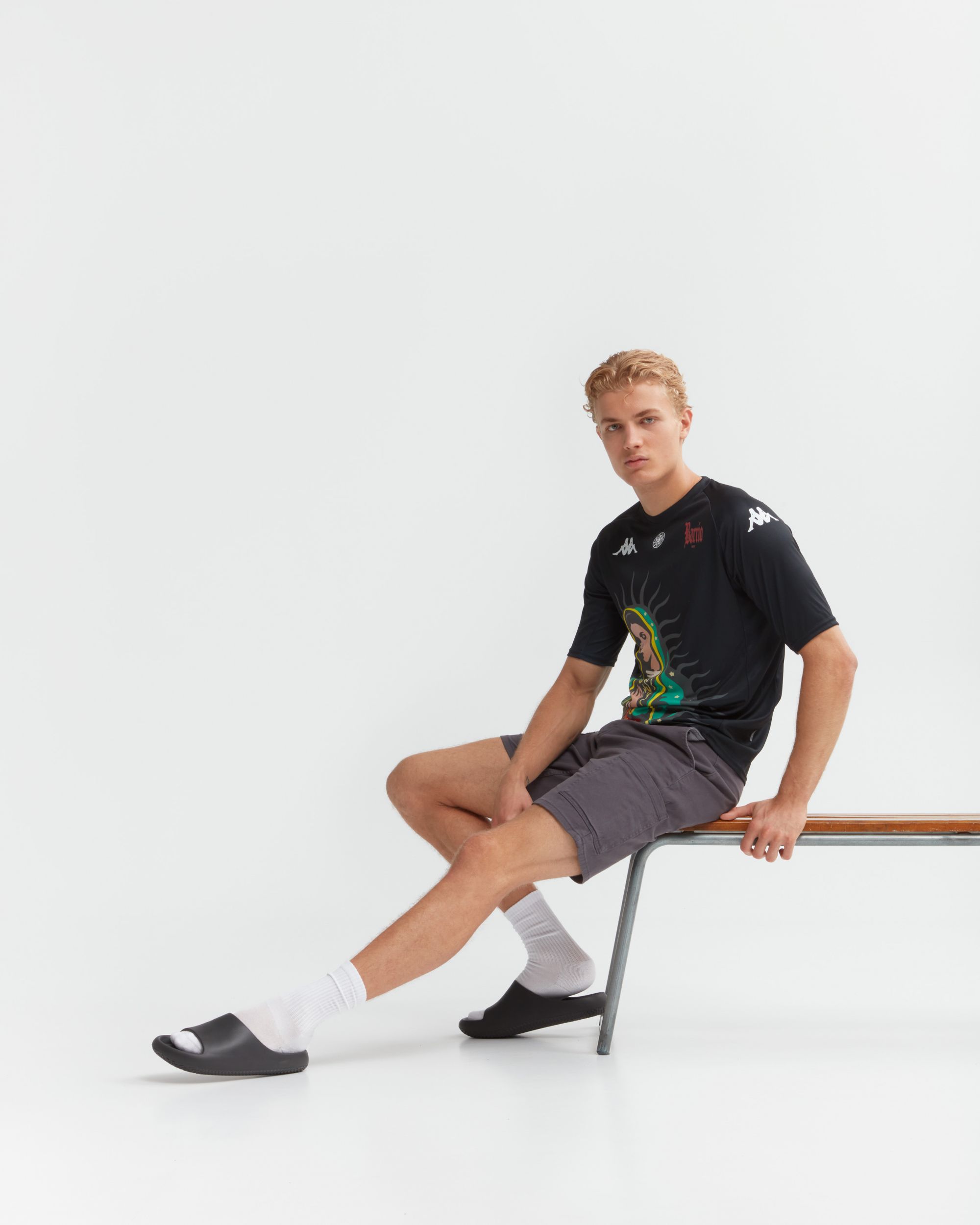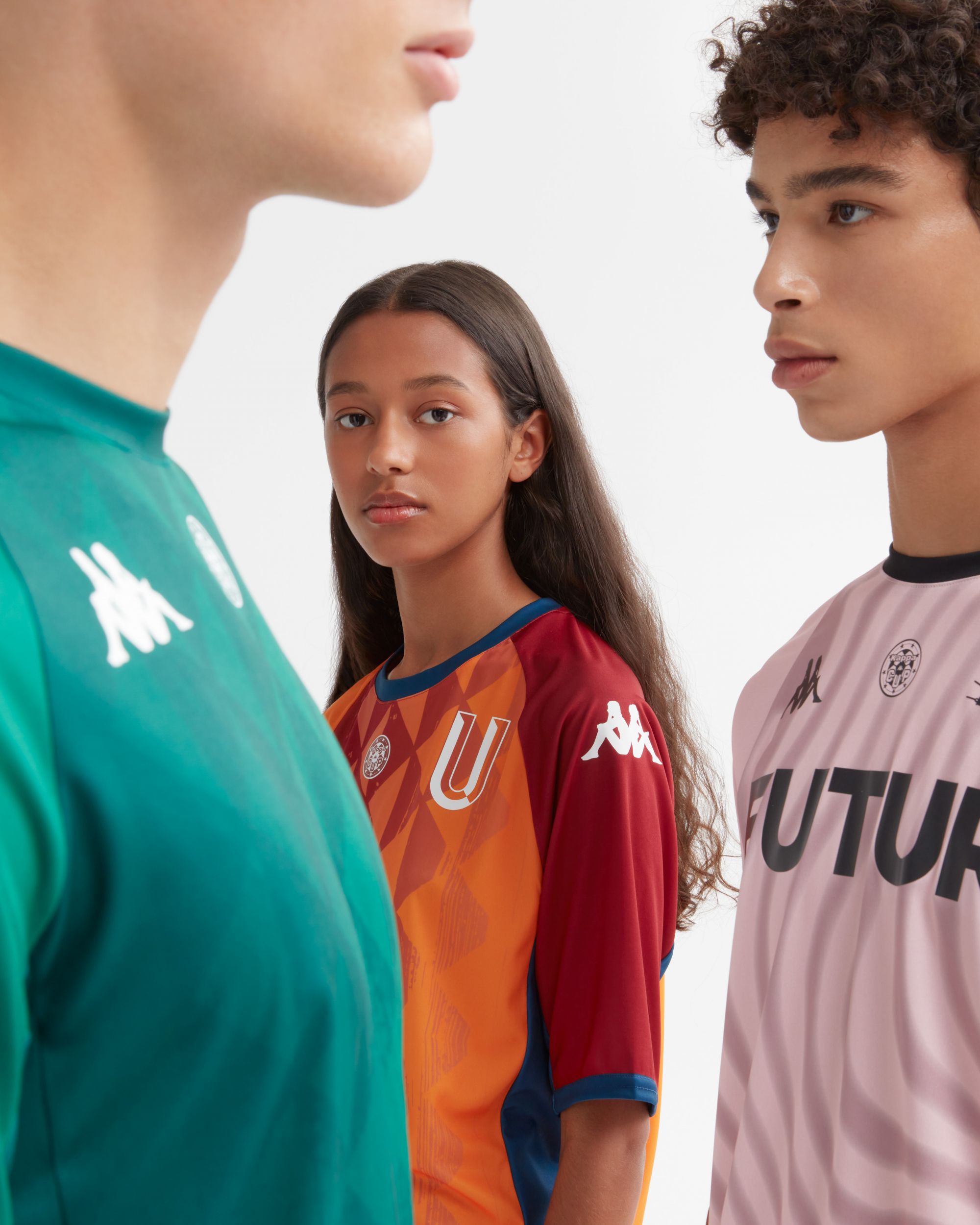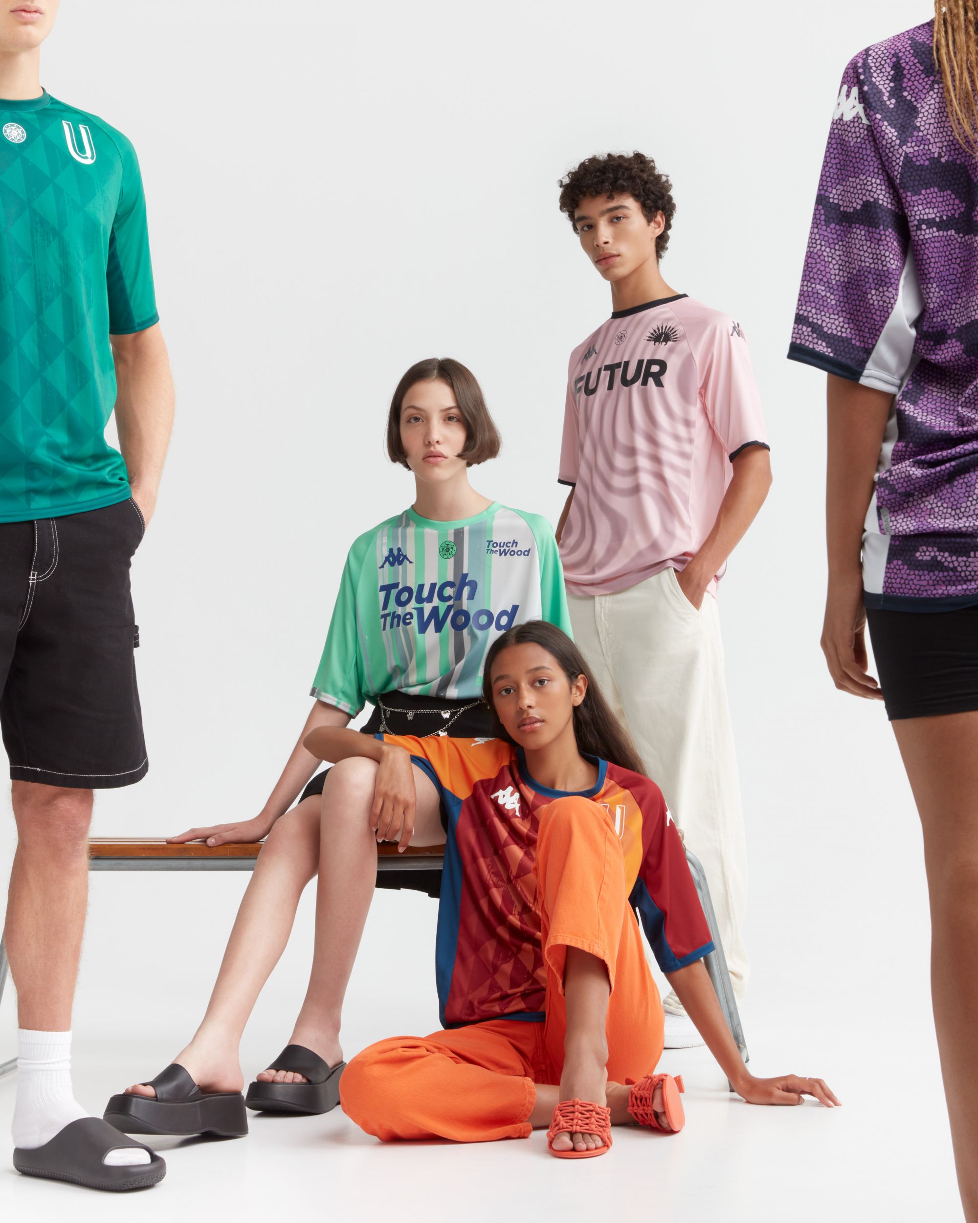 Per la prima volta riunite insieme in un solo shooting, le maglie dimostrano la varietà di influenze e le differenti ispirazioni che le contraddistinguono. Dall’incontro tra sacro e profano sulle maglie di Barrio ai riferimenti all’hip-hop anni ‘90 su quelle di Touch The Wood e Ginnika, alla scelta sempre pulita di Calcetto Eleganza in total black per arrivare ovviamente a quelle indossate dai giocatori di Kappa Futur Festival, che nel pattern riprendevano quello usato dal festival torinese. L’estetica bloke core qui viene declinata attraverso lo stile inconfondibile delle maglie Kappa, un'eccellenza italiana dello sportswear che ha saputo affermarsi vestendo alcuni dei club più prestigiosi al mondo.