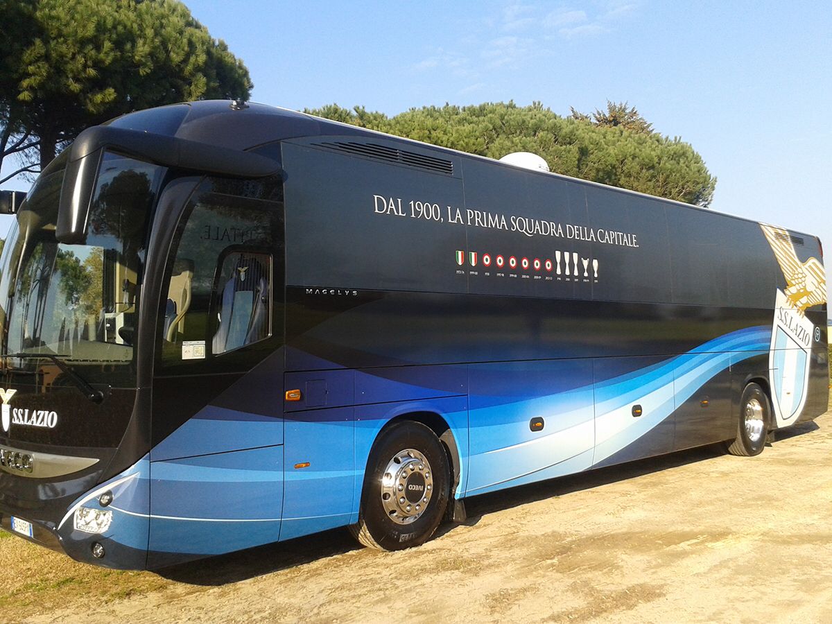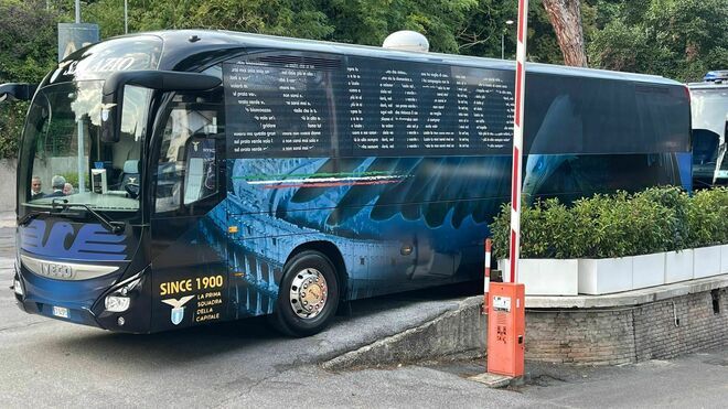 Dalle fine del 2021, la Lazio si presenta all’Olimpico con un pullman che ha sin da subito fatto innamorare i tifosi. Una grossa aquila presente su entrambe le facciate, simbolo della squadra, ma soprattuto la scritta S.S. Lazio sui finestrini che ha in se una bellissima particolarità: il nome del club è infatti trascritto utilizzato le parole dell’inno ufficiale laziale.