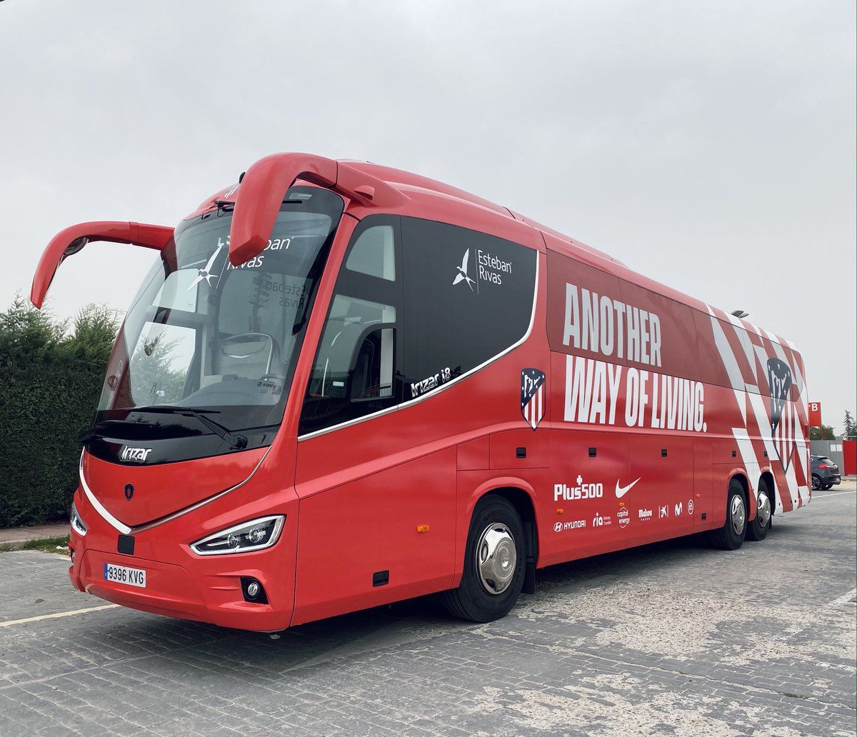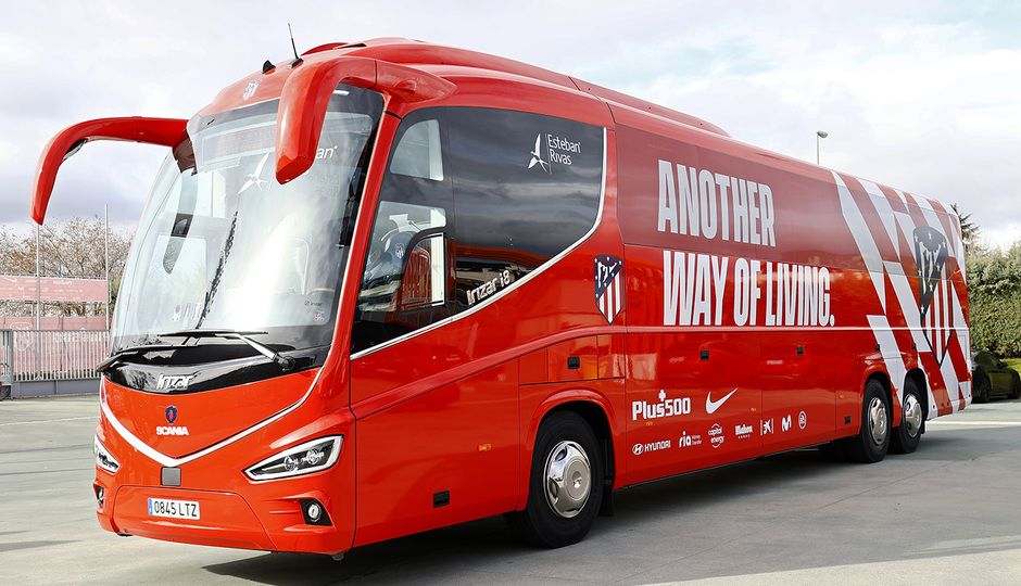 Nel dicembre 2021, l’Atletico Madrid ha presentato il nuovo pullman di rappresentanza. Un capolavoro di tecnologia che possiede il massimo dei comfort per i suoi passeggeri. Verniciato ovviamente di bianco e rosso, sulle fiancate del bus è presente la scritta “Otra forma de entender la vida”, da un lato in spagnolo e dall’inglese: “Un’altra forma di intendere la vita”. Al suo interno presente un sistema di intrattenimento composto da schermi touch da 9'' posti sugli schienali, oltre a una presa da 220V e un caricatore USB.