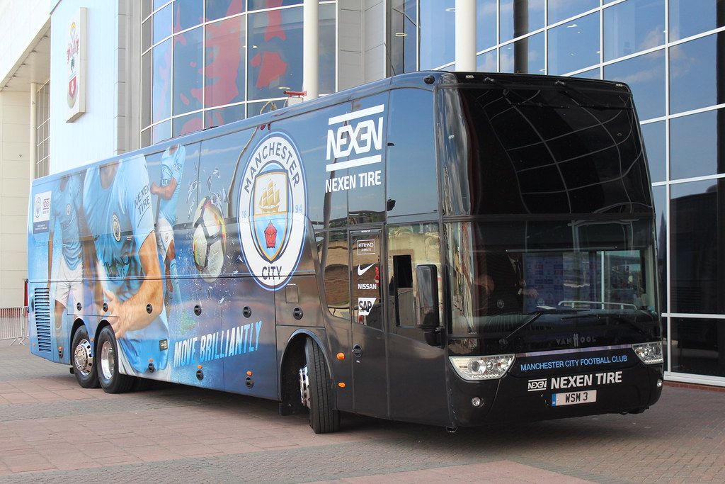 In Inghilterra, il Manchester City è uno dei club che nel corso degli anni ha presentato una gran varietà di pullman stagione dopo stagione. Il fattore comune è però sempre lo stesso: sulle fiancante sono presenti in gigantografia momenti della passata annata della squadra. In primo piano, inoltre, capeggia il motto del club: “We Are City”, che dà un senso di stretta appartenenza tra squadra e tifosi.