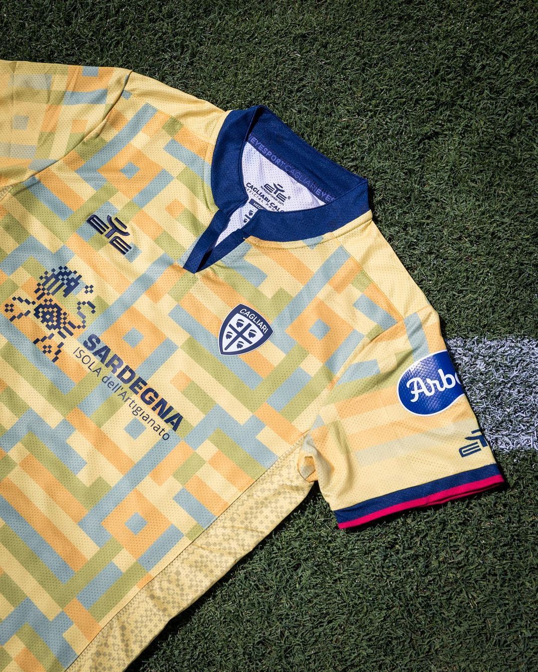 La novità principale è sicuramente il cambio di sponsor tecnico, con la società del presidente Giulini che ha infatti deciso di lasciare adidas e di affidarsi ad EYE Sport, brand locale che farà il suo esordio nella serie cadetta. La collaborazione tra il Cagliari e il suo nuovo sponsor tecnico ha dato vita a delle divise da gioco che uniscono la tradizione ad elementi innovativi in un prodotto unico, con forti richiami alla Sardegna e alla vocazione green. La terza maglia di base gialla con la sua trama colorata non poteva mancare in questa speciale classifica.