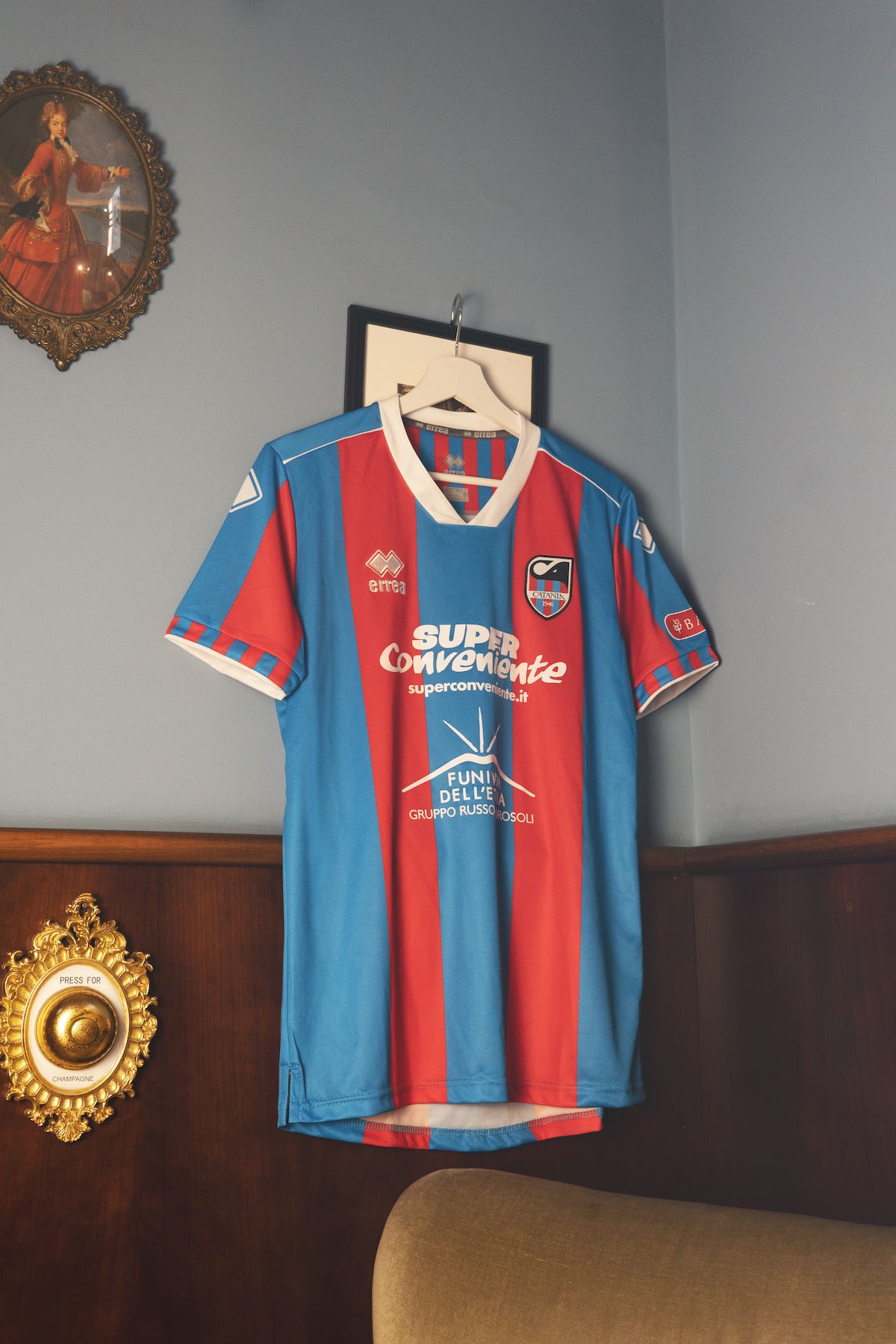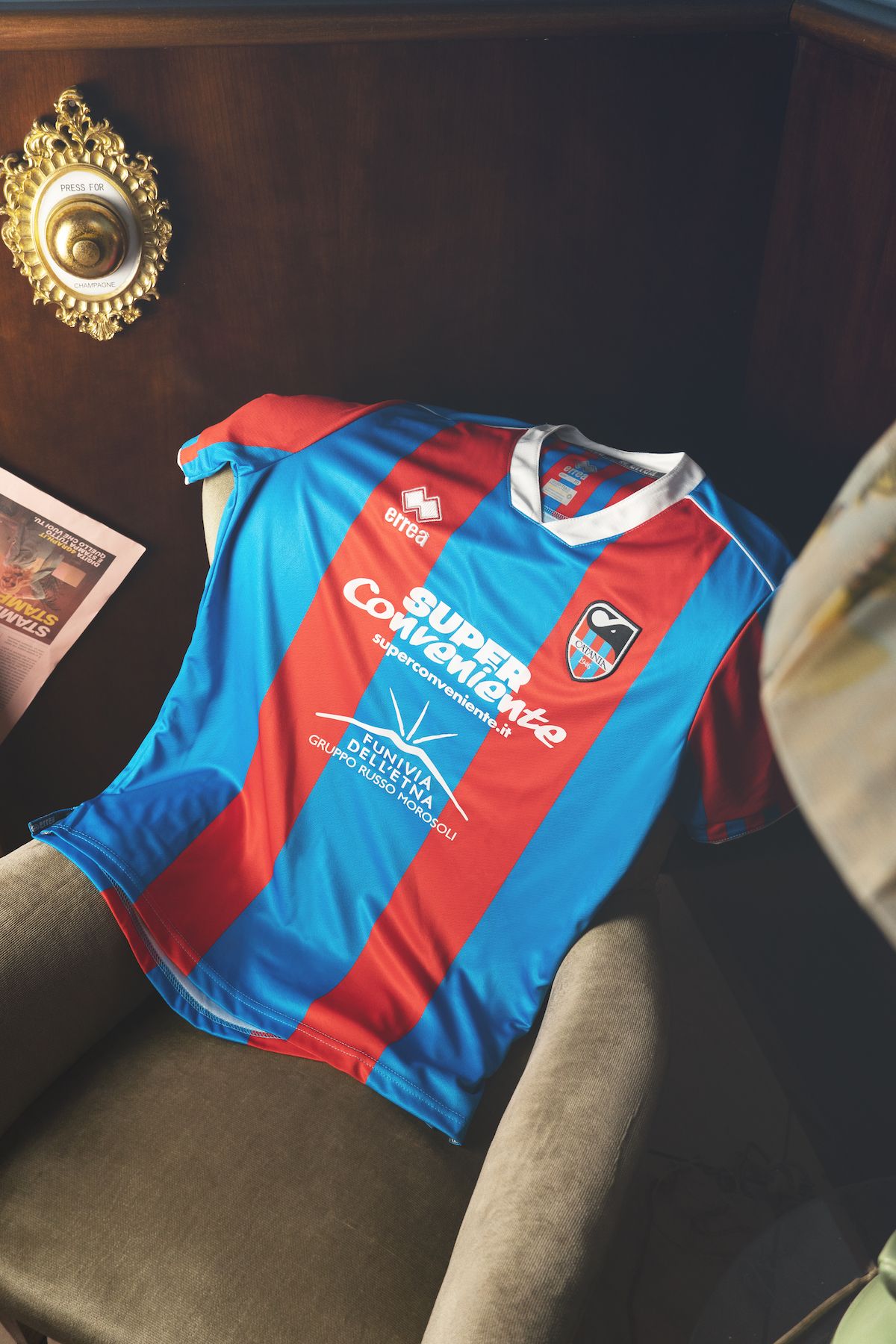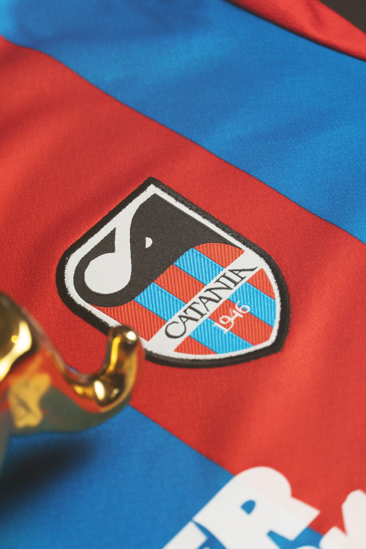 Dopo il fallimento, la conseguente acquisizione e la rifondazione, il nuovo Catania di Ross Pelligra è finalmente pronto a lasciarsi tutte le vicende extra campo alle spalle e a ripartire. Ieri in un pomeriggio di festa allo stadio Angelo Massimino, la nuova società insieme allo sponsor tecnico Erreà ha presentato le prime due maglie della stagione con cui gli etnei scenderanno in campo nel campionato di Serie D. “Melior de cinere surgo”, con queste parole comincia l’avventura per il nuovo club Catania Società Sportiva Dilettantistica (Catania SSD), una frase presente sulla Porta Ferdinandea, un arco trionfale costruito nel 1768 che sintetizza come la popolazione catanese continui a ricostruire sempre più bella la propria città sulle ceneri della precedente. La maglia home è volutamente di stampo classico a righe ampie verticali rosse e azzurre, nella cui lunetta e nel polso è stato inserito un rigato più stretto del medesimo colore a scopo decorativo. A completare il tutto un collo in un rivisitato taglio a V di colore bianco.