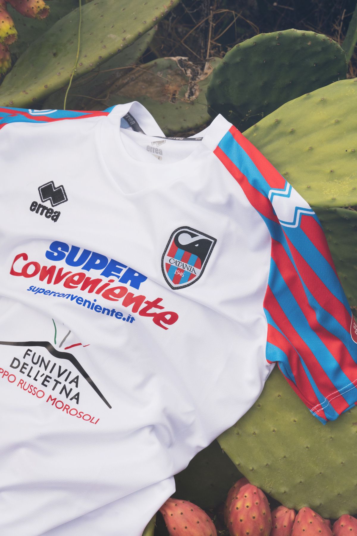 Insieme alla prima maglia il Catania SSD ha svelato anche la seconda, su sfondo bianco, con collo a giro e maniche a raglan con fantasia a righe rosse e azzurre. Il retro di entrambe le divise, riporta, sotto il collo la dicitura “Melior de cinere surgo”, simbolo di rinascita dopo le peripezie degli ultimi anni che hanno sancito la perdita della storica matricola e il conseguente definitivo fallimento. Si tratta di maglie che rappresentano un punto d’inizio per dare spazio al nuovo stemma della società etnea nel quale coesistono elementi tradizionali e di innovazione.