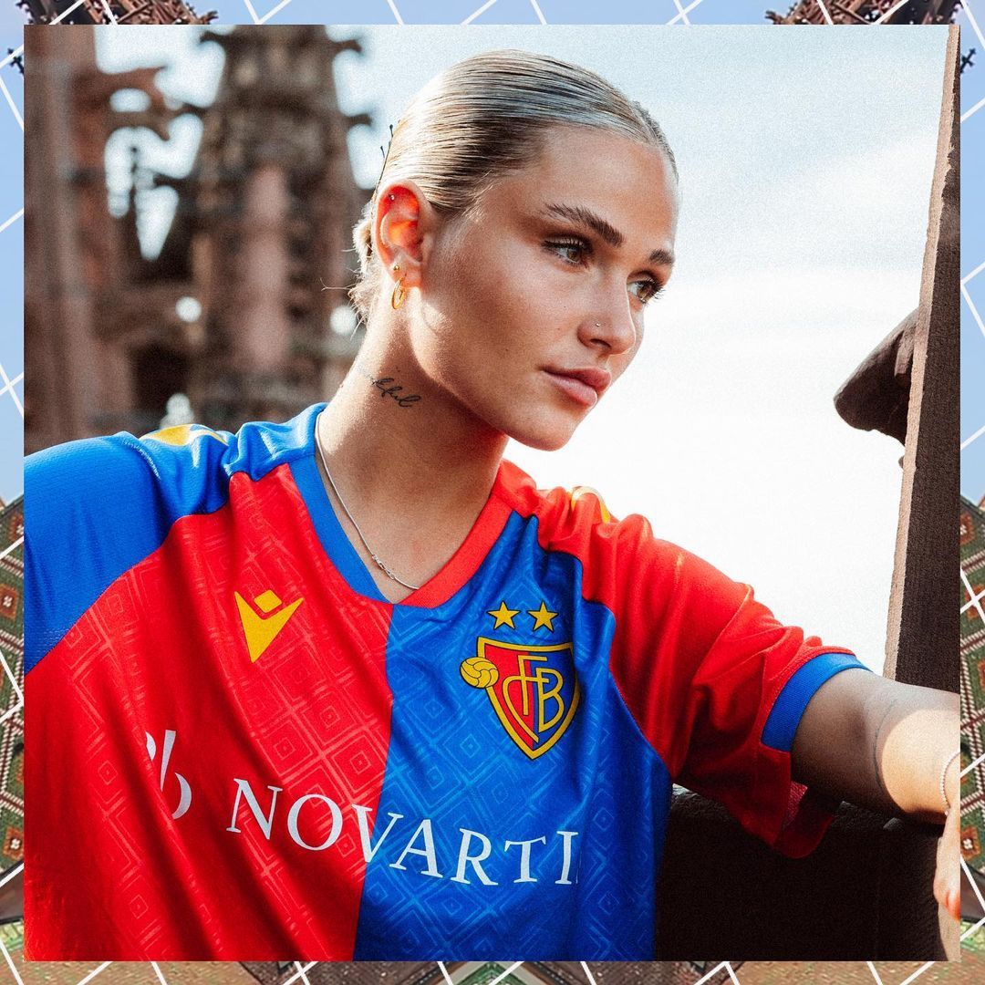 A impreziosire la maglia divisa come di consueto in rosso e blu è qui un pattern emboss romboidale che richiama le mattonelle del tetto della cattedrale di Basilea, costruzione storica e identitaria per la città. I colori sociali rosso e blu si incrociano e si mischiano, dando vita a un bel gioco cromatico e dinamico per uno stile contemporaneo, che rende la maglia della squadra svizzera ancora più accattivante.