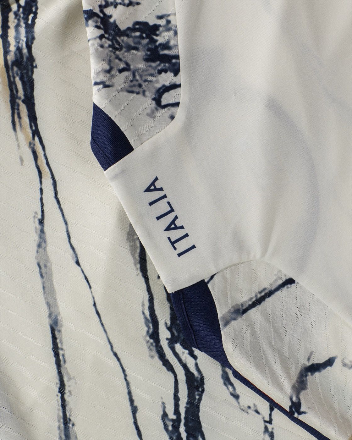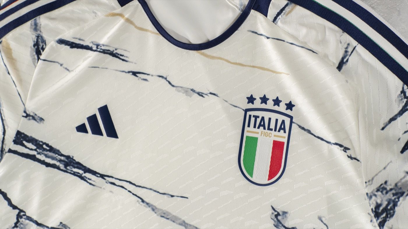 Oltre alla prima maglia, che tradizionalmente è sempre azzurra, è stata presentata anche la versione away, dove anche qui domina il consueto bianco attraversato da venature marmoree sul blu. Per segnare questo momento storico, adidas e FIGC lanciano la campagna di comunicazione “The Search – La Ricerca”, un simbolico viaggio nei tratti identitari italiani, volto a valorizzare la storia calcistica italiana e l’identità del Paese, tra passato, presente e futuro, grazie ad una serie di cameo di star del calcio italiano Donnarumma, Rosucci, Del Piero e al vincitore dell'ultimo Festival di Sanremo BLANCO.