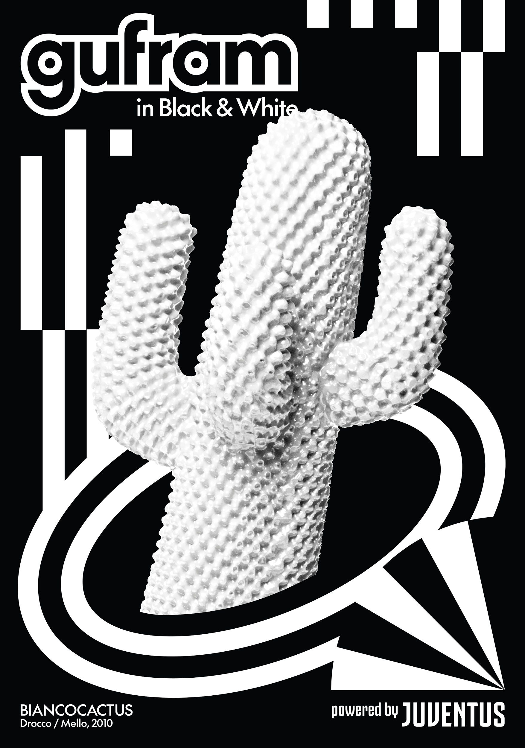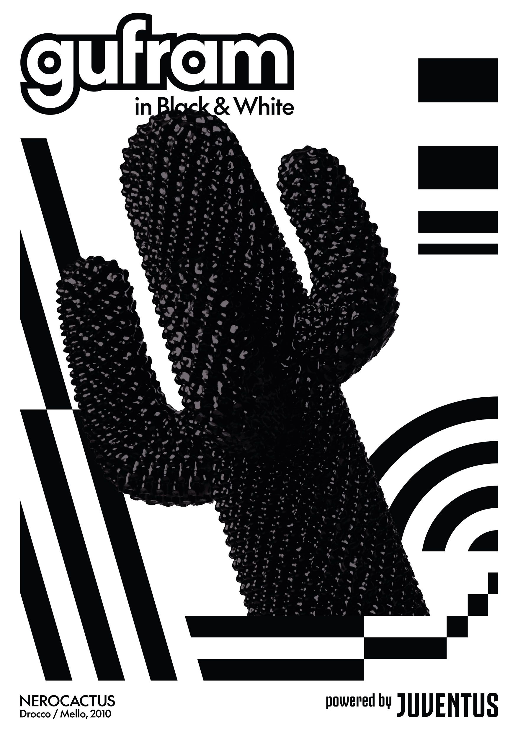 Lo spazio comprenderà un campo da calcio dove il bianco cactus il nero cactus, la bocca in bianco e nero e il ron ron - disponibile nella tipica pelliccia nera insieme alla nuova versione bianca - si sfideranno in una feroce partita. Inoltre verrà ingrandita la famiglia di miniature ironiche e giocose di Gufram, la collezione di Guframini, qui in versione Black and White e caratterizzata da una versione nera del PRATONE®, ma anche da BOCCA® nell’edizione bianca e da un nuovo CACTUS® sfumato in bianco e nero.
