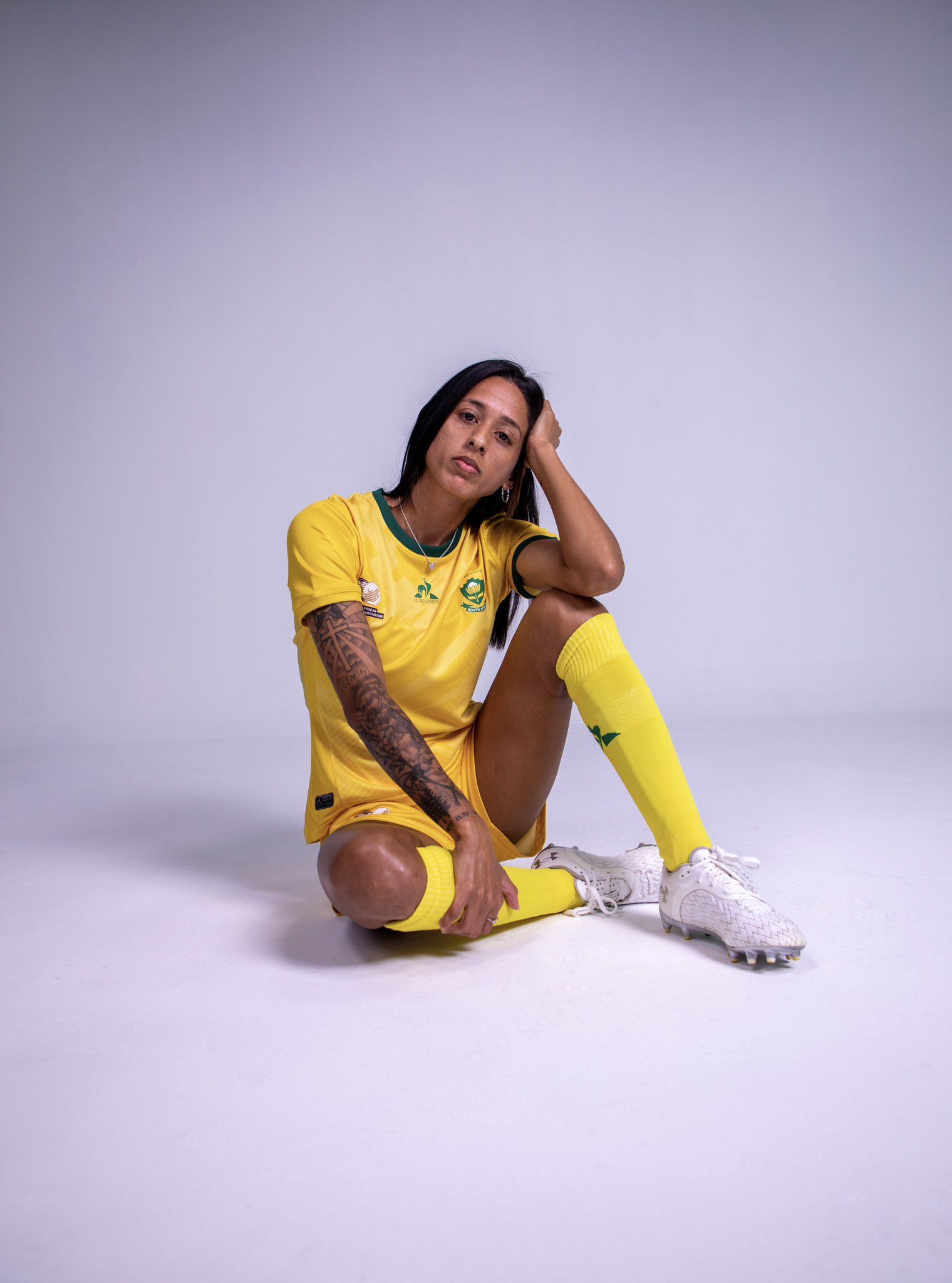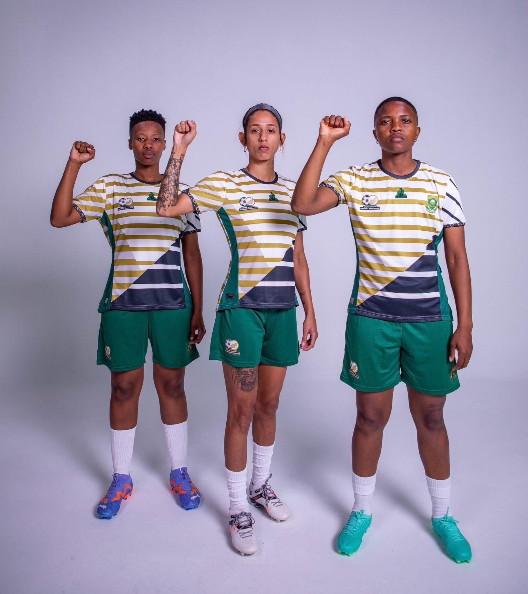 Il vincitore del concorso è stato il designer sudafricano Lwazi Ngcungama, in arte Freewayarts Design, che si è occupato della realizzazione dei tre kit che verranno vestiti dalla nazionale maschile e femminile. Ovviamente la scelta del design si è indirizzata proprio agli anni migliori della nazionale, quando vinse la AFCON nel 1996, recuperando così stampe e pattern vintage che negli ultimi tempi hanno fatto la fortuna anche di altre maglie di nazionali africane. I tre kit usano i tre colori della bandiera sudafricana, il giallo, il verde e il bianco, giocando con diverse dominanze e grafiche. La maglia home è in oro con i dettagli e bordi in verde, la maglia away è in verde con una banda gialla sul fianco destro mentre la terza maglia è sicuramente la preferita dai tifosi, riprendendo il design di quella indossata dai Bafana Bafana dal 1995 al 1997.