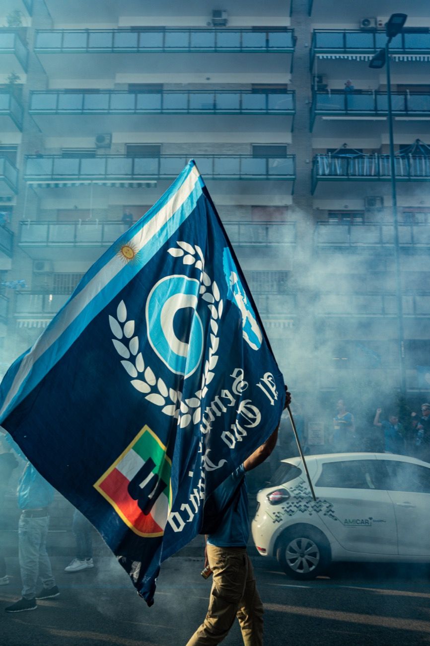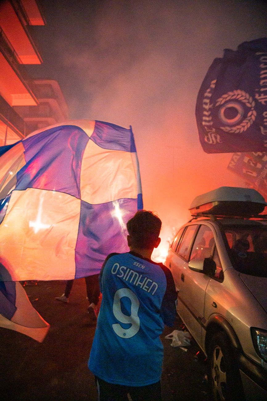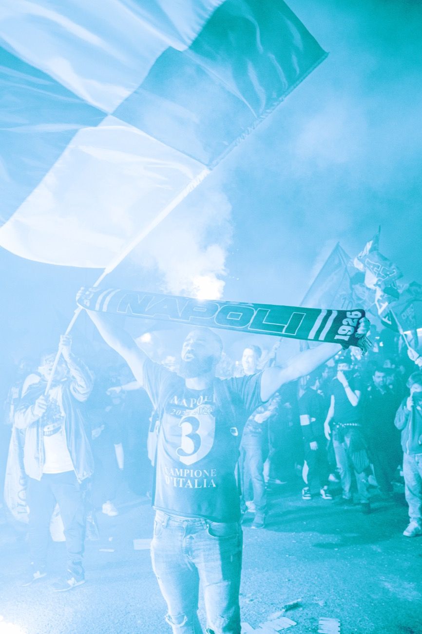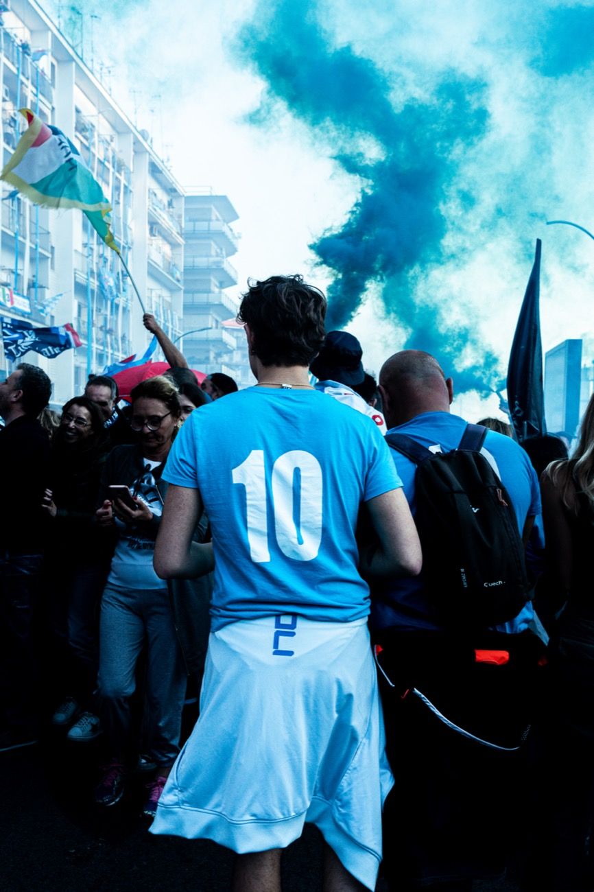 Il fotografo Vincent Migliore ha seguito il lungo fiume azzurro riversarsi nelle strade cittadine, raccontando le diverse sfumature del popolo napoletano dentro una festa che potrebbe non finire più.