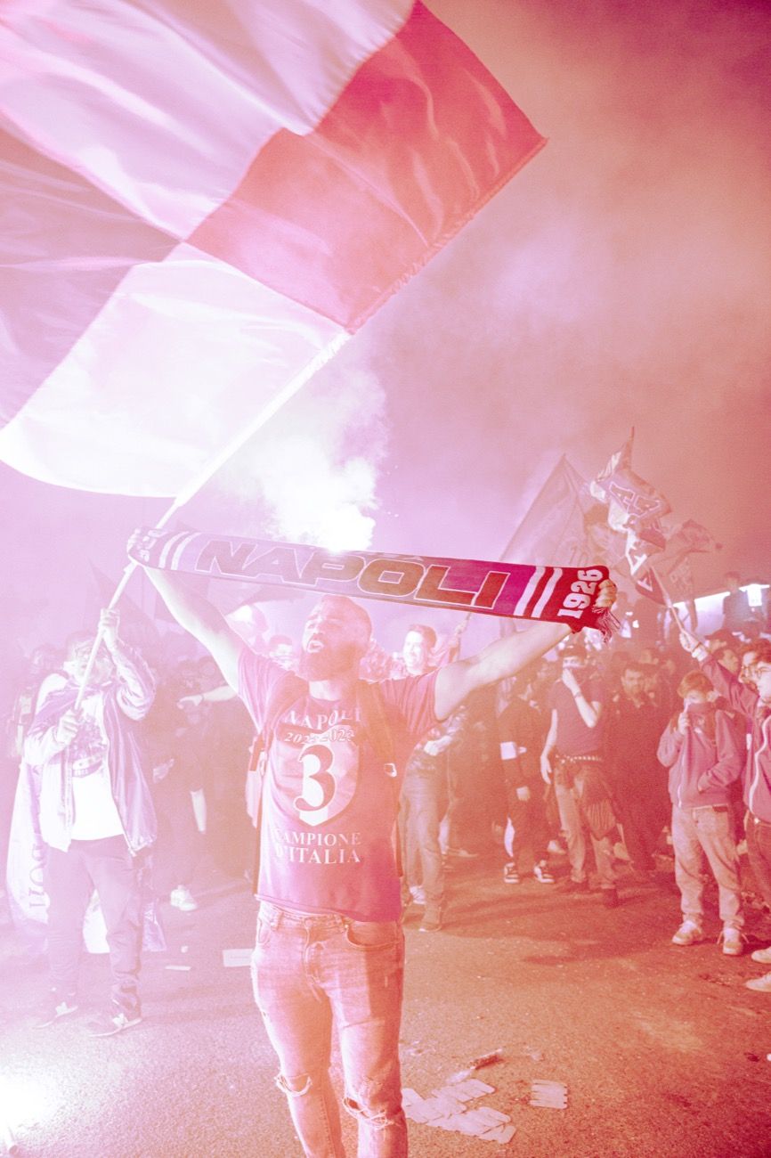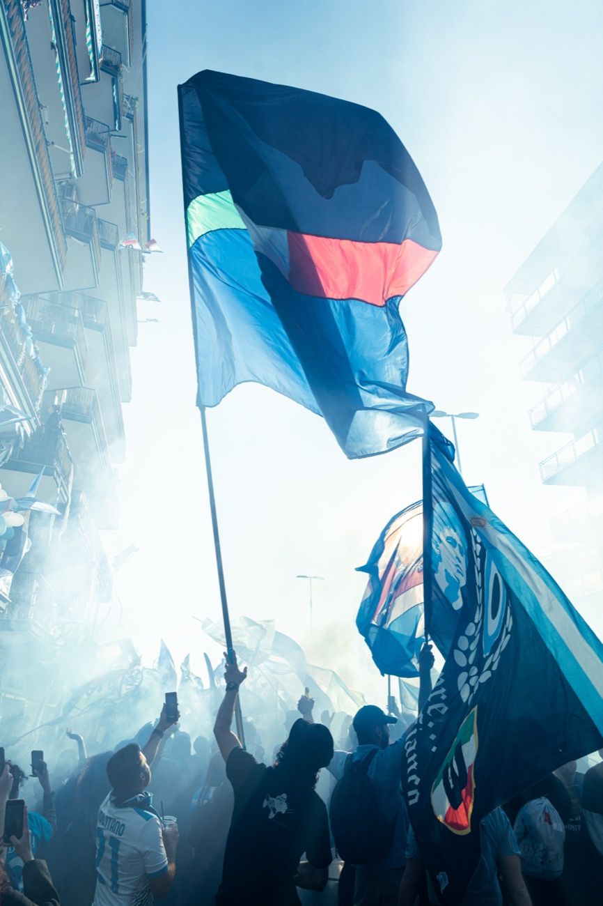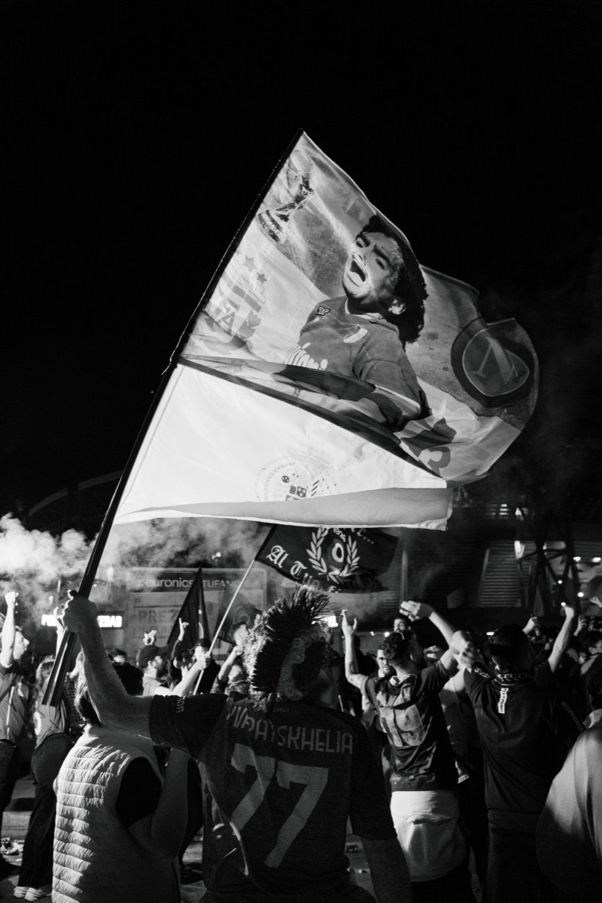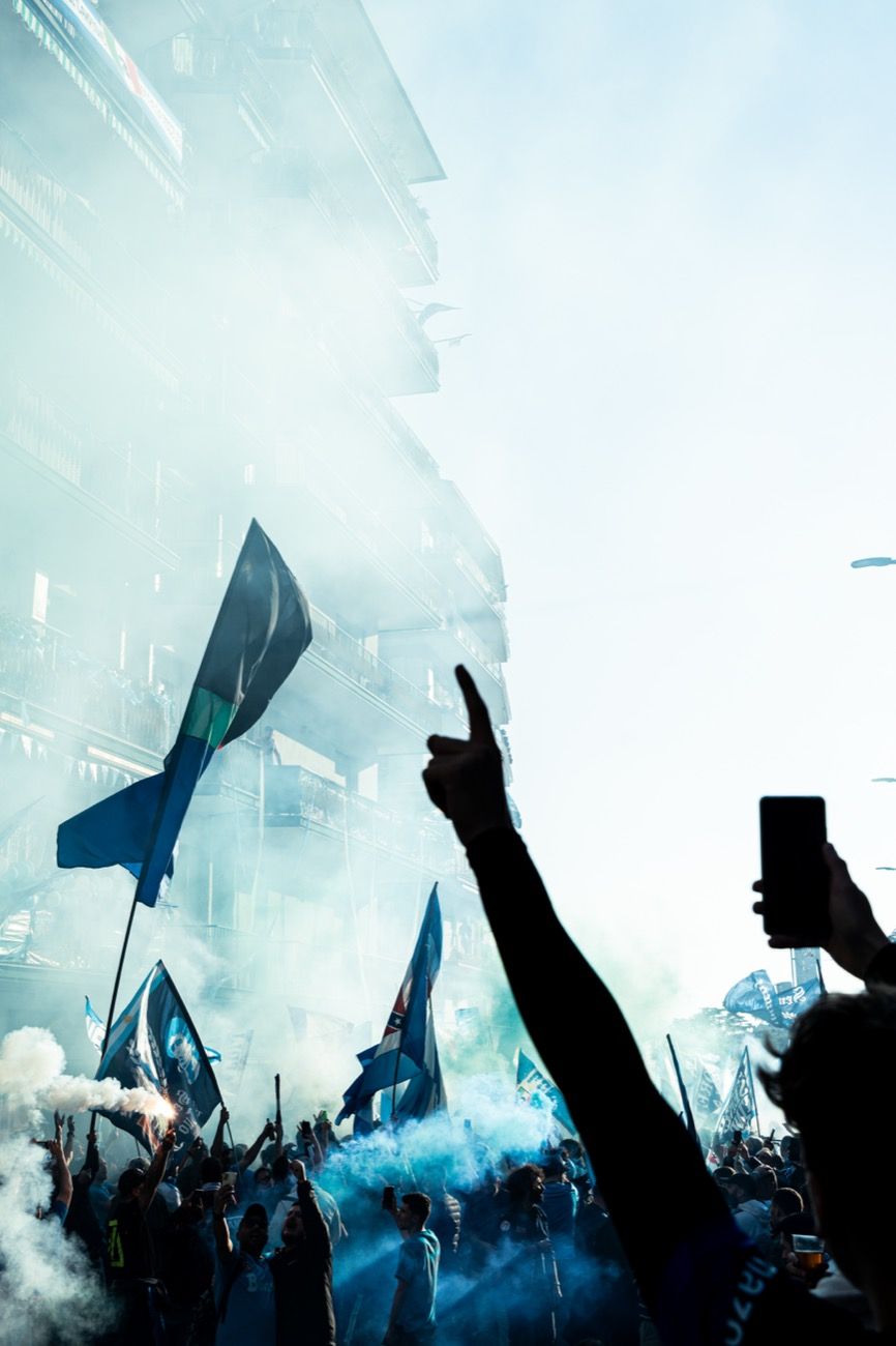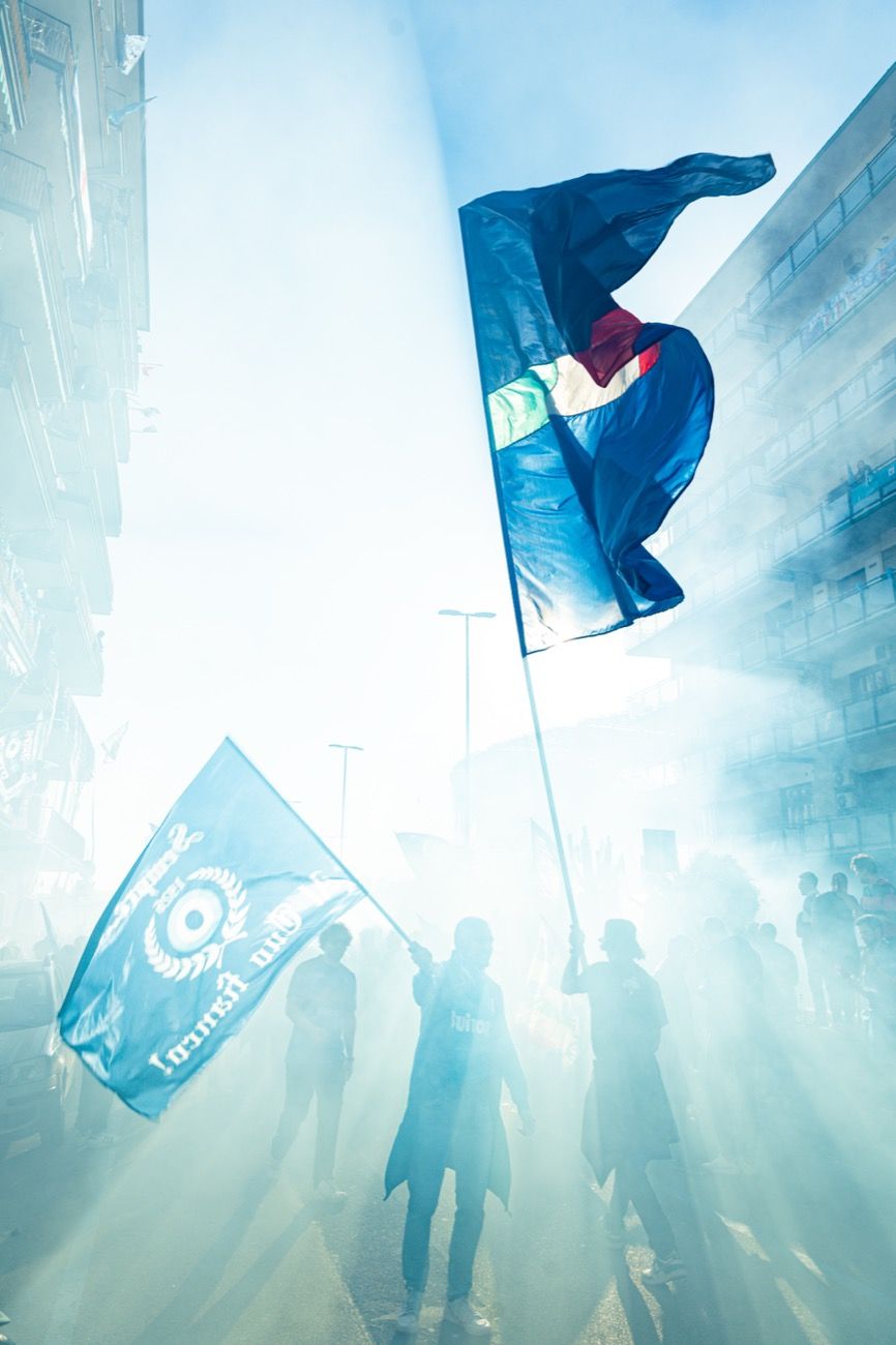 Il fotografo Vincent Migliore ha seguito il lungo fiume azzurro riversarsi nelle strade cittadine, raccontando le diverse sfumature del popolo napoletano dentro una festa che potrebbe non finire più.