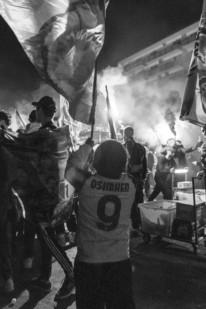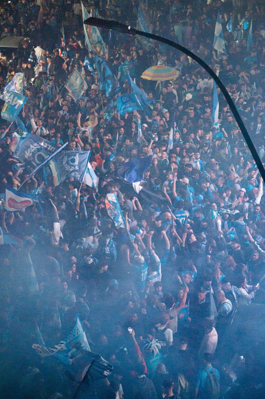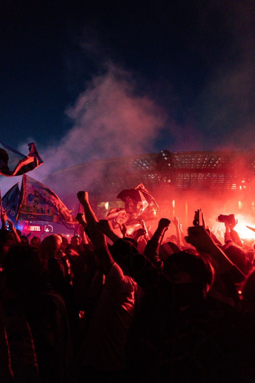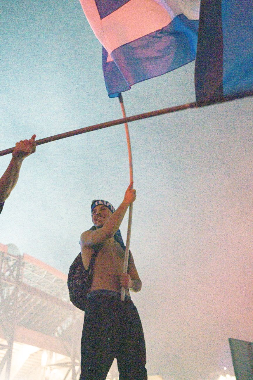 Il fotografo Vincent Migliore ha seguito il lungo fiume azzurro riversarsi nelle strade cittadine, raccontando le diverse sfumature del popolo napoletano dentro una festa che potrebbe non finire più.