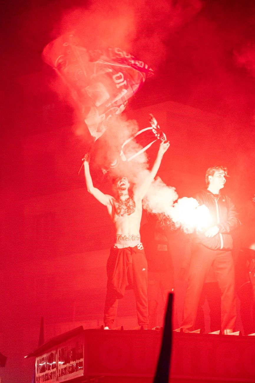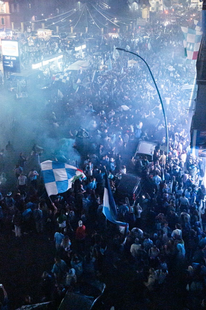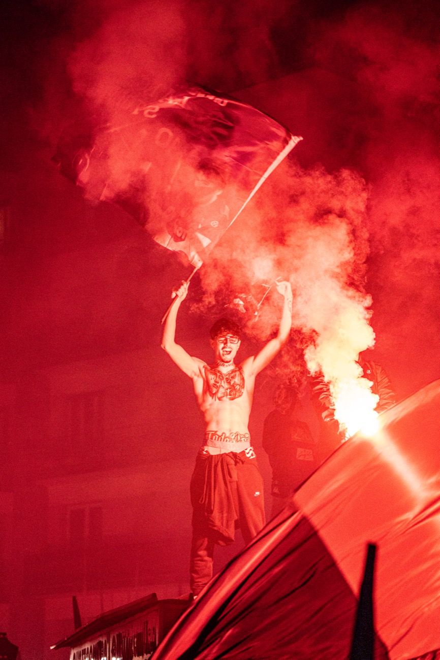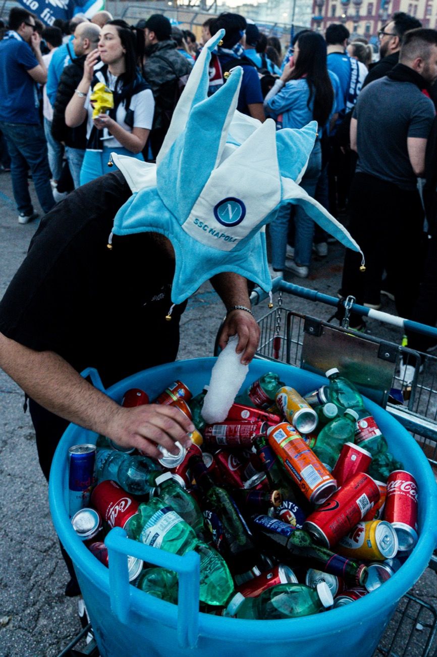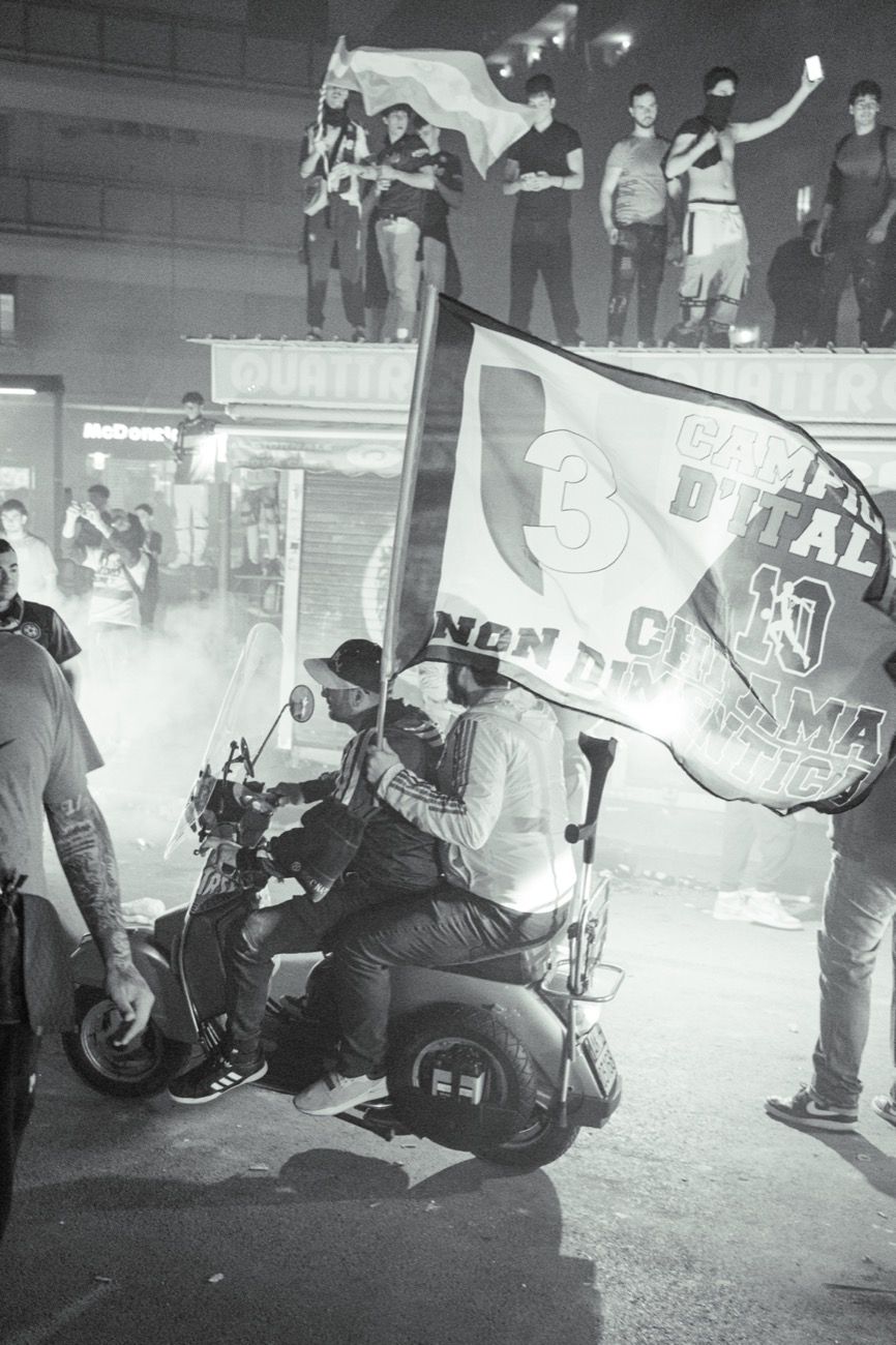 Il fotografo Vincent Migliore ha seguito il lungo fiume azzurro riversarsi nelle strade cittadine, raccontando le diverse sfumature del popolo napoletano dentro una festa che potrebbe non finire più.