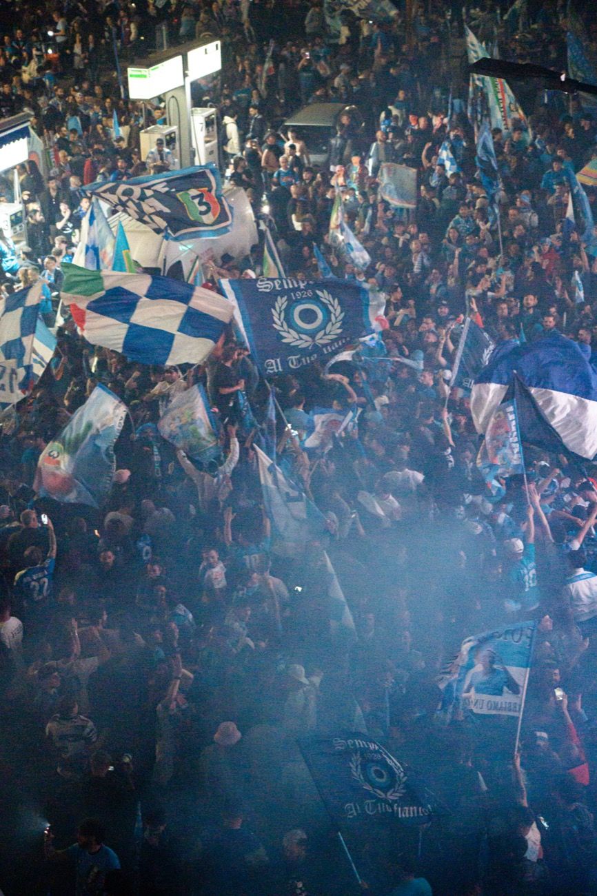 Lacrime, fumogeni, cori e bandiere. Queste sono le scene vissute a Napoli, dove ieri è iniziata una festa attesa trentatré anni. Con il pareggio contro l'Udinese, il Napoli ha finalmente conquistato matematicamente il terzo scudetto della sua storia al termine di una gloriosa cavalcata che ha lasciato a debita distanza tutti gli avversari, nessuna squadra aveva mai vinto il campionato italiano con cinque partite ancora da giocare.