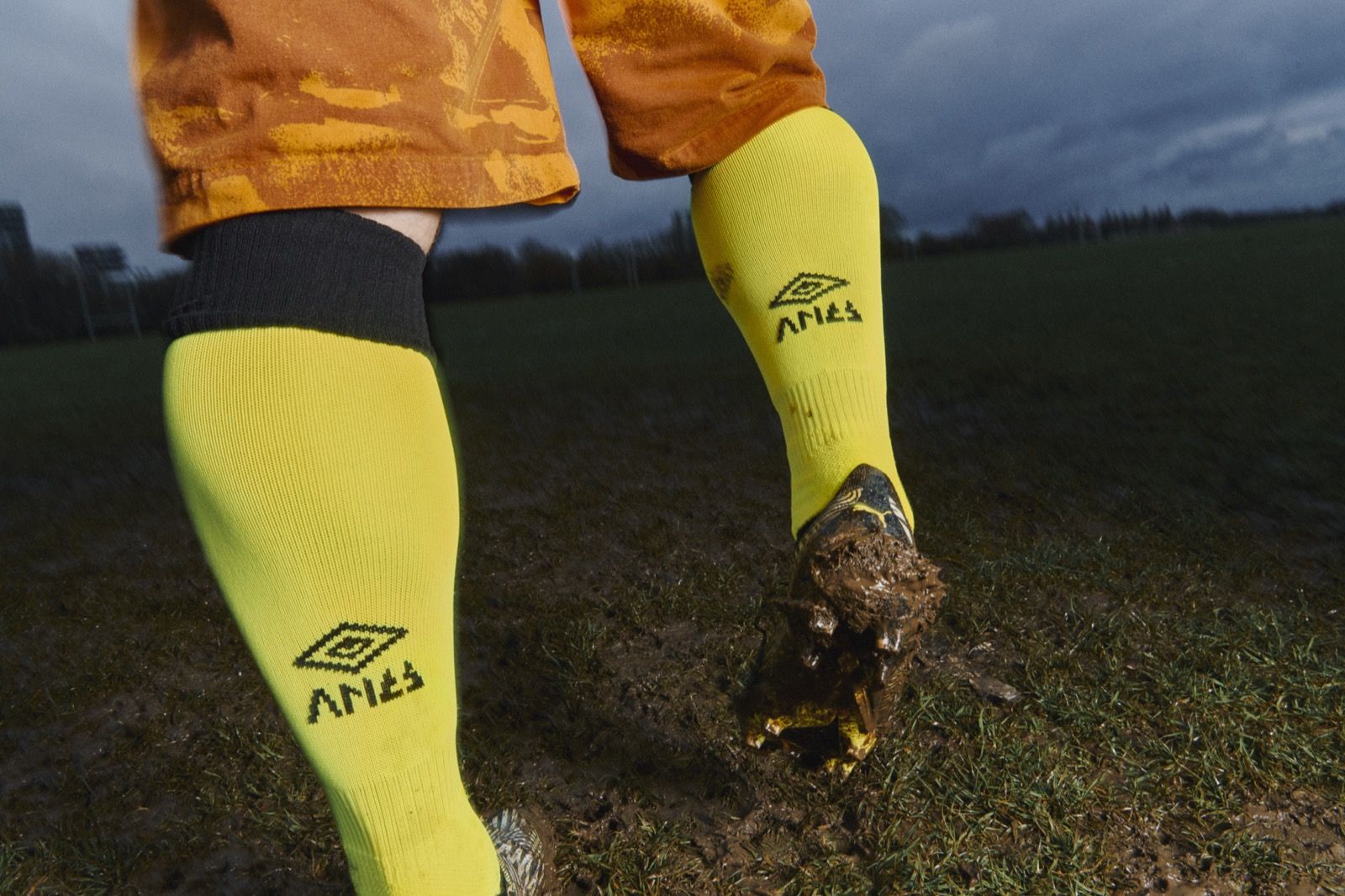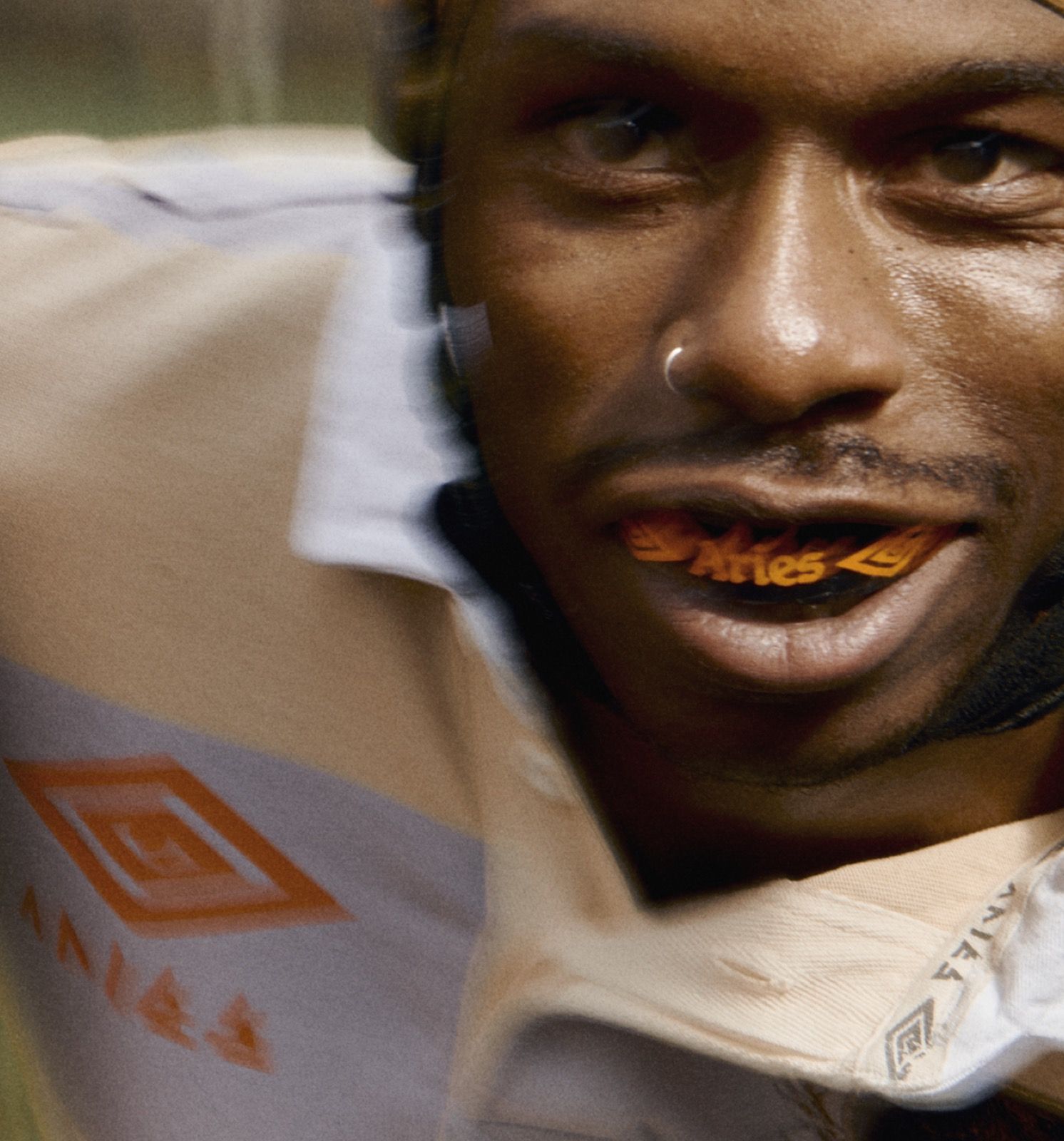 Aries collabora con Umbro per il secondo capitolo della loro collaborazione, e questa volta sceglie uno degli sport simbolo del Regno Unito, il rugby. Ispirata alla nostalgia della palla ovale e del campo macchiato di fango e sangue, le sfumature tradizionali del rugby sono presenti in tutta la campagna e la collezione, utilizzando le rinomate tecniche di tintura di Aries per unire i due marchi.