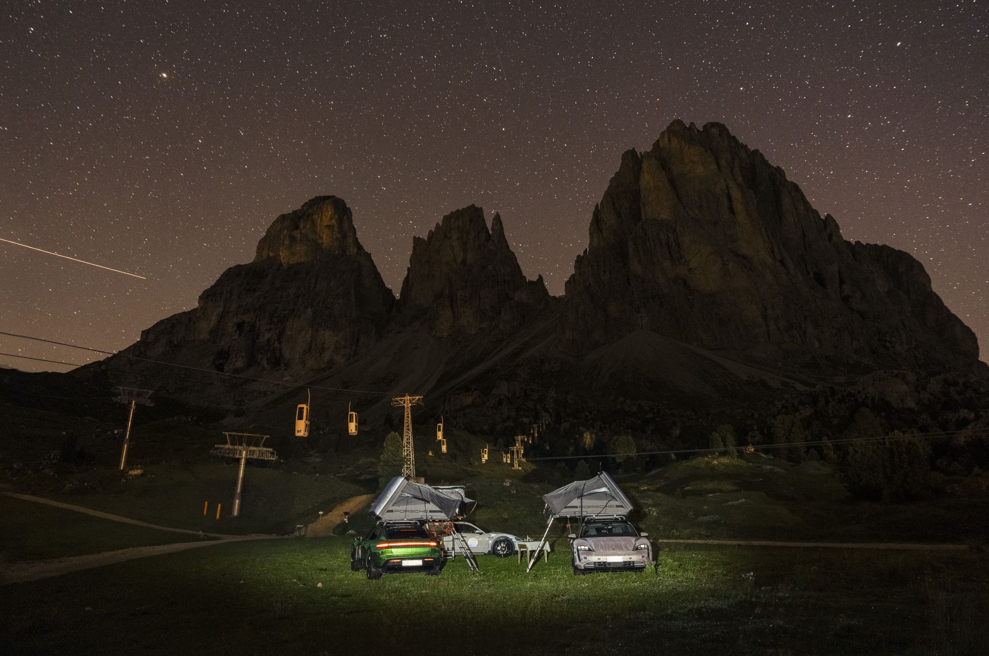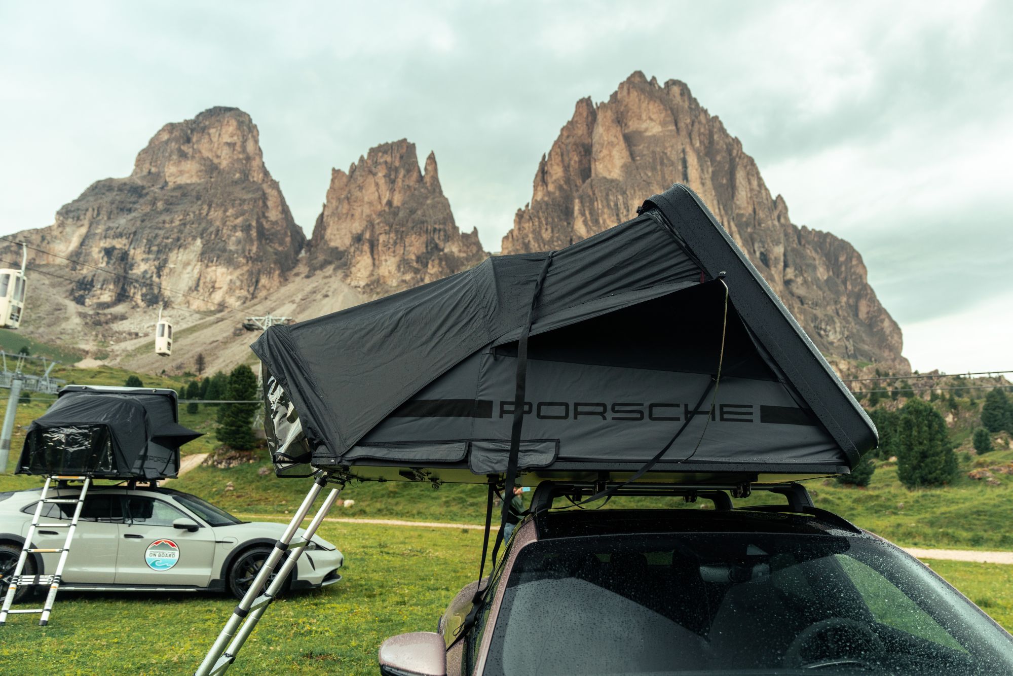 Dormire sopra una Porsche Taycan Cross Turismo Grazie a Porsche On Board, immersi tra le montagne mozzafiato delle Dolomiti