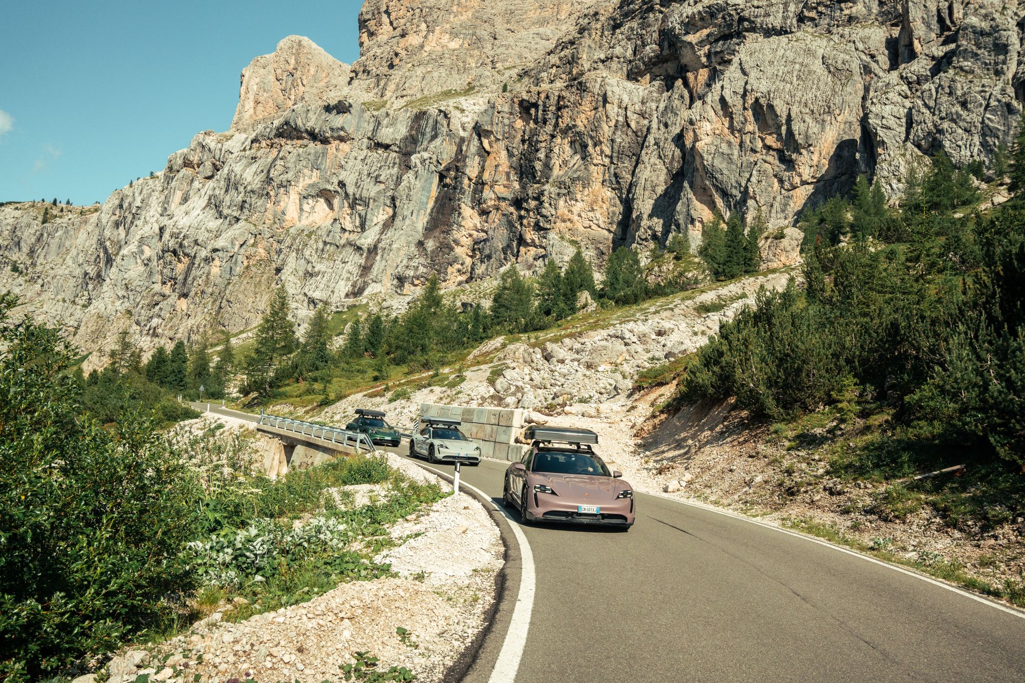Per fuggire dal caldo che in questo mese ha invaso tutta l'Italia e specialmente Milano abbiamo raggiunto Cortina, dove immersi tra montagne e paesaggi davvero unici abbiamo trovato una schiera di macchine ad aspettarci. Non macchine qualsiasi, sia chiaro, ma le Taycan Cross Turismo, un mix di velocità, innovazione e un forte legame con l'ambiente grazie alla sua natura elettrica. Partendo da una località esclusiva come Cortina, abbiamo percorso le strade che portano fino alla cima del Passo Sella con percorsi dinamici in grado di evidenziare le caratteristiche di punta del veicolo. Come primo Cross Utility Vehicle (CUV) dell'azienda, Taycan Cross Turismo combina la classica dinamica di guida Porsche a zero emissioni con un telaio high-tech adatto ai fuoristrada. L'aspetto più sorprendente è sicuramente infatti quella di aver trovato una compagna versatile e utilizzabile per la vita di tutti i giorni, lunghi viaggi e avventure fuori strada per rendere le vostre vacanze speciali.