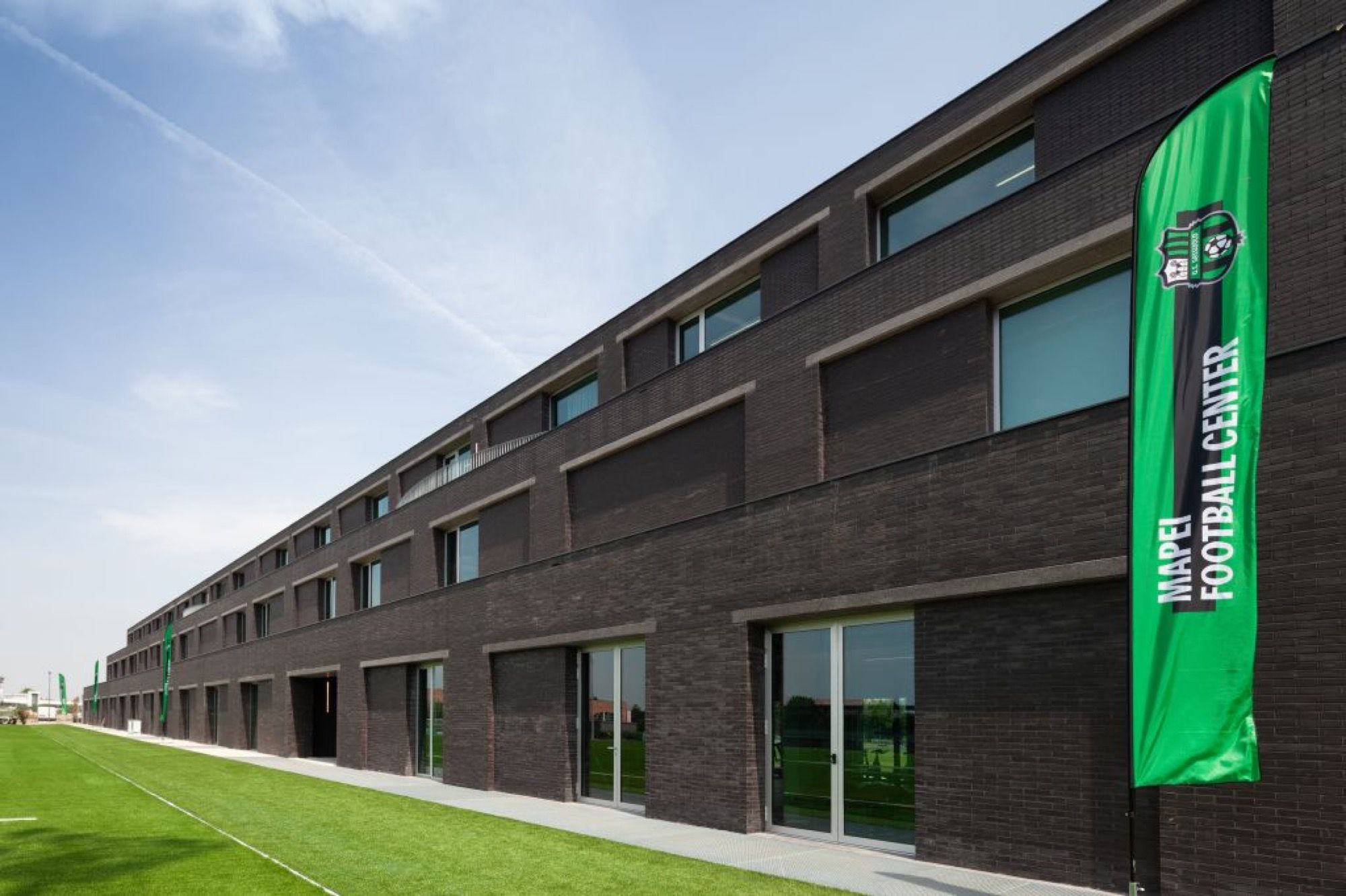 Il Mapei Football Center, chiaramente di proprietà della società, è unico nel suo genere, soprattutto se consideriamo la tipologia di edificio che lo contraddistingue. Innanzitutto è frapposto perfettamente tra due dei quattro campi da gioco regolamentari, una caratteristica che dà al centro una simmetria a dir poco unica. I 1.582 metri quadri della superficie dell'edificio è distribuita su quattro livelli: a quello interrato si trovano spogliatoi, locali tecnici e magazzini; al piano 0 sono presenti spogliatoi, palestra, uffici e sala massaggi dedicati alla prima squadra; al primo spogliatoi e palestra per il settore giovanile; infine il secondo è interamente dedicato a uffici e sale riunioni della direzione.