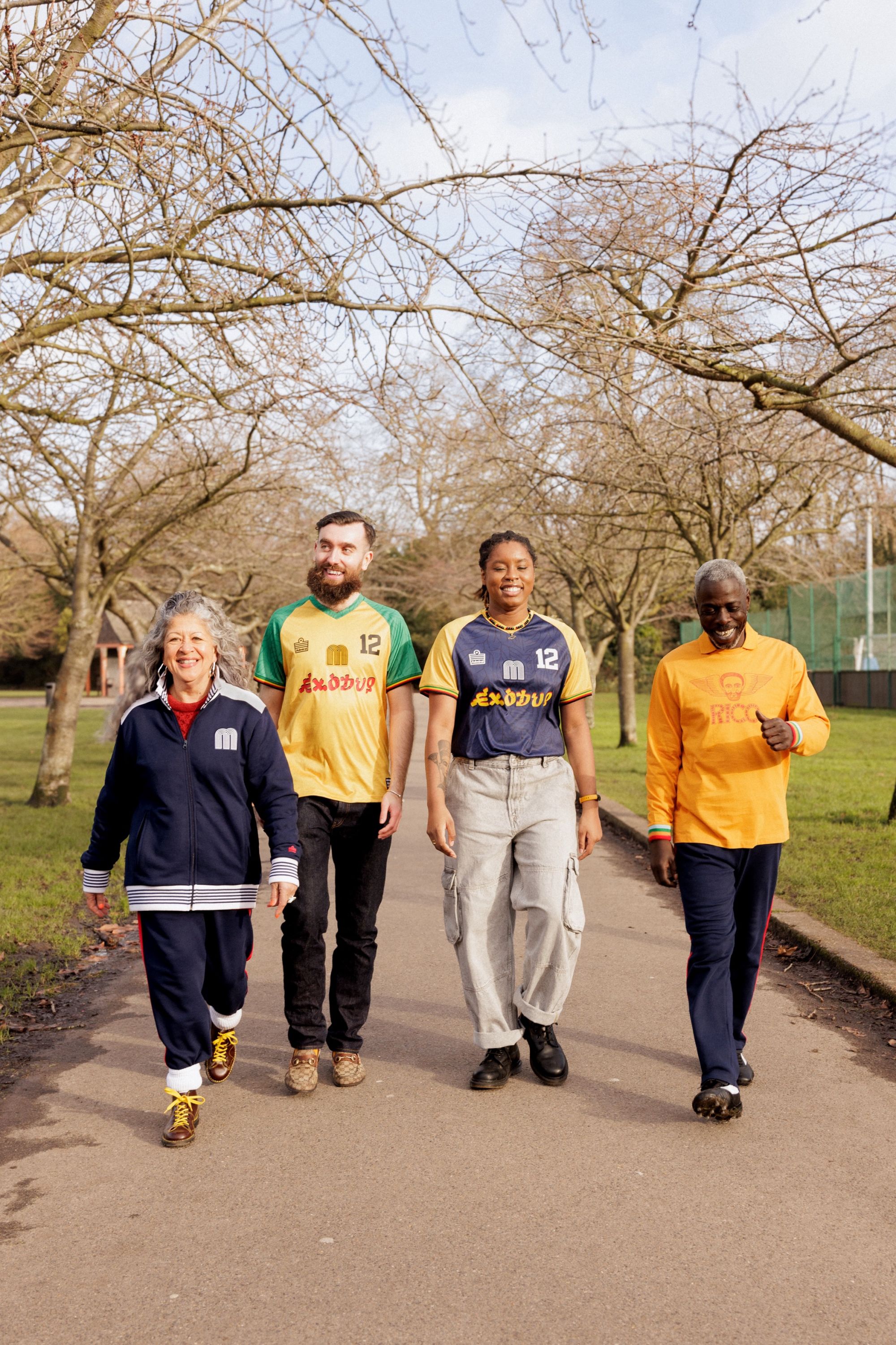 E la collezione realizzata insieme al magazine Mundial è ispirata ad un avvenimento accaduto nel 1977, quando il cantante insieme alla sua band The Wailers si recava al Battersea Park per giocare a calcio, spesso invitando la comunità locale a partecipare. Bob Marley si trovava a Londra per registrare l'LP Exodus e le foto di questi incontri e della sua iconica tuta da ginnastica, di colore blu, sono diventate parte dello stile londinese e della tradizione musicale. La collezione presenta una riedizione della tuta da ginnastica completa insieme alla t-shirt gialla "Rico", Rico Rodriguez MBE, leggendario trombettista reggae, indossata dai membri della band durante le partite, oltre a due magliette da calcio ispirate a Bob Marley.In occasione del lancio, Admiral ha realizzato un cortometraggio che ripercorre il legame di Bob Marley con il calcio e la città che lui chiamava "la sua città". Dall'altra parte dello spettro è arrivata la capsule collection disegnata da Jerry Lorenzo e Fear of God, che ha applicato proprio una di queste celeberrime fotografie di Bob Marley con un pallone da calcio e una tracksuit adidas. Una collezione che è parte del merchandising del film Bob Marley: One Love e sarà disponibile da venerdì 16 Febbraio.