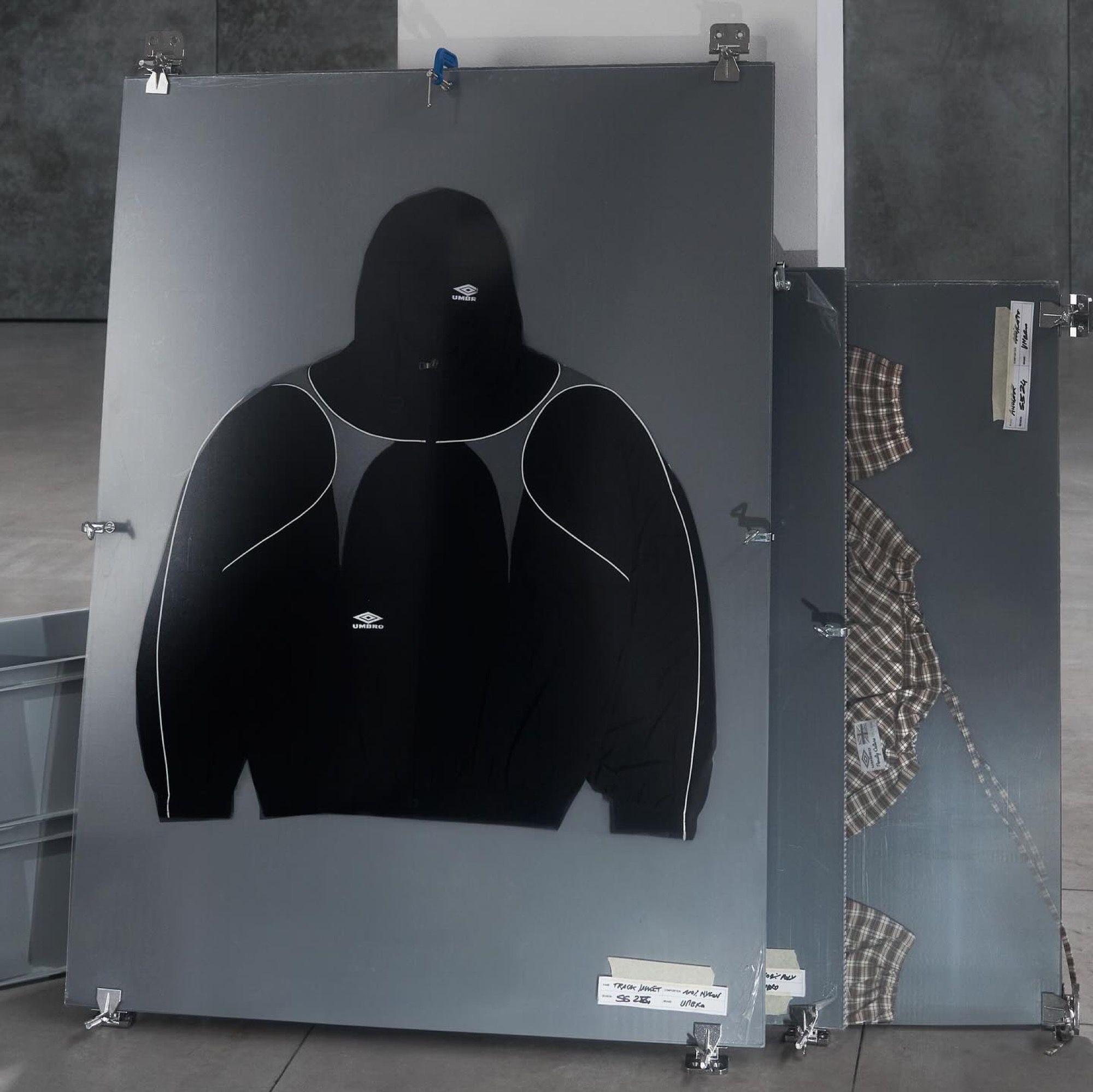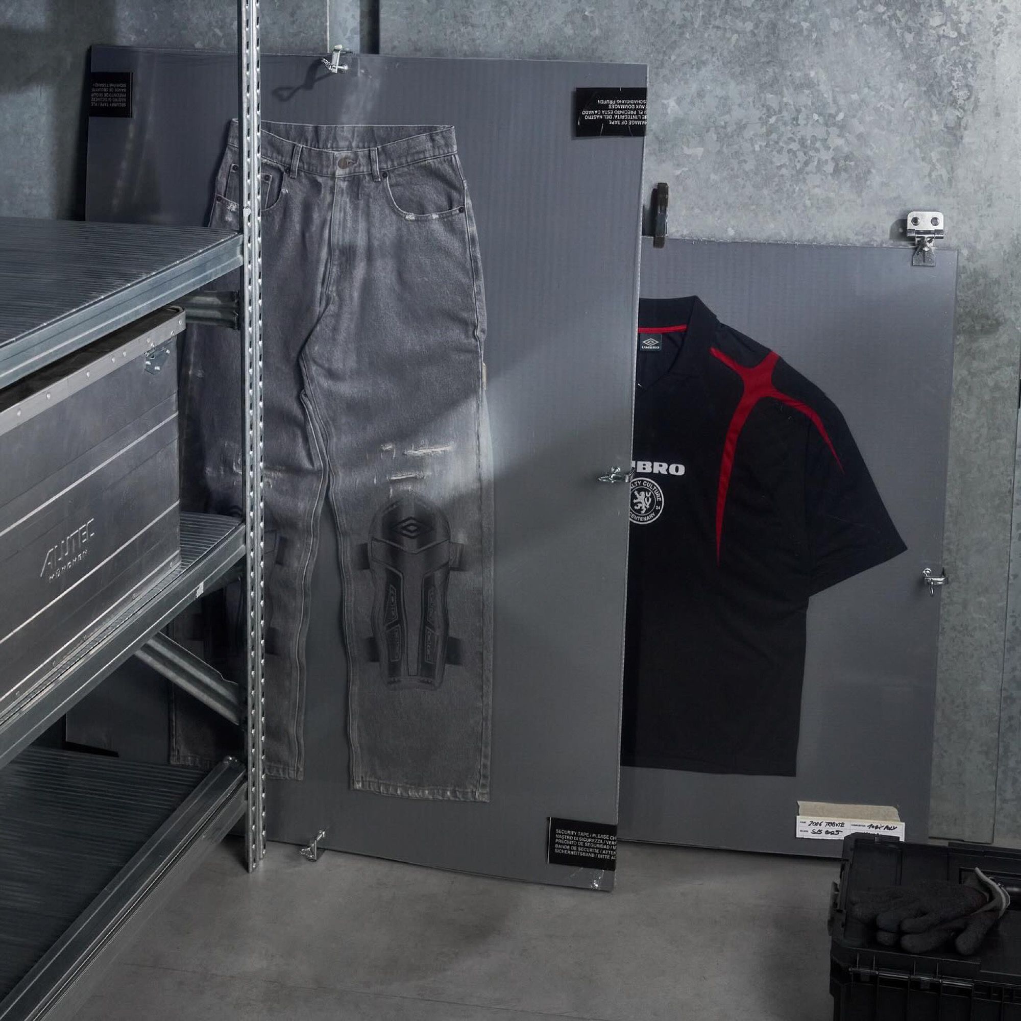 Il pezzo forte della collezione, in circolazione già da mesi sui social, è l'anorak a scacchi, ma anche la hoodie oversized che vede incorporata nel cappuccio una maschera che copre interamente il volto. Tra gli articoli della collezione, la felpa con cappuccio è uno dei più significativi in quanto richiama le abitudini dei cosiddetti Perry Boys, crew di tifosi britannici che utilizzavano indossare outfit da "bravi ragazzi" per mascherarsi e non dare all'occhio alle forze armate durante gli scontri fuori e dentro gli stadi. Oltre a due interpretazioni differenti di tracksuit, completa la collezione una sciarpa rossa e un denim grigio caratterizzato dalla stampa dei parastinchi su entrambe le gambe, un capo che non ci capita di vedere tutti i giorni, che dimostra come blokecore e l'abbigliamento lifestyle di ispirazione calcistica abbiano ancora tanto da dire, specialmente dal punto di vista estetico e d'innovazione.