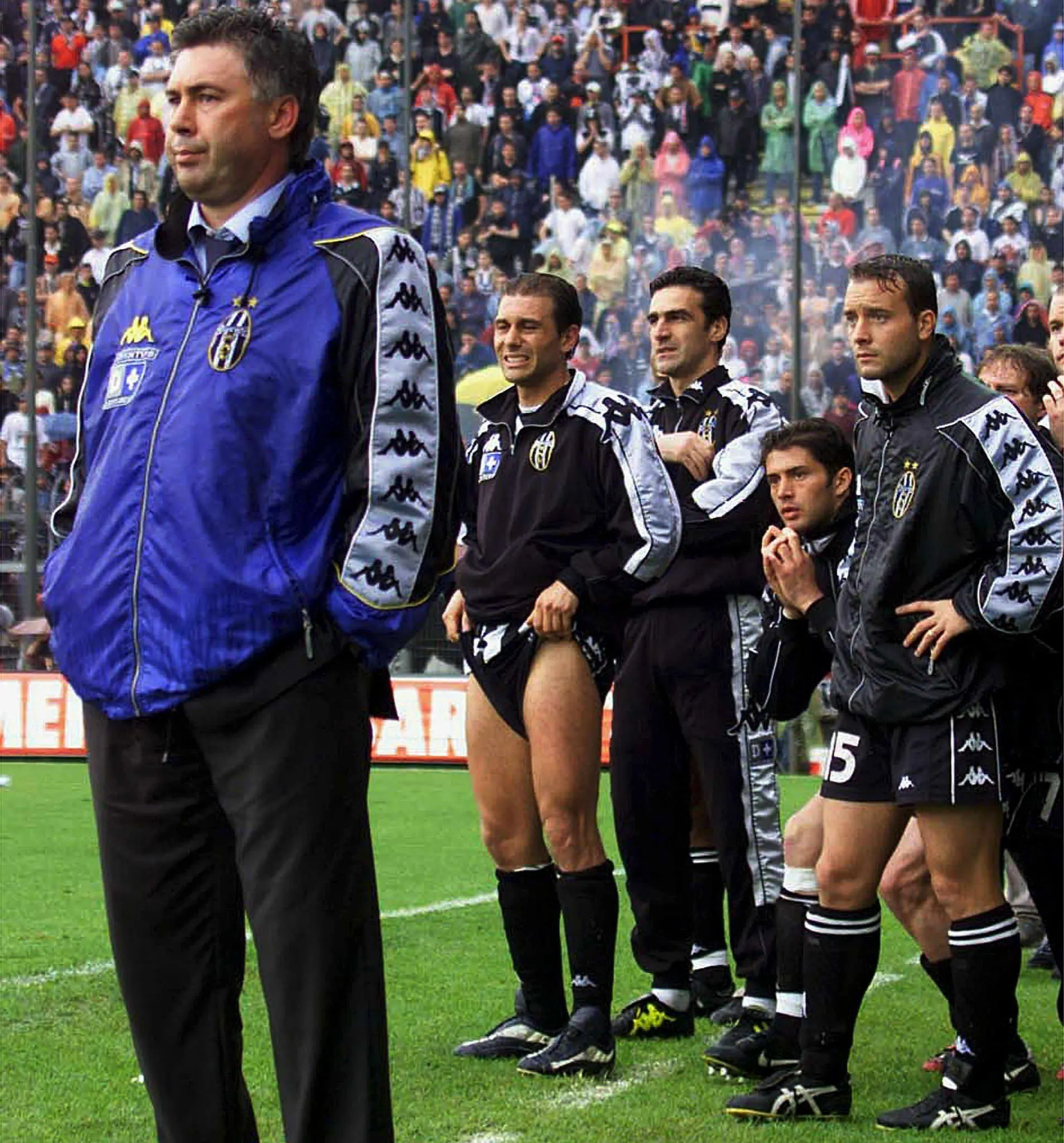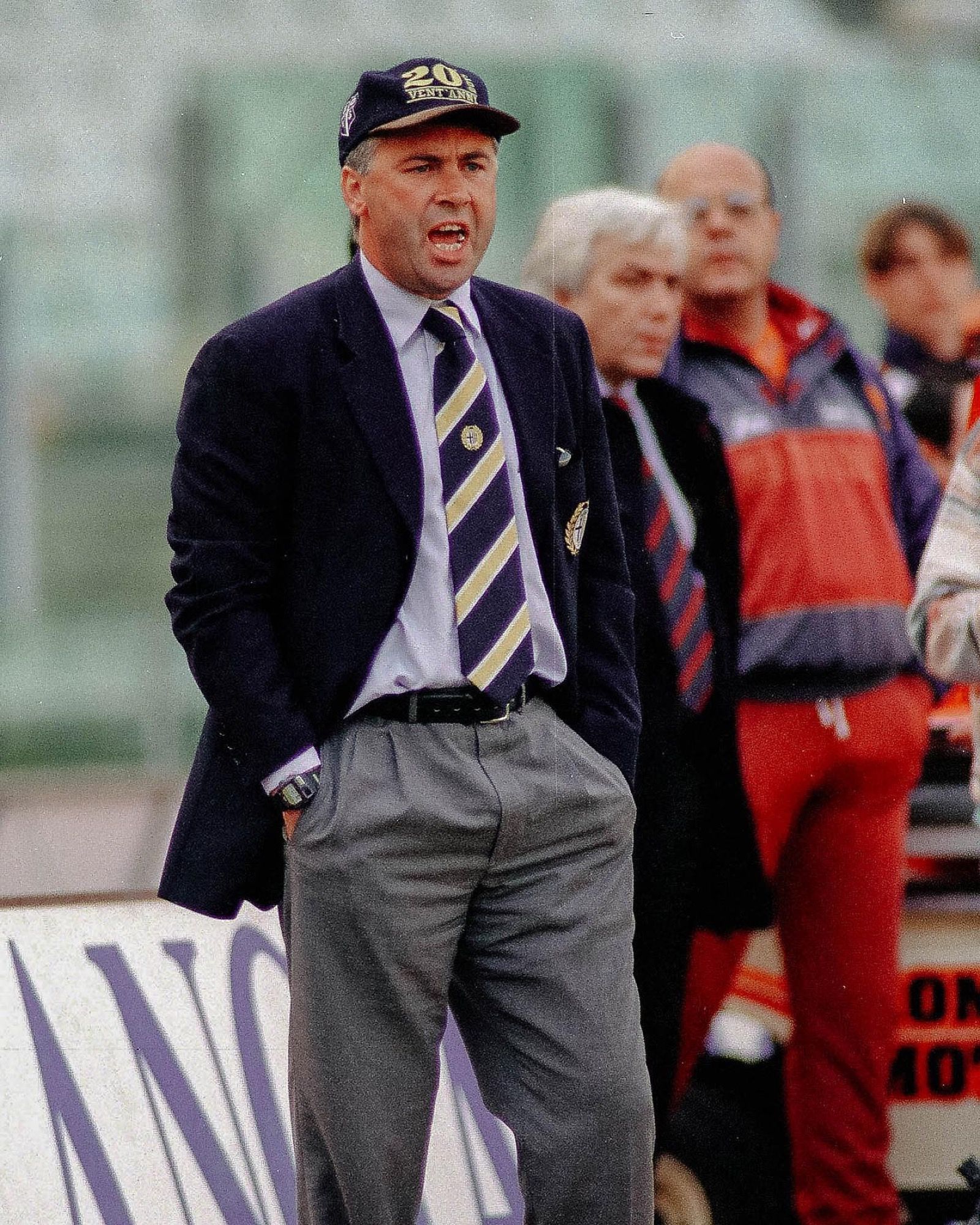 Ancelotti dimostrò di saper calarsi estremamente bene nella parte, sfoggiando il suo primo vero look degno di nota, optando per uno stile da matricola al primo giorno di università della Ivy League: snapback, spezzato e cravatta a strisce regimental, abbinata magistralmente ai colori del cappellino - erano ovviamente i colori sociali del Parma. Si tratta di un outfit tanto semplice quanto d'effetto, che potrebbe aver fornito l'ispirazone a molti allenatori che hanno fatto del cappello un accessorio immancabile nei loro outfit: Jürgen Klopp, Aliou Cissé e l'ultimo della lista, Thiago Motta. Nonostante durante la successiva esperienza sulla panchina della Juventus adotterà spesso un look informale indossando una tracksuit blu contraddistinta dall'iconica banda di Kappa, i look più formali inizieranno a dirci di più sul tipo di persona è Carlo Ancelotti: seriosa, austera e di poche parole. Lo spezzato indossato ai tempi del Parma è ora ben riposto nel guardaroba, a favore di completi monocromatici abbinati a scarpe marroni. Lo stile versatile dell'allenatore di Reggiolo è quasi metaforico della varietà della rosa Bianconeri, che univa l'eleganza e la spregiudicatezza di Zinedine Zidane e Del Piero all'efficacia del Pitbull, Edgar Davids.