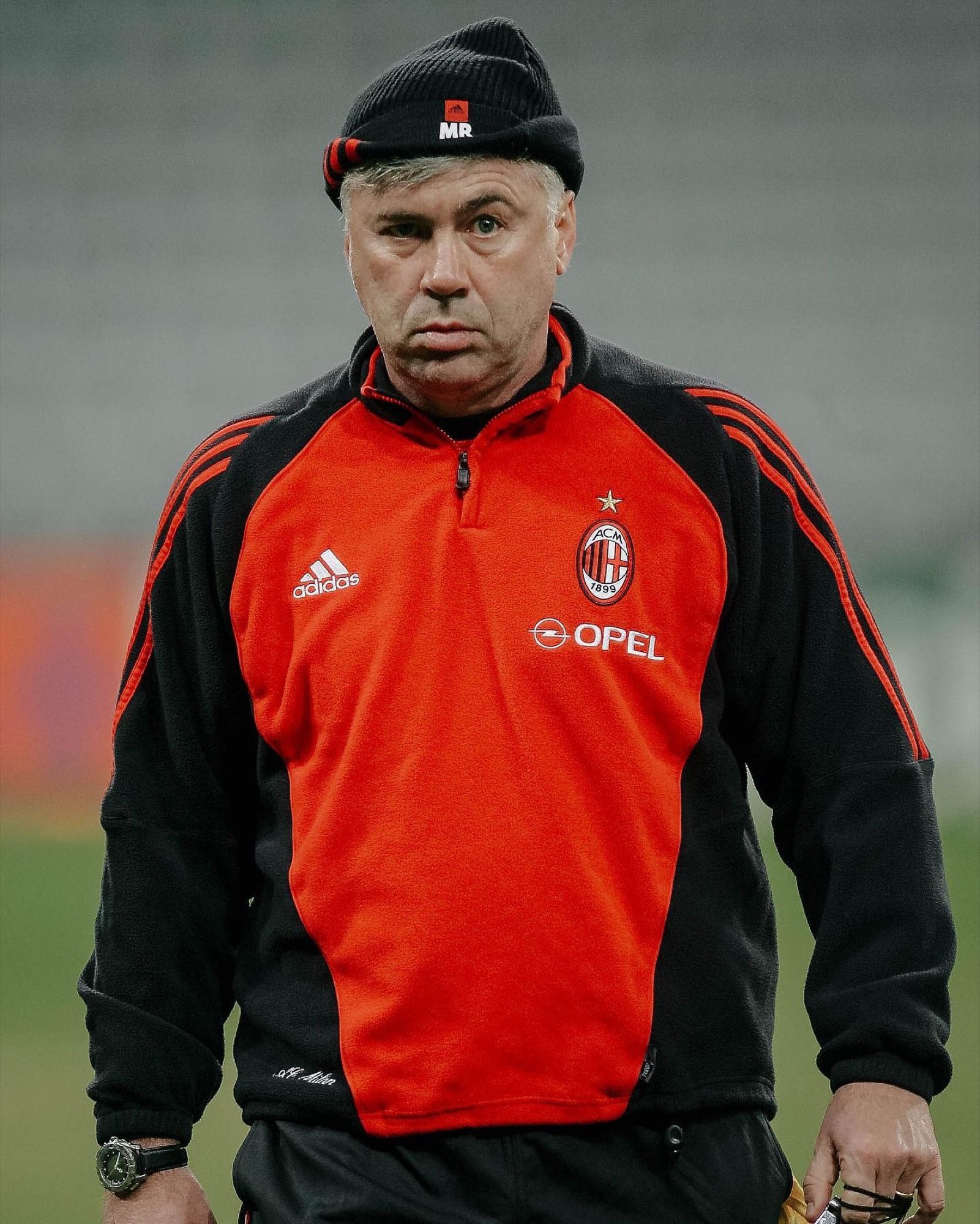 L'età di Carlo avanza: ha più di 40 anni quando le porte di Milanello lo accolgono; il calcio entra nel pieno degli anni Duemila. Inizia una nuova era calcistica e i club di lì a poco firmeranno i primi contratti di partnership sul formal-wear. Di conseguenza, la libertà con cui gli allenatori si possono sbizzarrire si riduce anno dopo anno e gli outfit diventano sempre più formali e omologati. Saranno ben pochi gli sprazzi di Carlo Ancelotti in versione cozywear. Da quando arriva al Milan - per poi abbandonarsi al fascino dei top club europei - il suo stile cambia definitivamente, optando per uniformi più comode unicamente durante le sessioni d'allenamento settimanali con la squadra. Ma d'altronde, serve un completo elegante per affrontare le magiche serate di Champions League, a cui si affezionerà talmente tanto da aggiungere un layer che diventerà presto un capo simbolo di Carlo Ancelotti: il cardigan blu. «Se pensi a Vito Corleone ne Il Padrino, pensi a un uomo debole e tranquillo o pensi a un uomo calmo e potente al comando della sua situazione?» si legge su The Beautiful Game of an Ordinary Genius, la autobiografia di Carlo Ancelotti. Tralasciando che la fascinazione di Carlo Ancelotti per Il Padrino possa essere estremamente fondata - basti pensare al family business con suo figlio Davide - da queste parole si intende come Ancelotti abbia sempre avuto la massima accortezza nel veicolare la propria immagine.