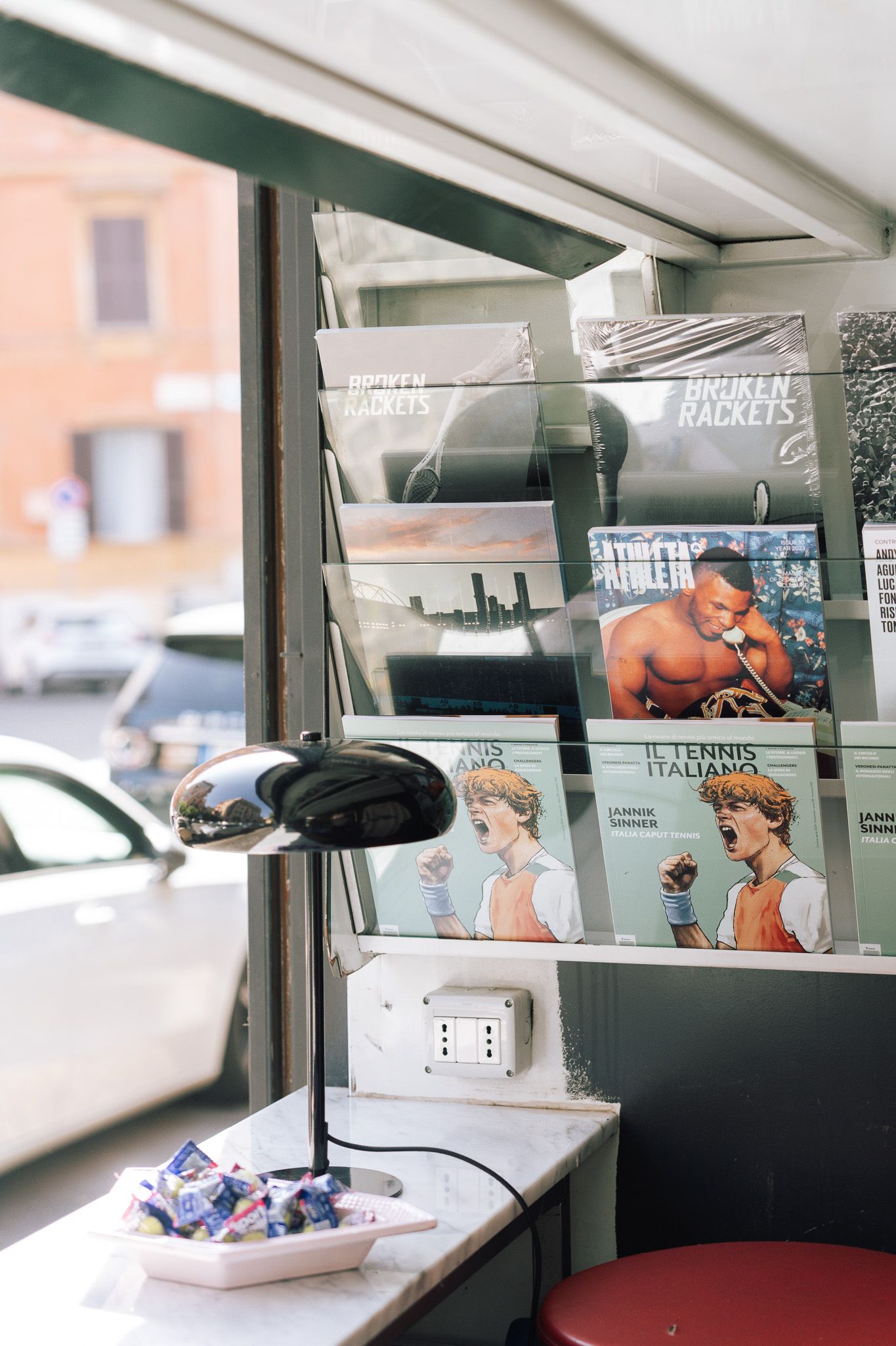 Inoltre, dal 16 al 19 maggio, EA7 Emporio Armani ha collaborato con Edicola Erno (Edicola Romana Non Ordinaria) che, in occasione delle fasi finali del torneo, è diventata un punto di riferimento e ritrovo, al di fuori del Foro, per gli appassionati di tennis. L’iconica edicola, in piazza Ludovico Capponi, a due passi da San Pietro, è stata totalmente brandizzata EA7 e proporrà una selezione esclusiva di libri d’epoca, testate attuali e vintage, tutte dedicate al mondo dello sport e del tennis. Ad accoglierci all'edicola Francesca Schiavone, indimenticata campionessa sulla terra rossa e brand ambassador di EA7: "È iniziata per amicizia e stima"- ci racconta - "Poi essere vestiti da un brand che è il simbolo della moda e dell'eleganza in Italia è un sogno". La tennista che è riuscita nell'impresa di conquistare il Roland Garros nel 2010, il massimo torneo di terra battuta del circuito, spiega le emozioni di scendere in campo al Foro Italico, dove il tifo incessante sostiene i nostri tennisti e sceglie i suoi beniamini con grande precisione.